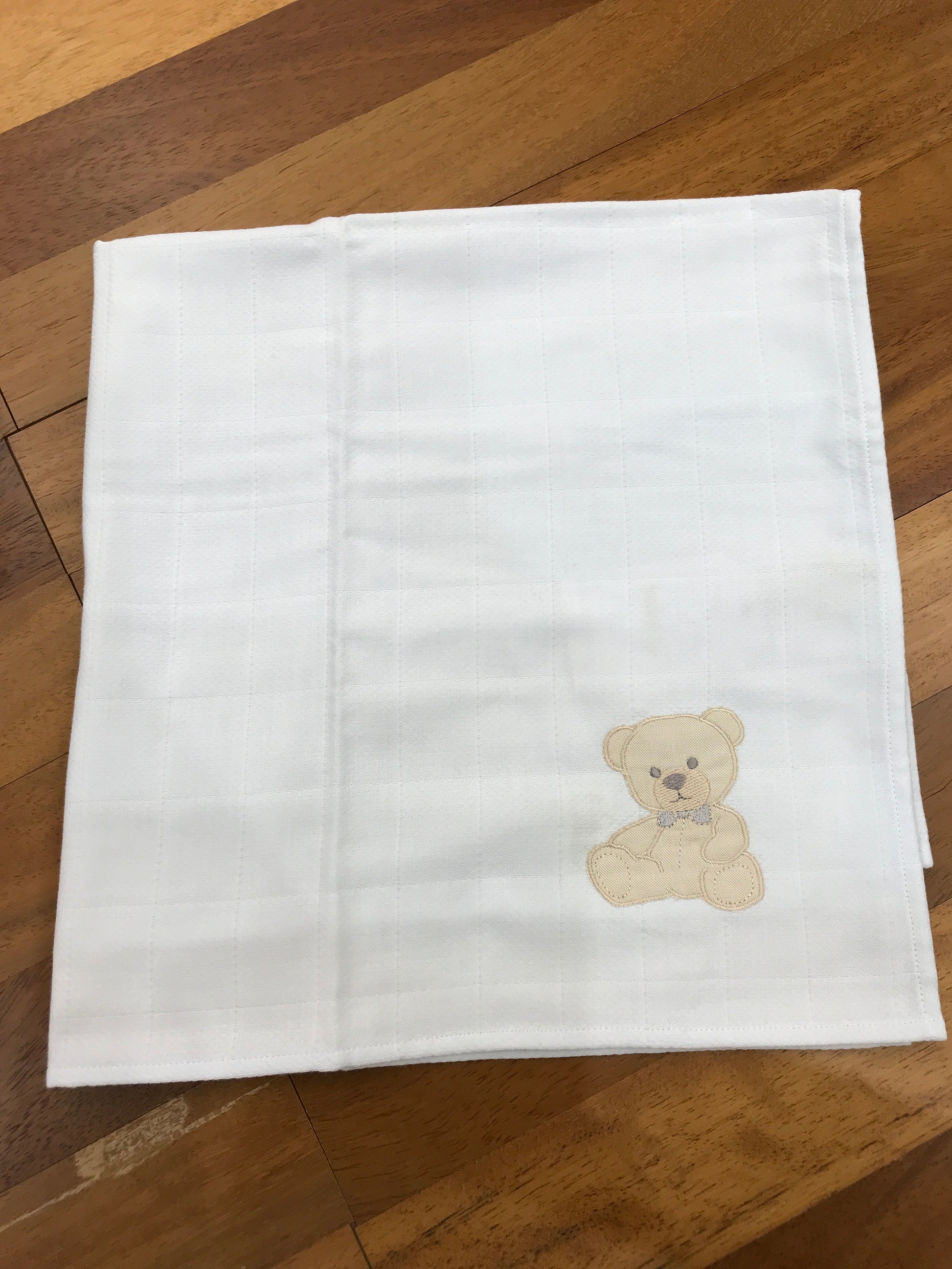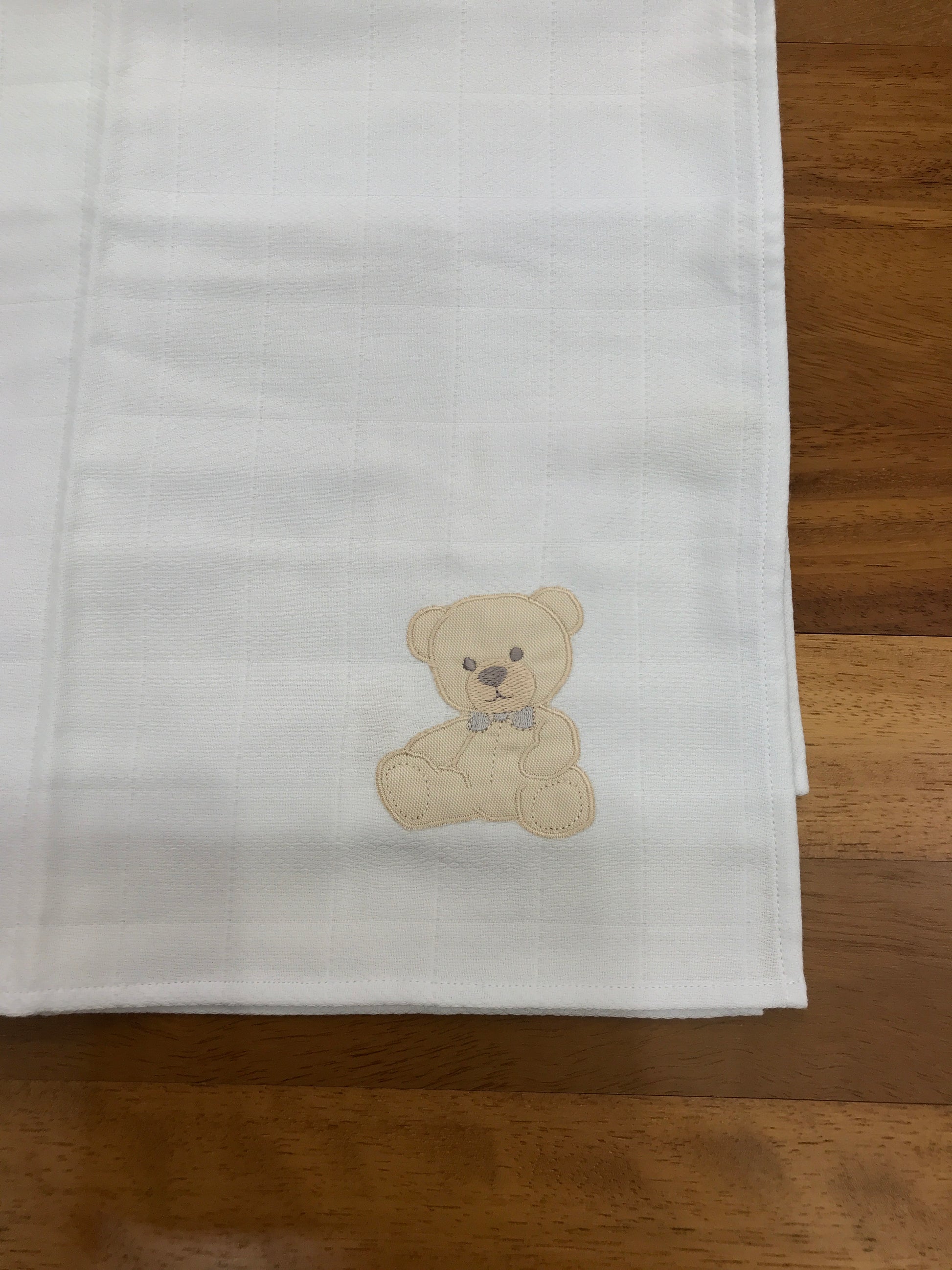 Mussola in garza arricchita da un delicato orsetto decorativo.