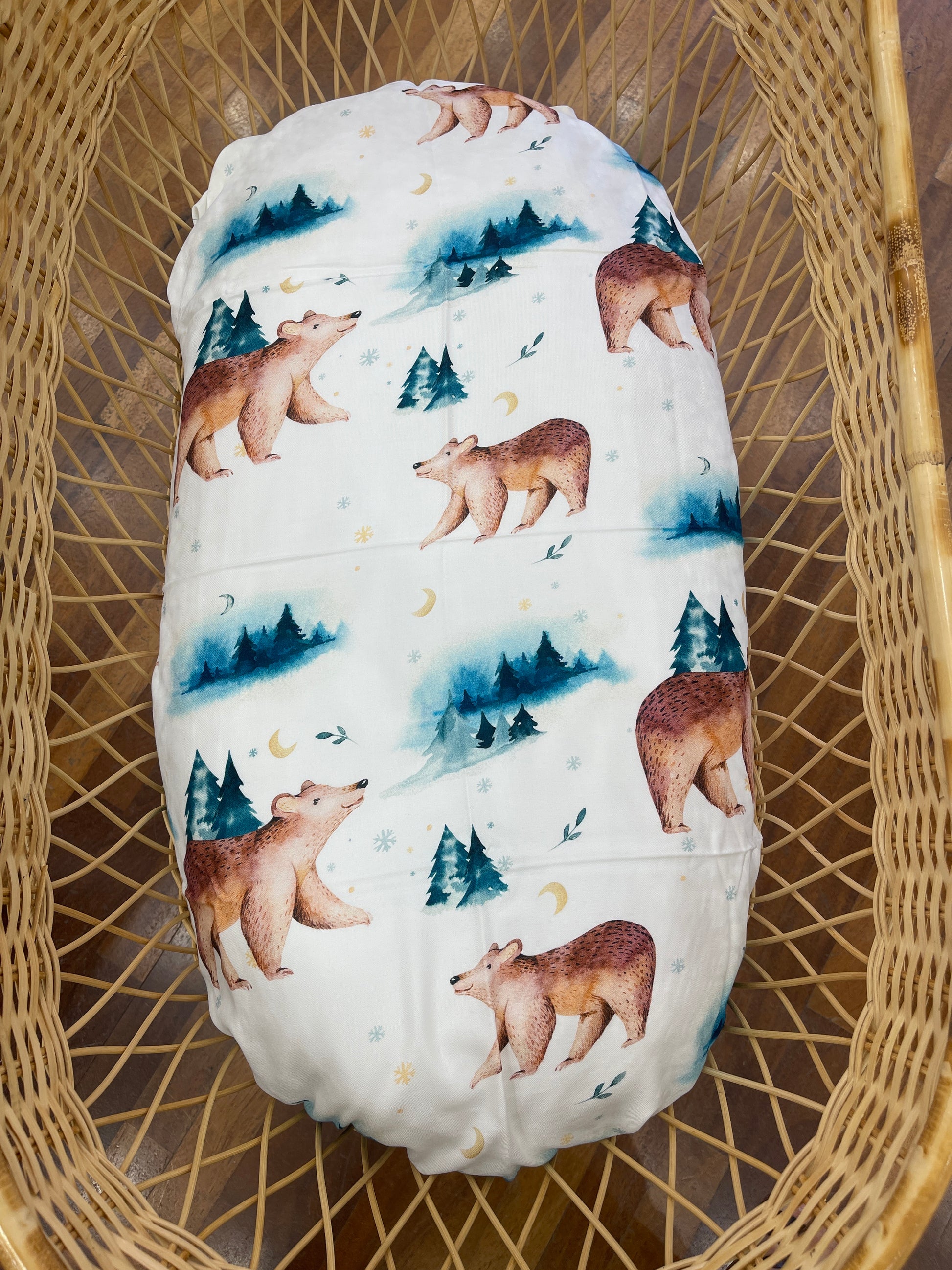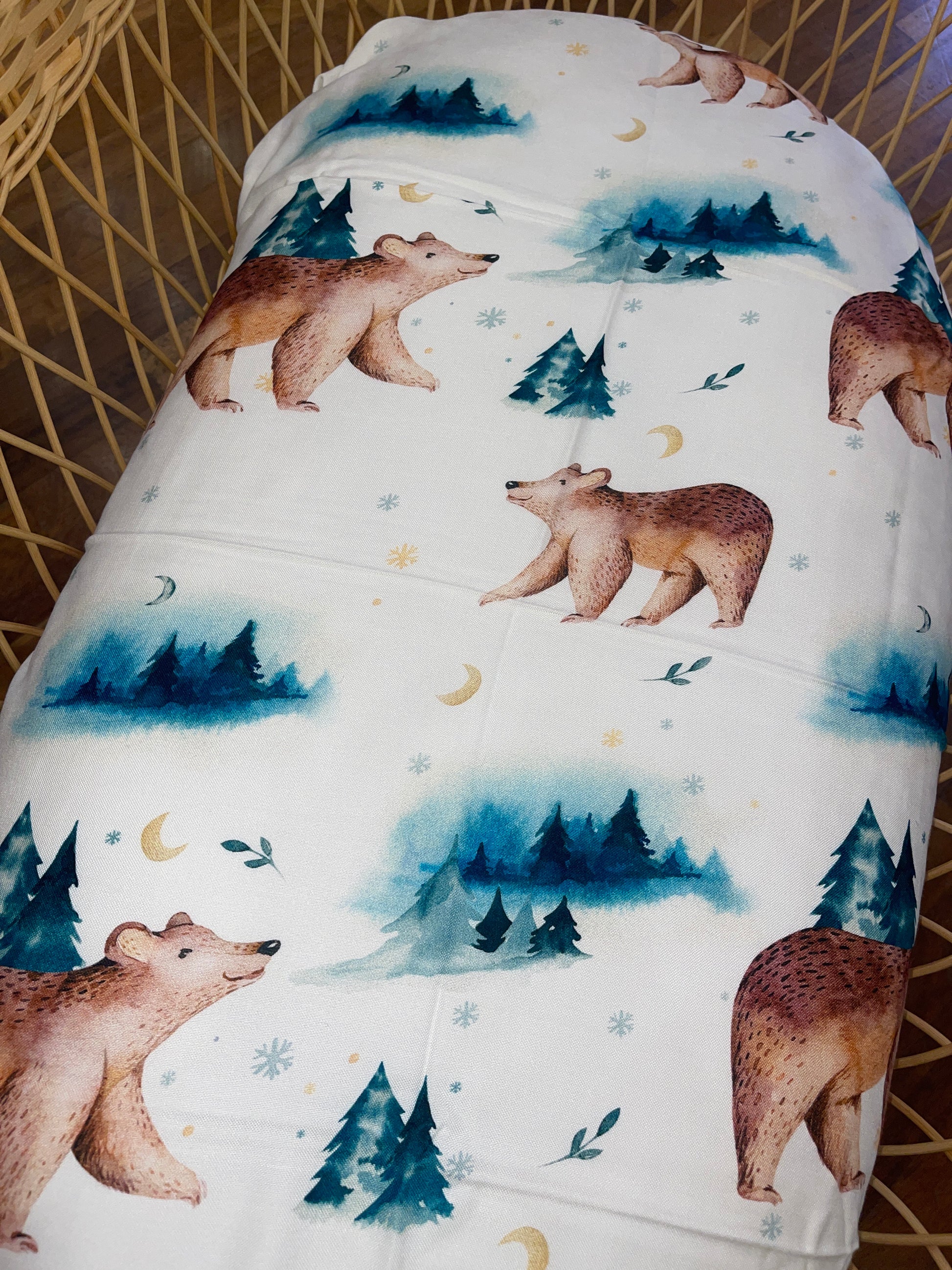 Mussola realizzata in cotone di bamboo, decorata con orsi polari e un suggestivo paesaggio invernale.