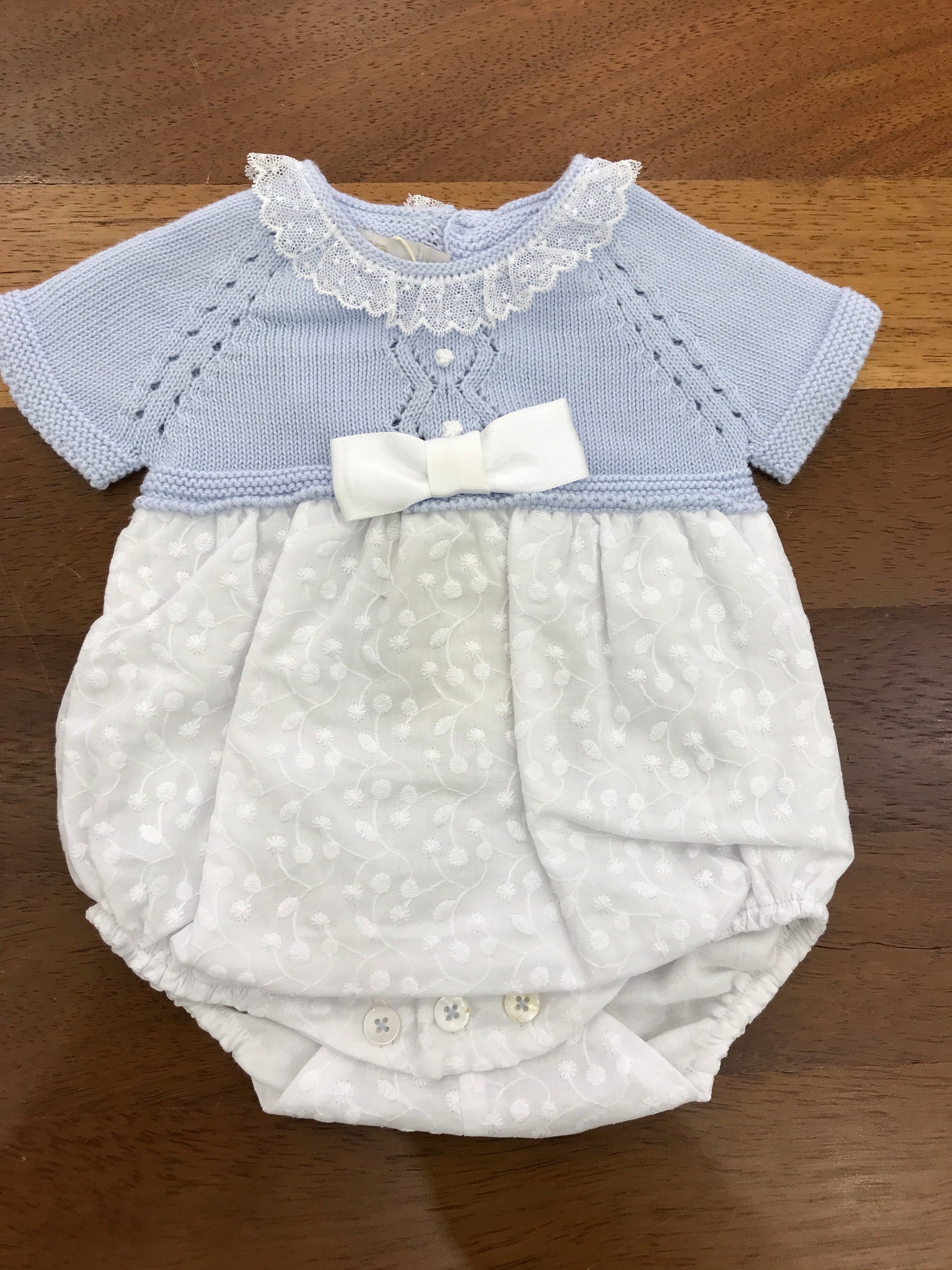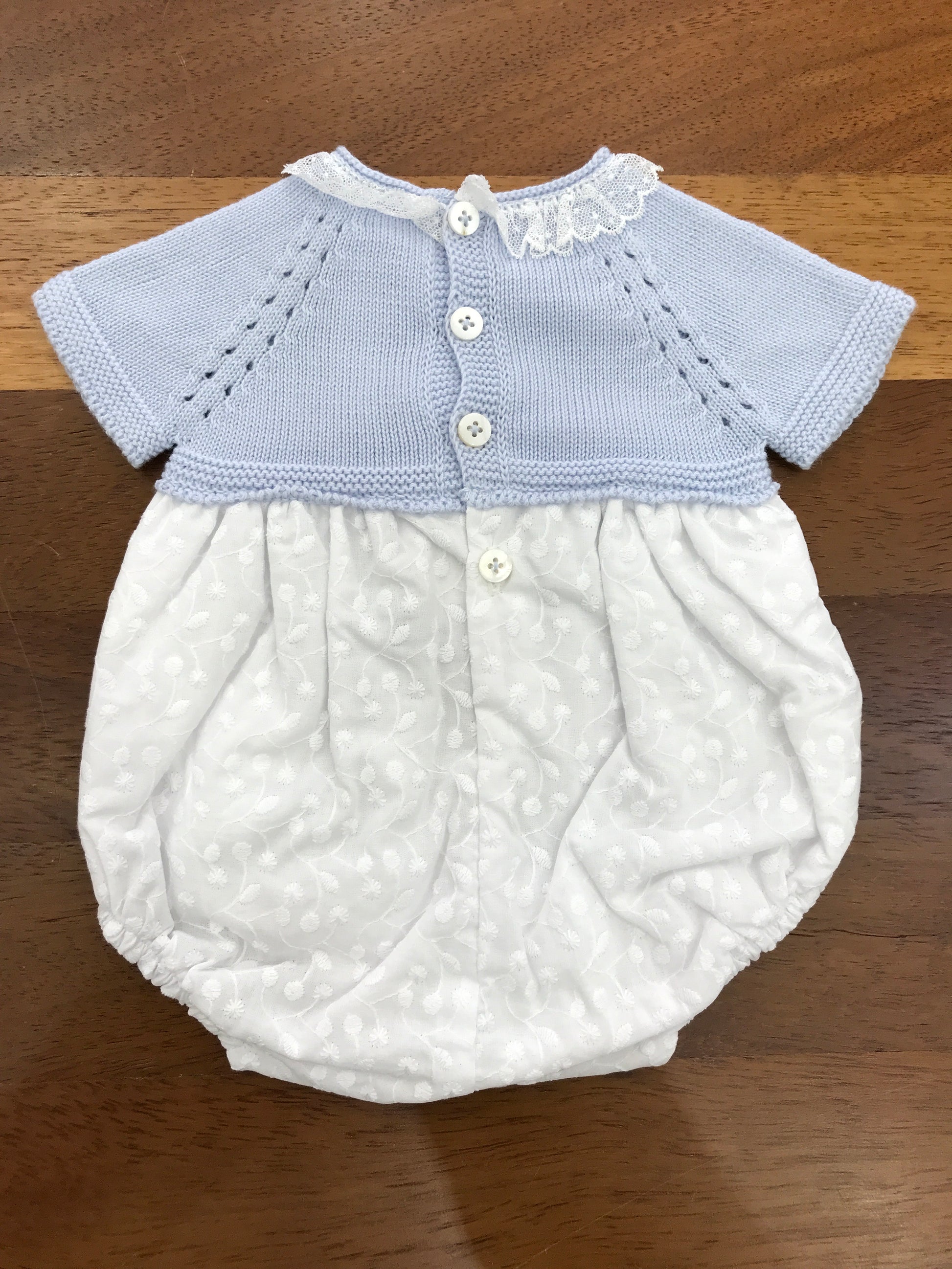 Pagliaccetto PCS in cotone bianco lavorato con corpetto in filo celeste lavorato con collo con valancienne al collo