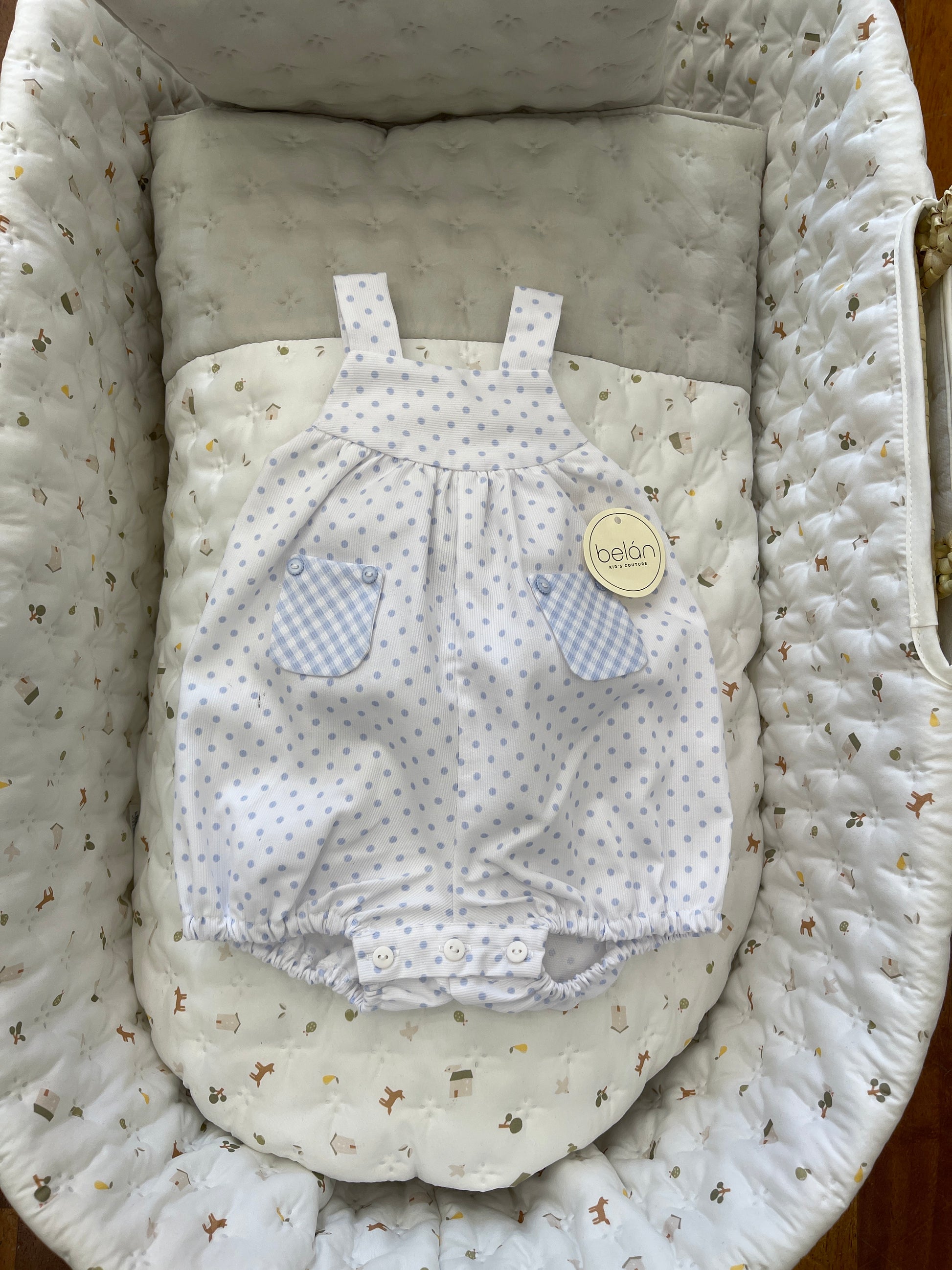 "Arricchisci l'outfit della tua piccola con il delizioso pagliaccetto Belan! Realizzato in morbido cotone rosa a pois, offre comfort e stile grazie alle taschine sul davanti. Ideale per ogni occasione, per far sentire la tua bimba a suo agio."