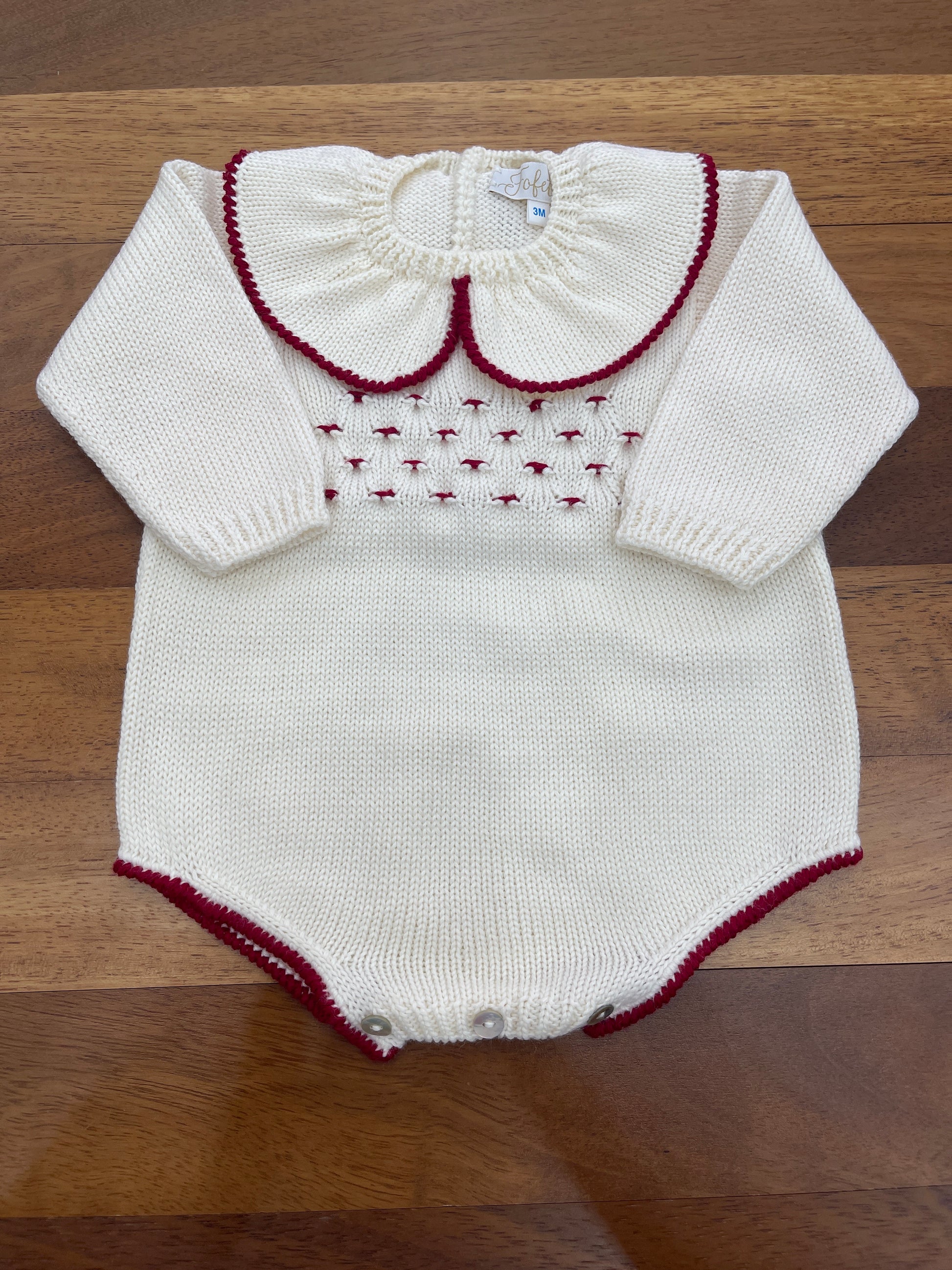 Il Pagliaccetto Fofettes unisce morbidezza e dettagli artigianali, realizzato interamente in maglia per garantire comfort e traspirabilità. Il collo ampio in maglia offre una vestibilità elegante, mentre il delicato punto smock a contrasto sul centro superiore aggiunge un tocco raffinato e distintivo, ideale per vestire con stile e attenzione alla qualità. Perfetto per momenti speciali o per ogni giorno.