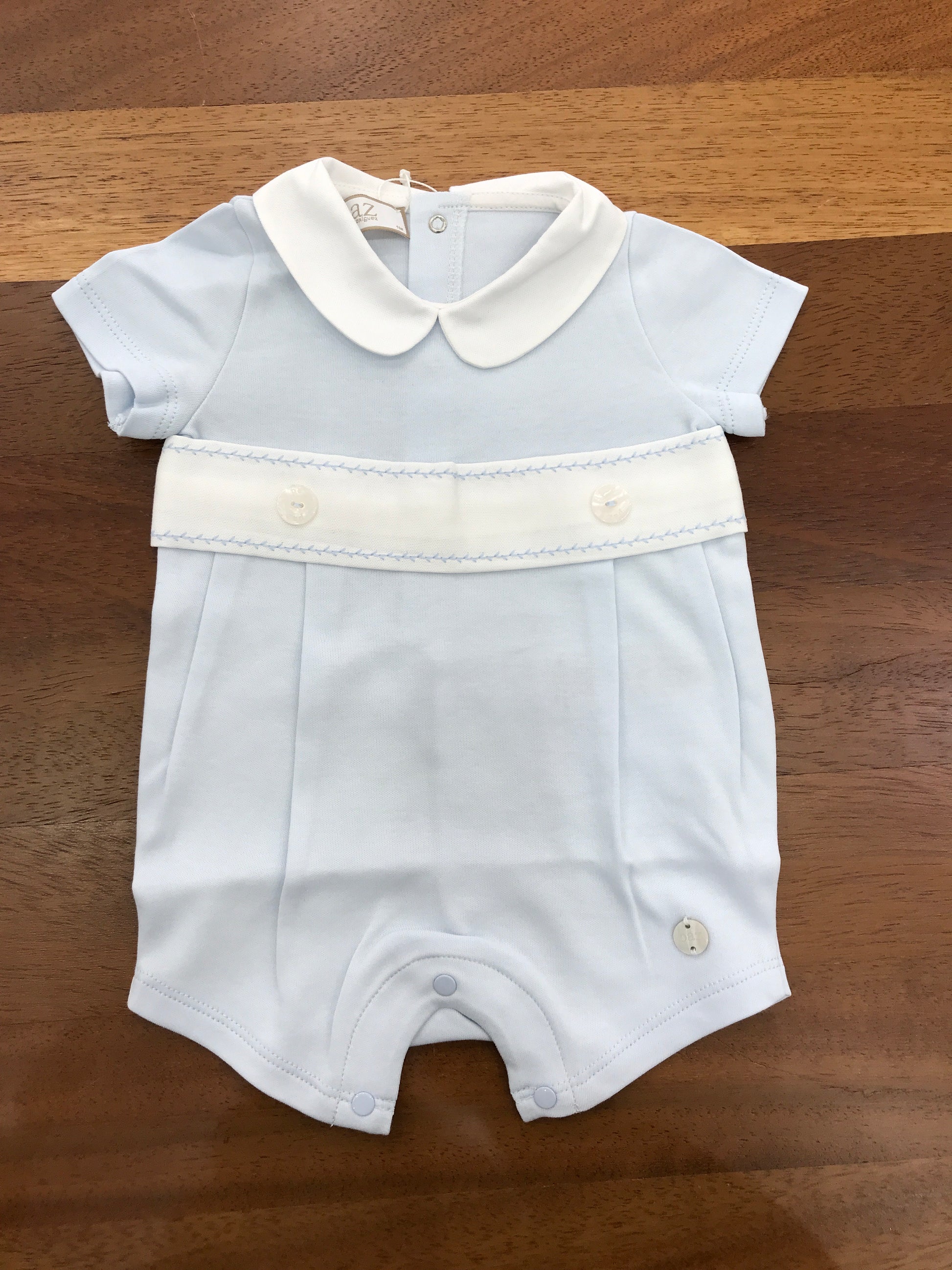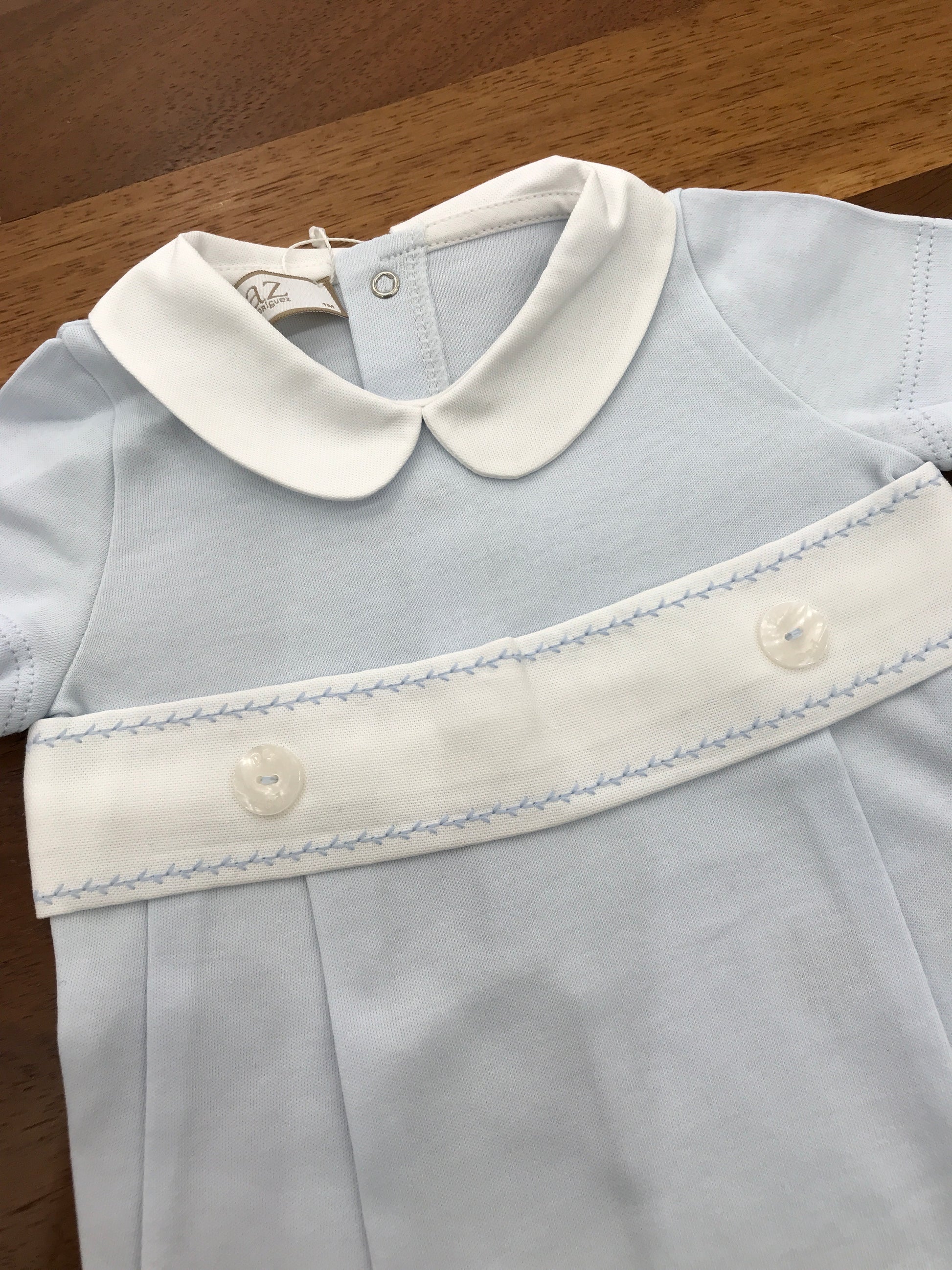Pagliaccetto Paz Rodriguez in cotone celeste mezza manica collo tondo bianco fascia in vita bianca