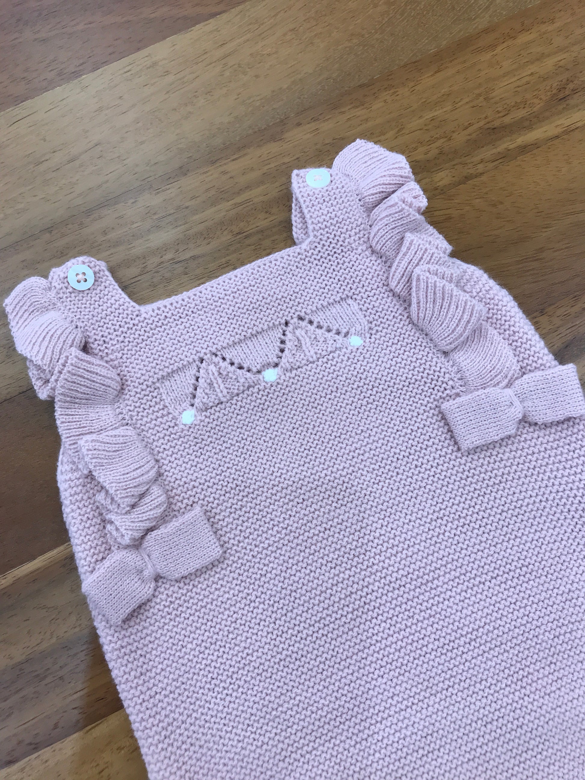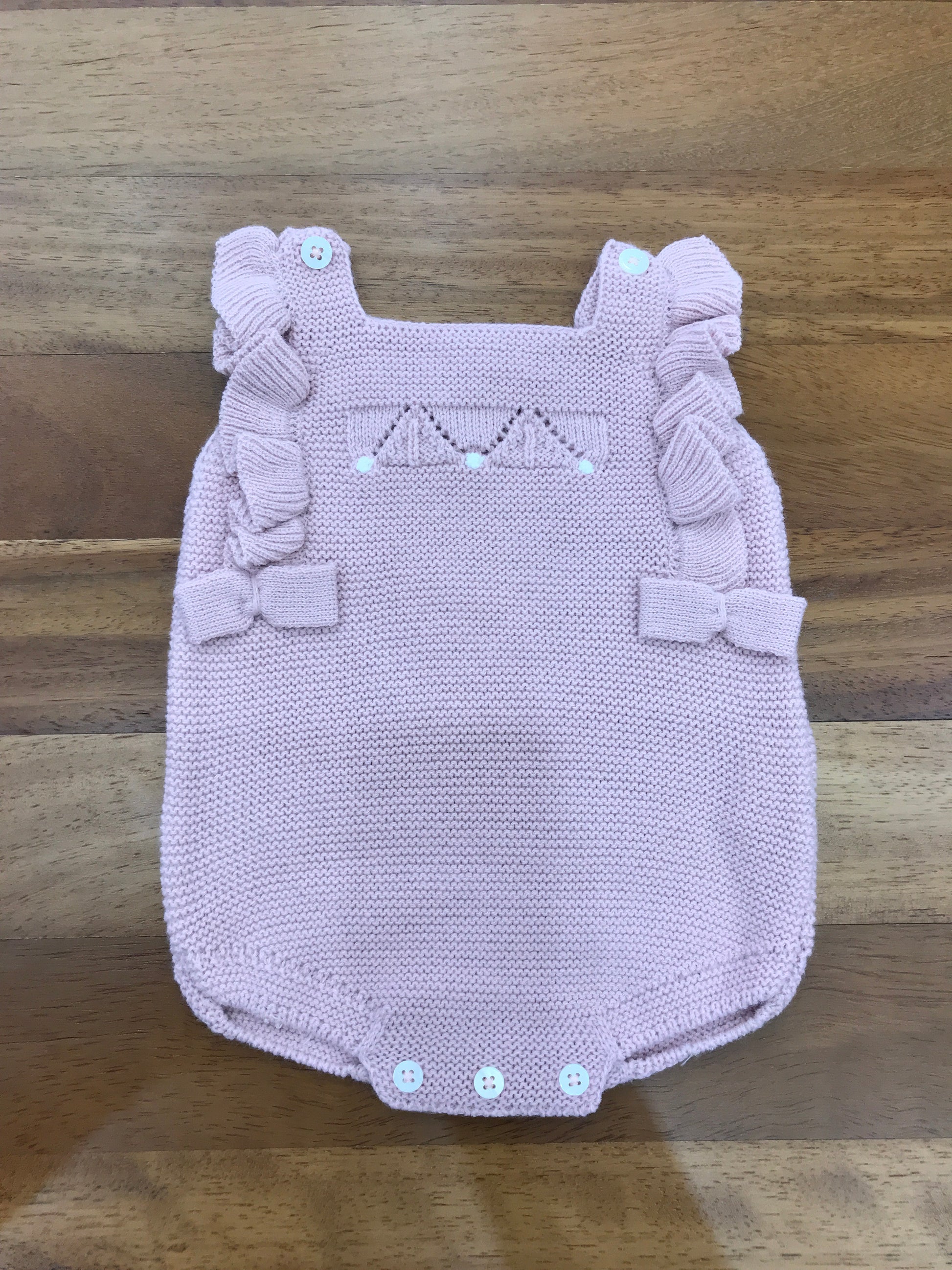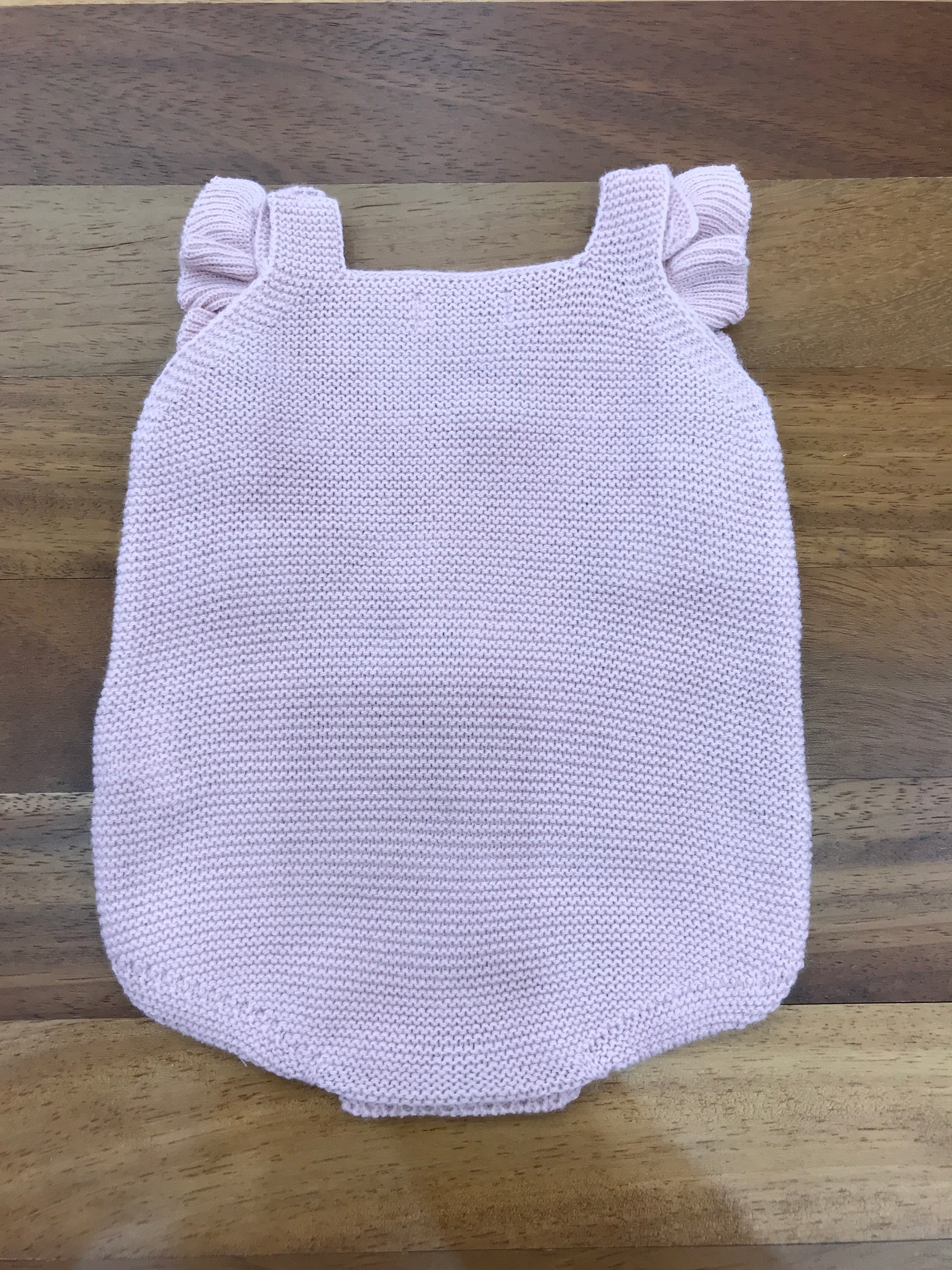 Il pagliaccetto senza gambe è dotato di una chiusura pratica con tre bottoni posizionati nella parte inferiore, che facilita il cambio del bambino. Presenta delicate ruches sulle spalle che aggiungono un tocco di eleganza, accompagnate da due piccoli fiocchetti decorativi. Il capo è impreziosito da un ricamo tono su tono, che conferisce raffinatezza senza appesantire il design, rendendolo ideale per un look sofisticato e confortevole.