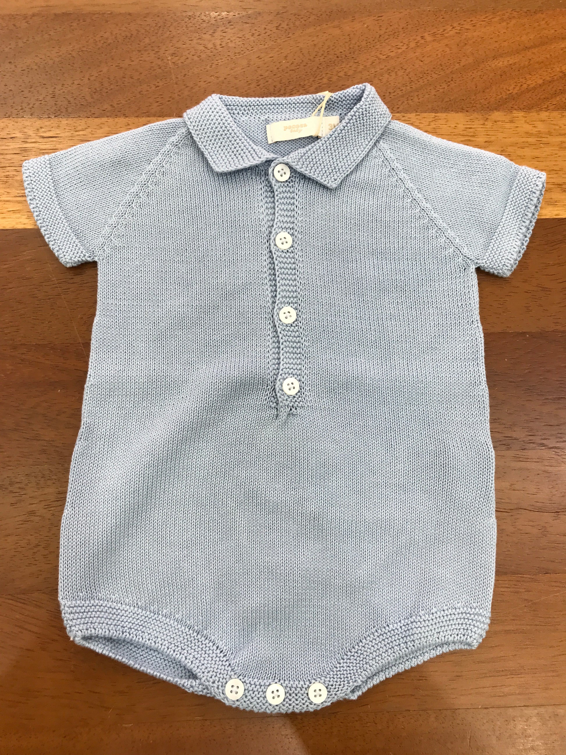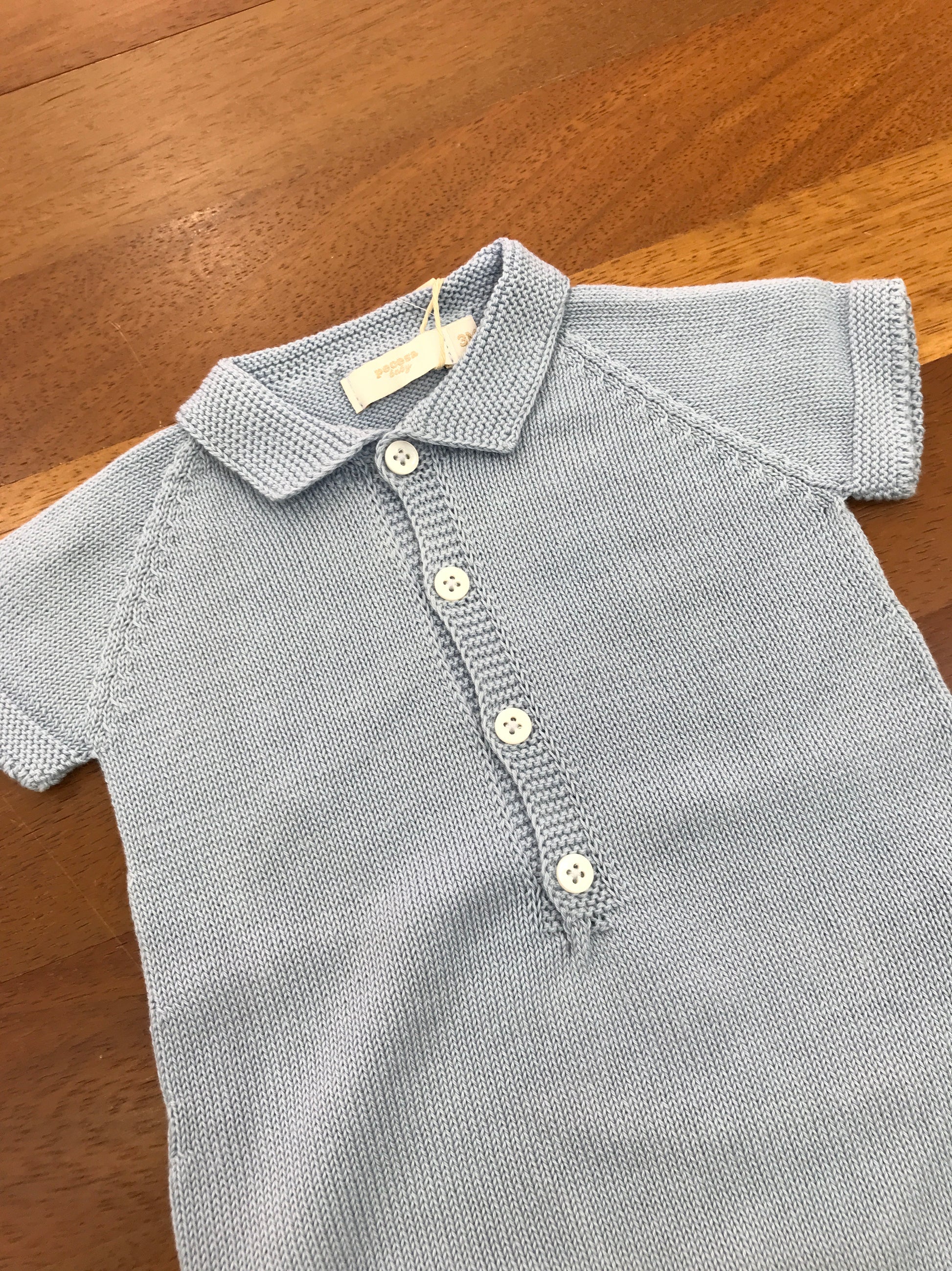 Pagliaccetto PCS in filo celeste mezza manica con collo a punta con bottoncini