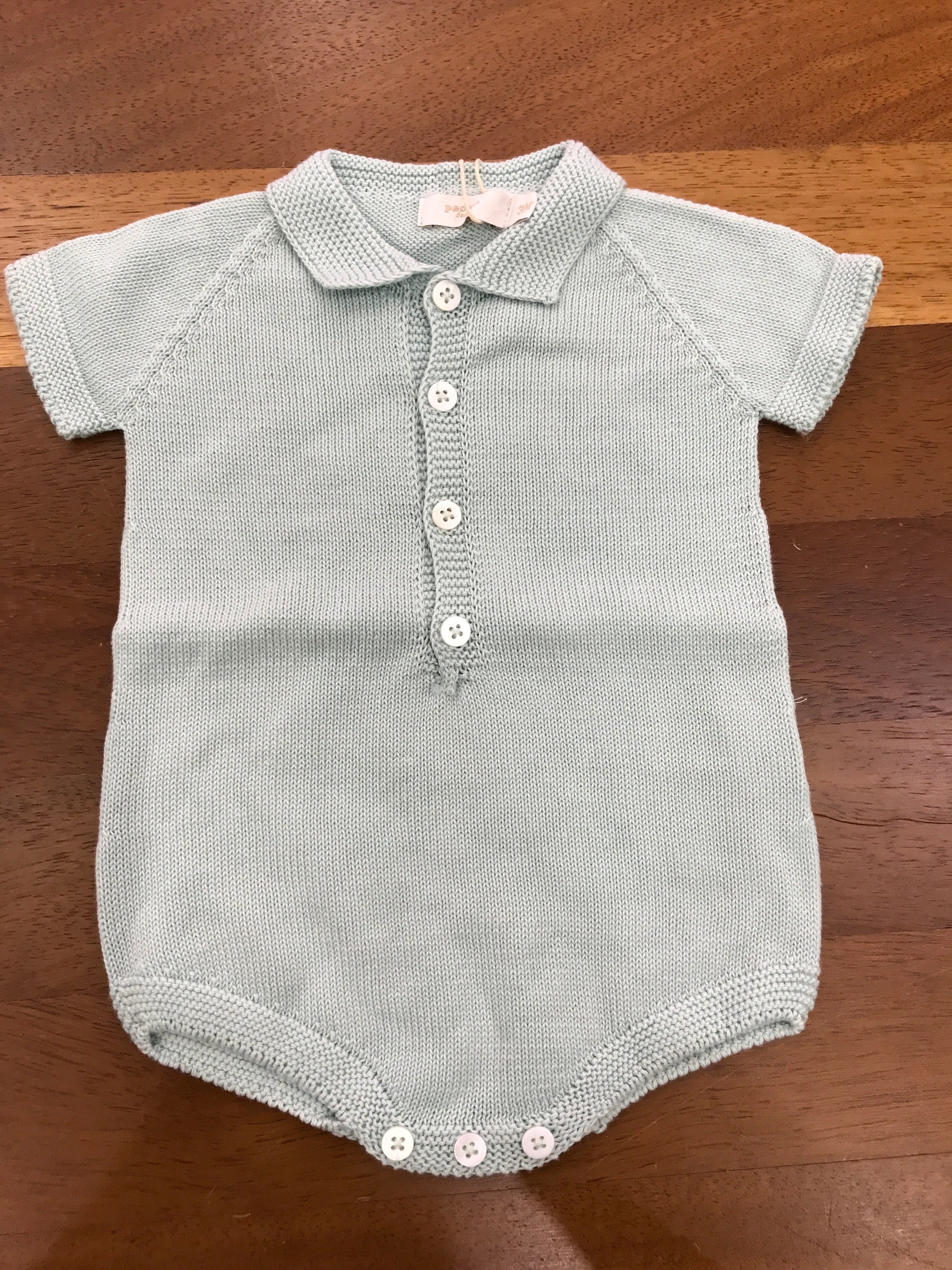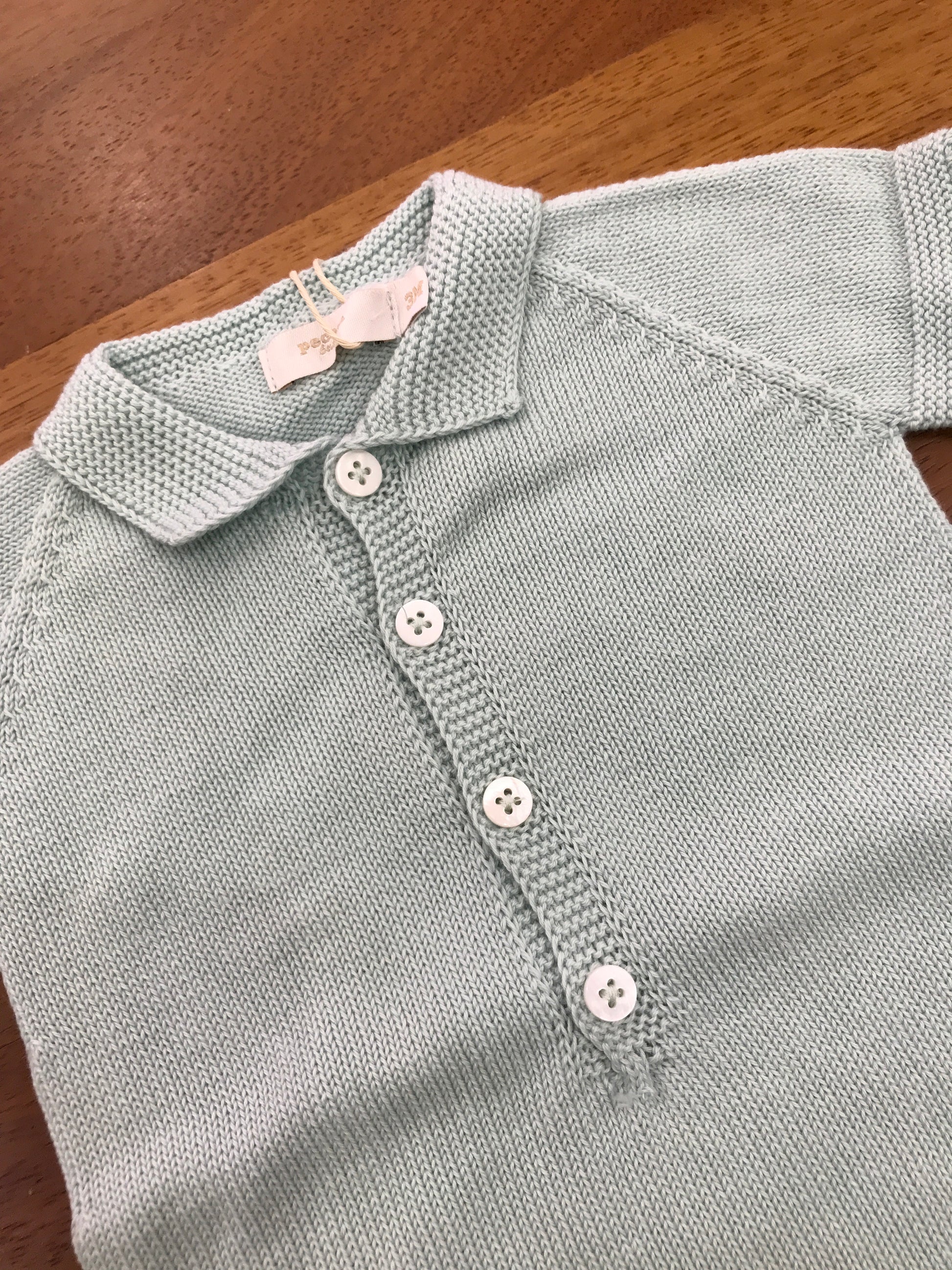 Pagliaccetto PCS in filo mezza manica verde menta con collo a punta con bottoncini sul davanti