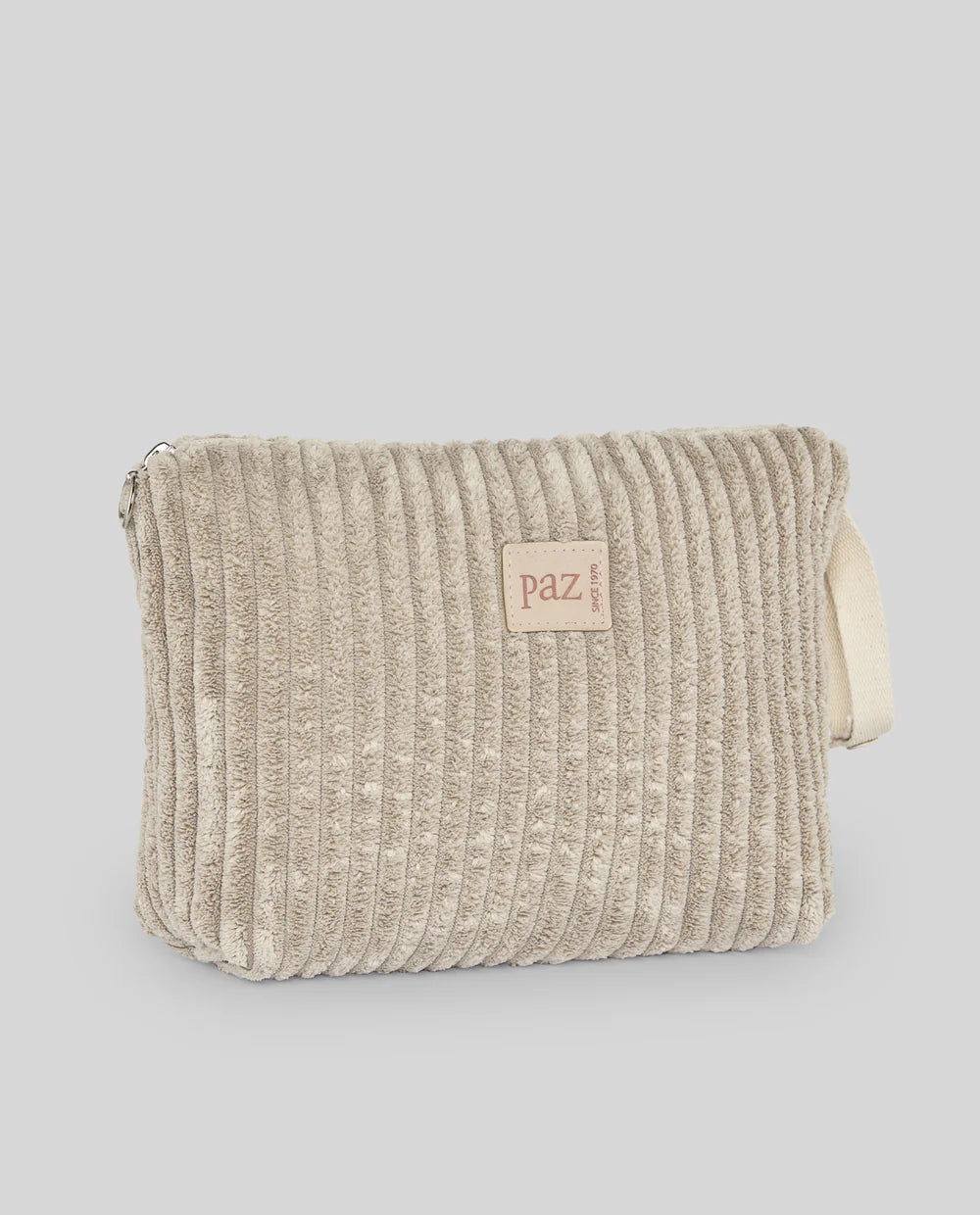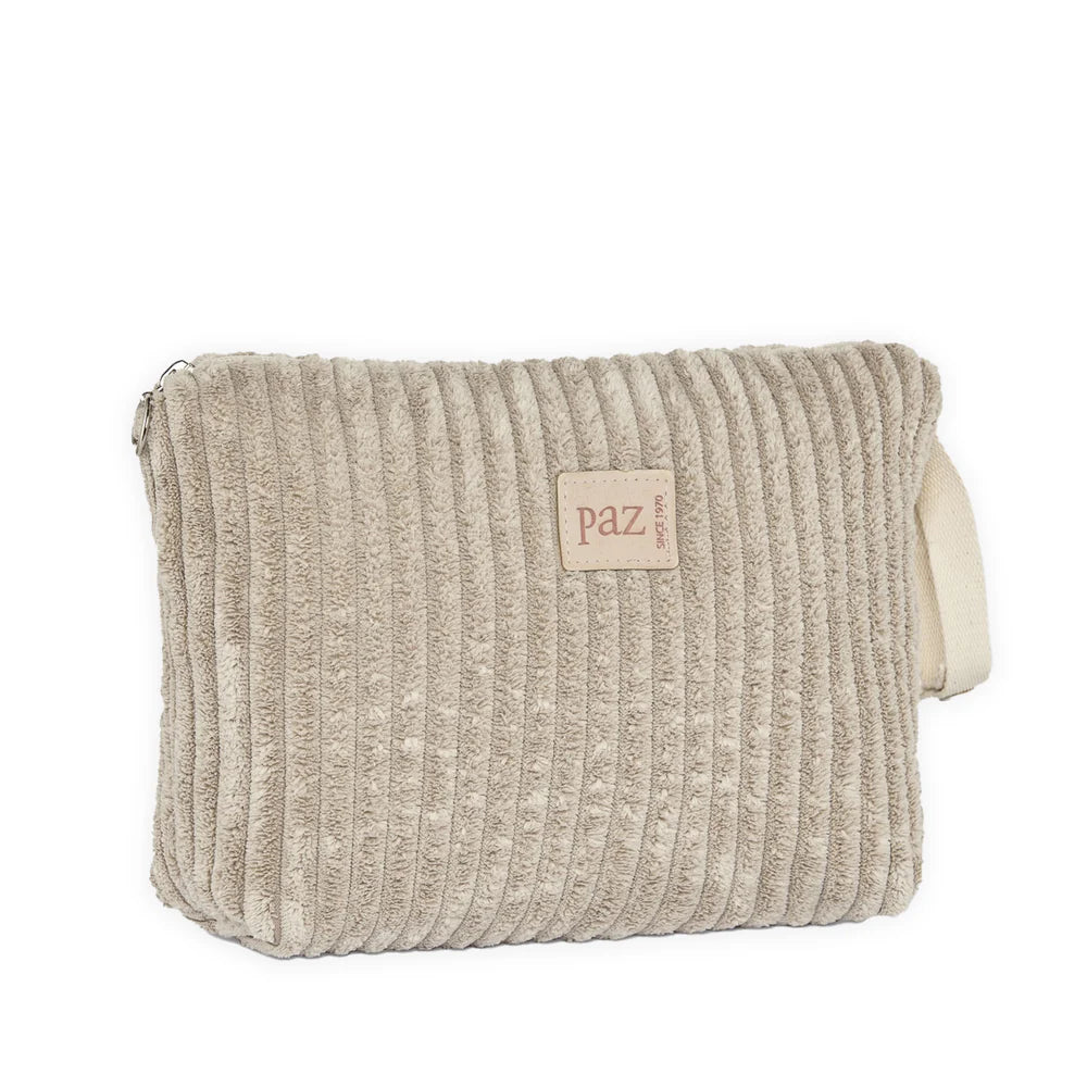 Beauty in velluto con chiusura a cerniera e manico per appenderlo.