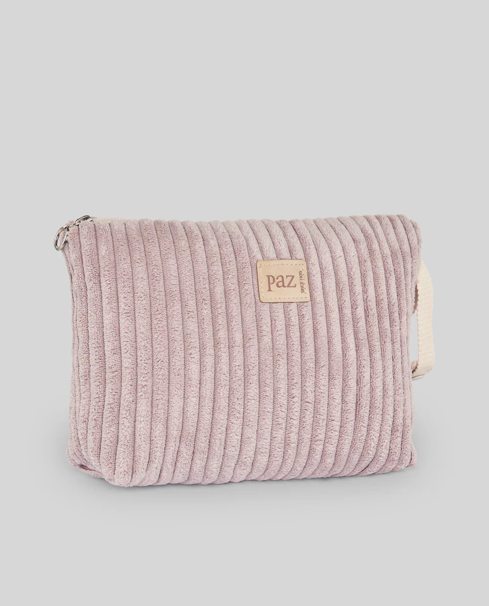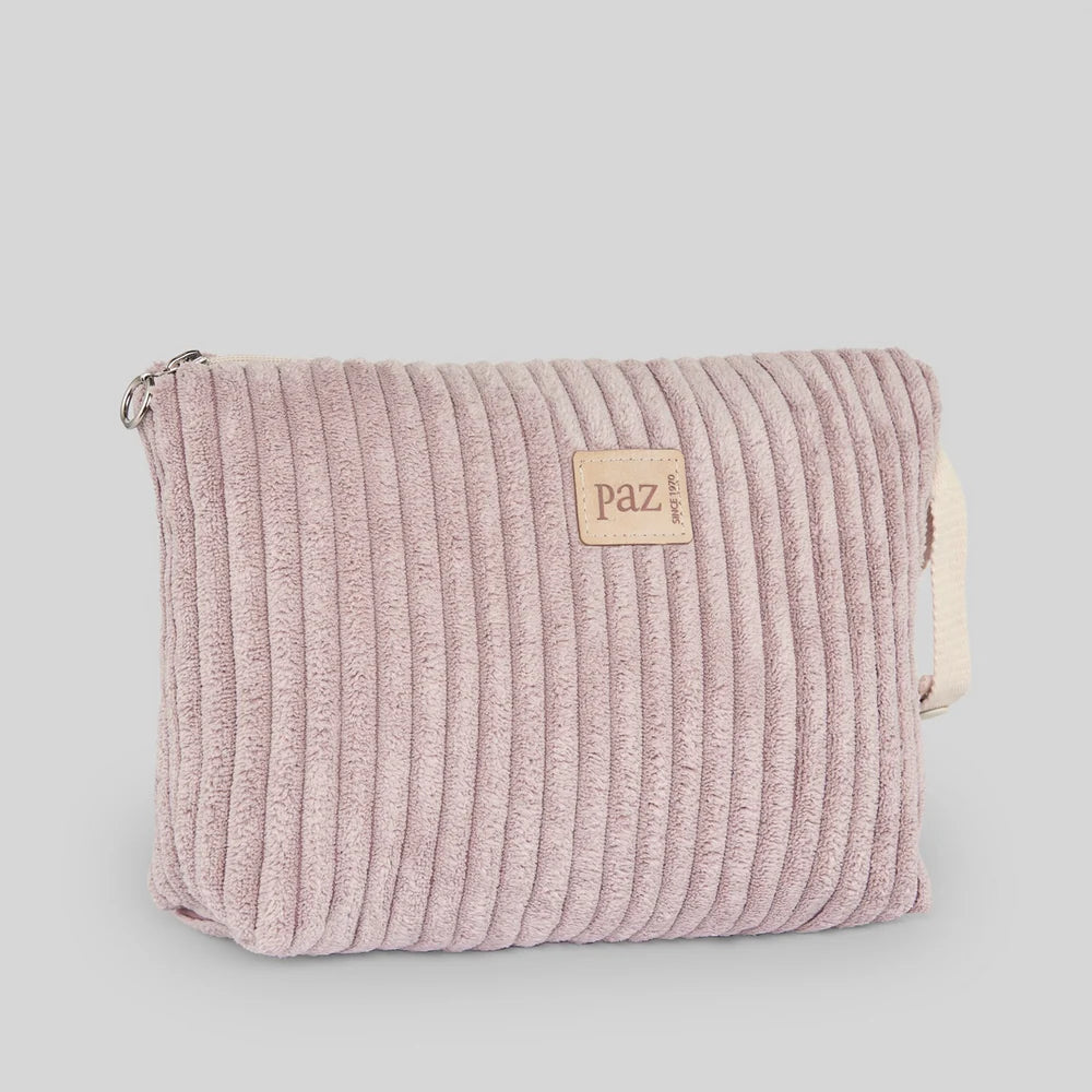 Beauty in velluto con chiusura a cerniera e manico per appenderlo