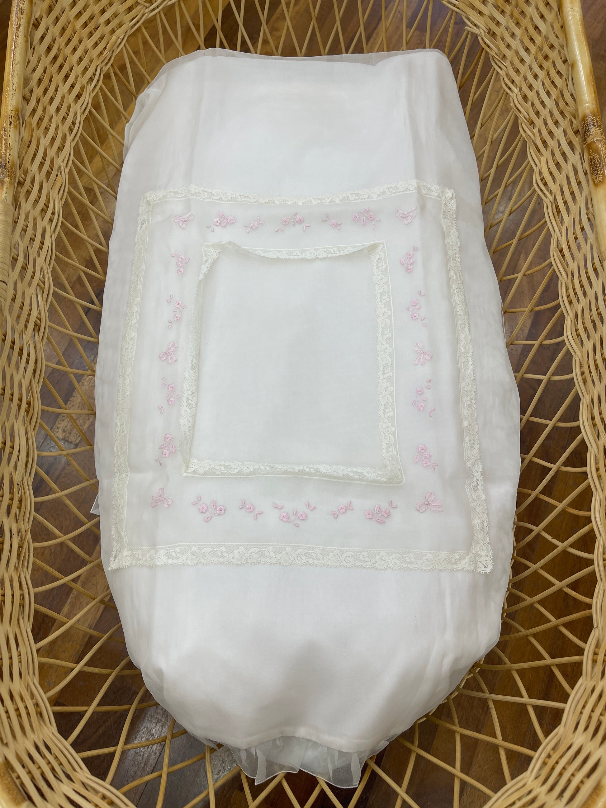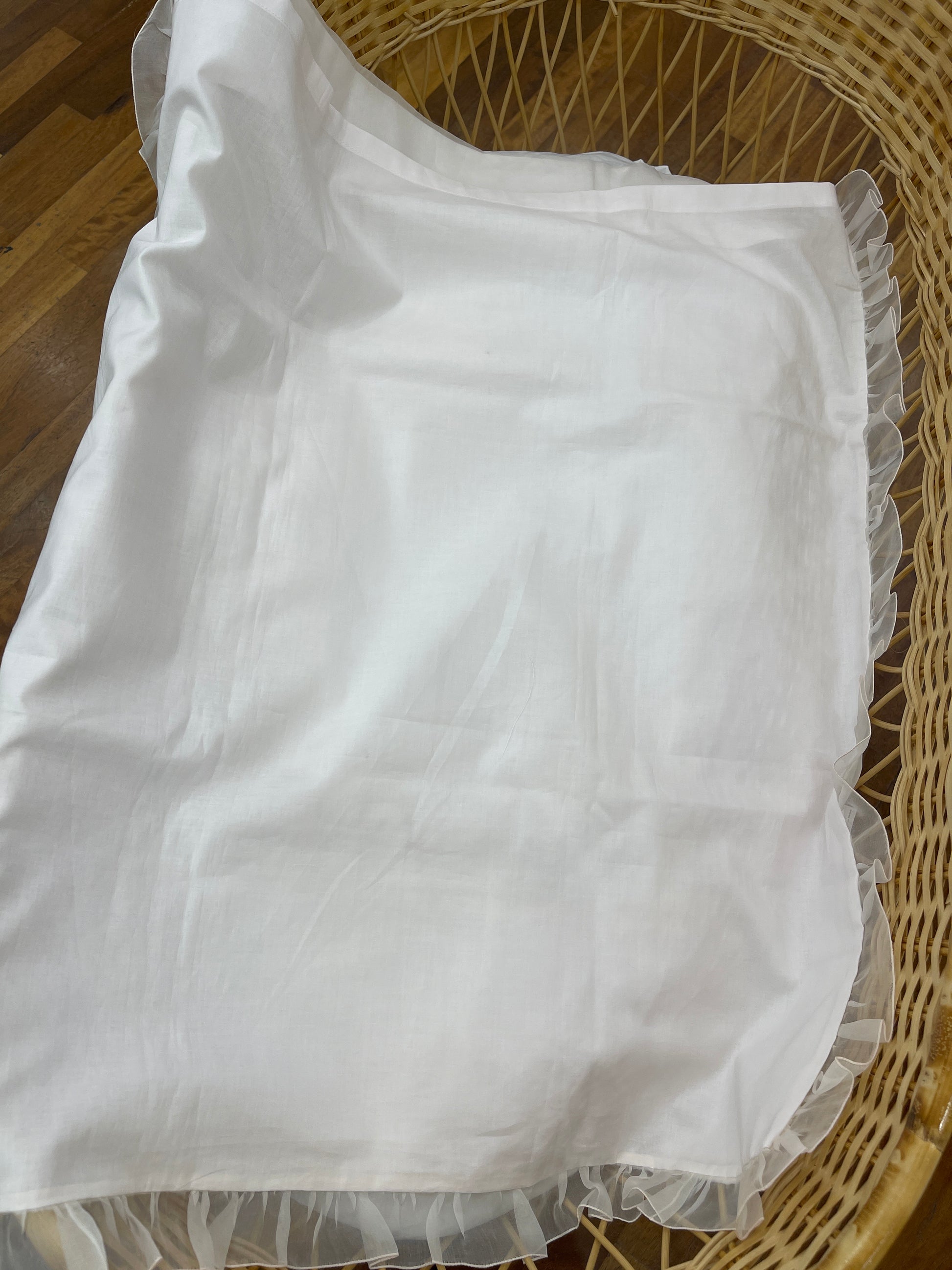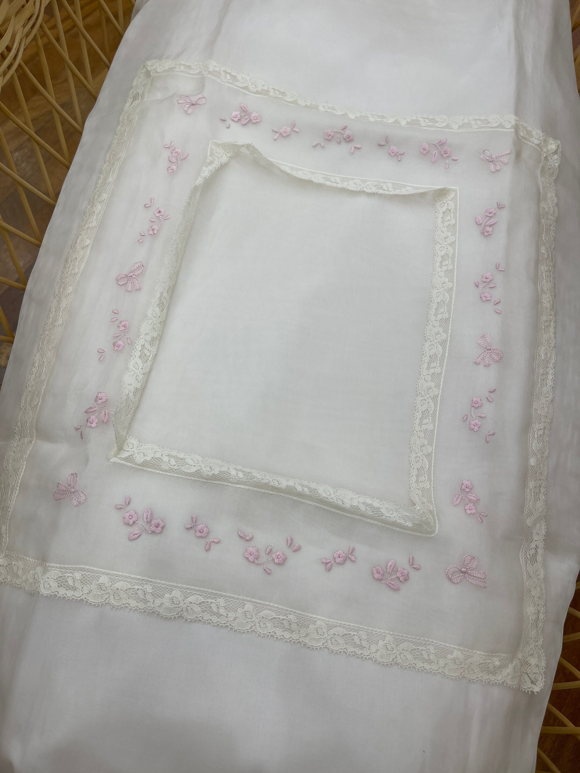 Realizzato in elegante organza di seta, il Piumoncino presenta una deliziosa rifinitura in roush, un quadrato al centro con fiocco e una graziosa valancienne. Rendete il vostro sonno ancora più confortevole con questa pregiata e raffinata biancheria da letto.