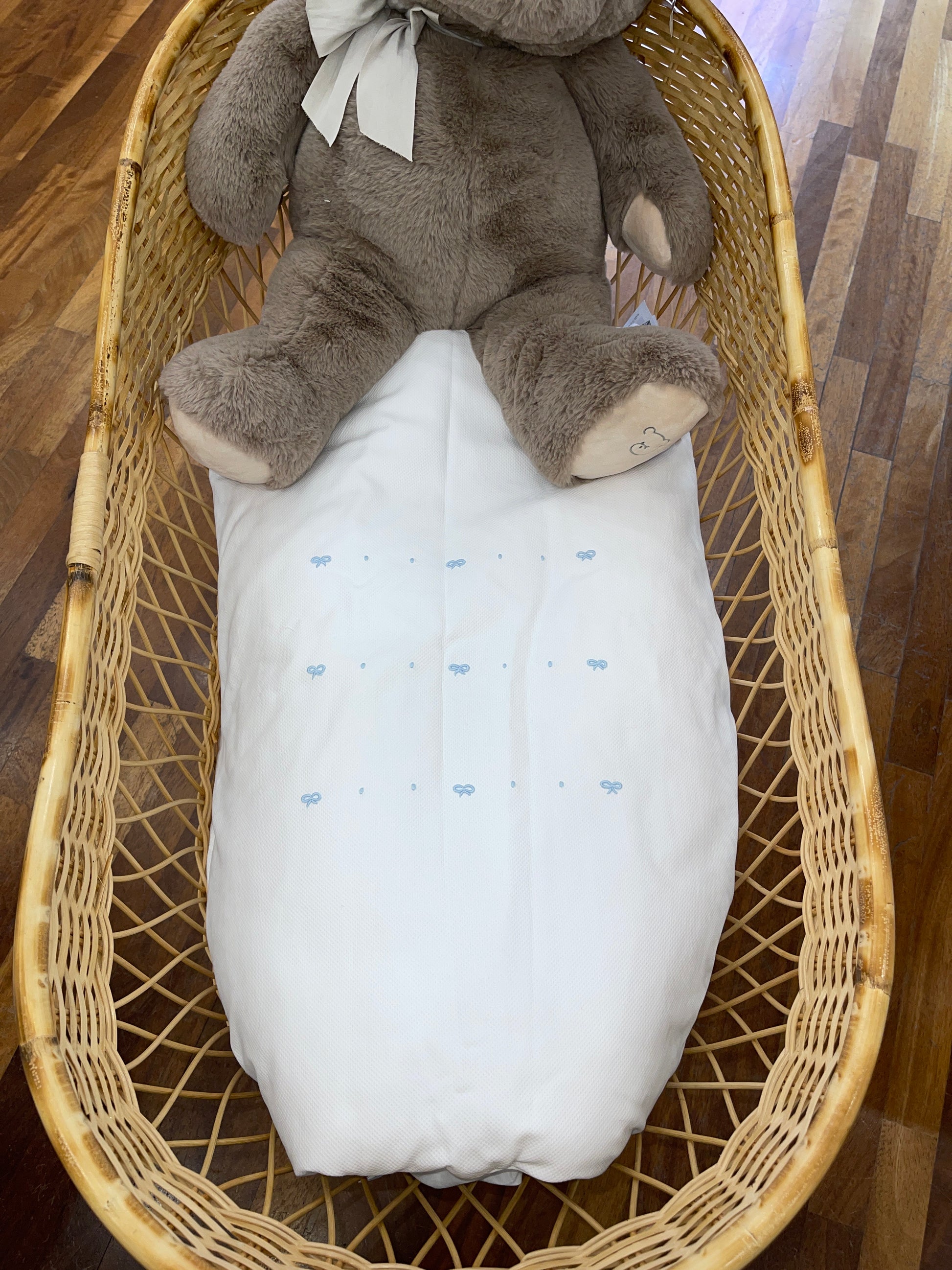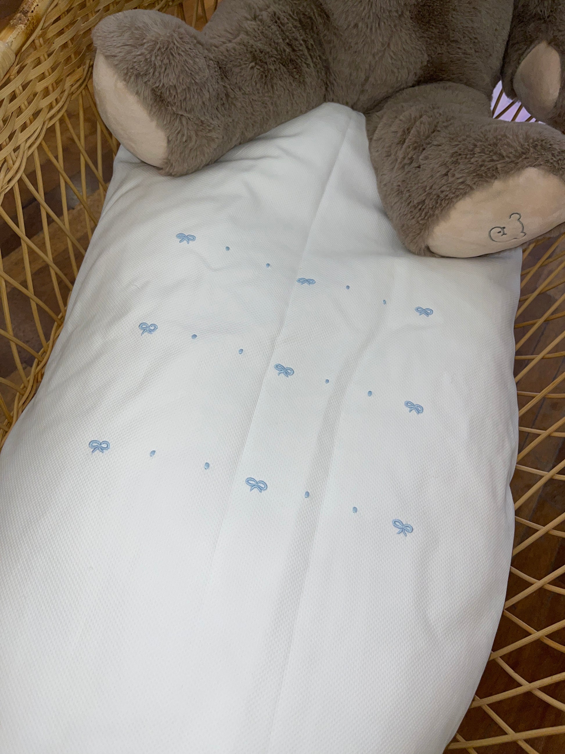 Il Piumoncino pepecè è un elegante piumino in piquet, perfetto per tutte le stagioni grazie alla foderato. è decorato con un ricamo di nodi d'amore in rilievo che aggiunge un tocco di romanticismo. Dormi sonni tranquilli grazie alla morbidezza e al calore di questo piumino.