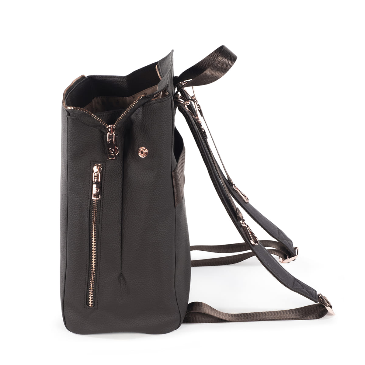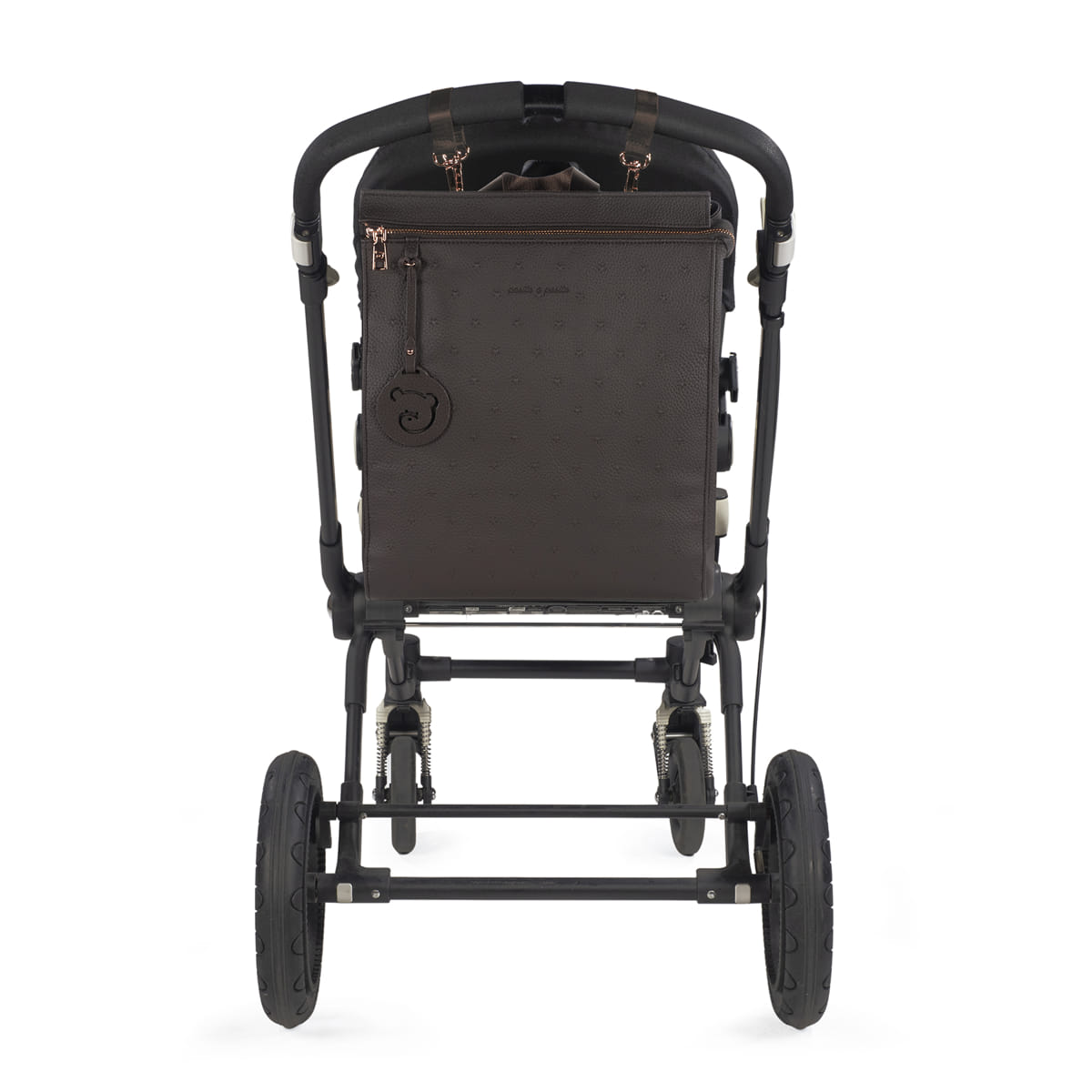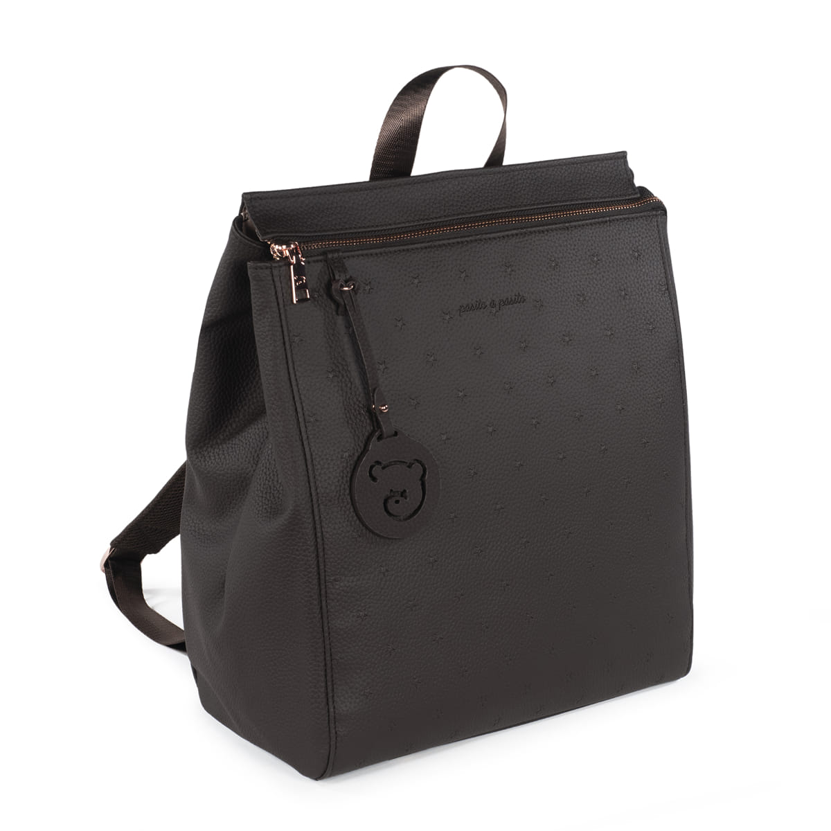 Zaino London in similpelle marrone con stelle. Grande capacità per trasportare tutto ciò che serve a voi e al vostro bambino. Tasche interne ed esterne per tenere tutto a portata di mano e in ordine. Scomparto per laptop o tablet. Tasca termica interna per biberon. Include un fasciatoio. Dispone di 2 grandi maniglie regolabili per poterlo utilizzare appeso alla schiena e di altre due piccole maniglie per poterlo utilizzare appeso al carrello del bambino. Include una cinghia per trasportarlo con il bagaglio. Lavabile a mano o in lavatrice a 30°. I materiali utilizzati sono privi di coloranti azoici, ftalati e sostanze nocive per la salute. Dimensioni: 32X38X15 cm. Borse premaman Pasito a pasito.