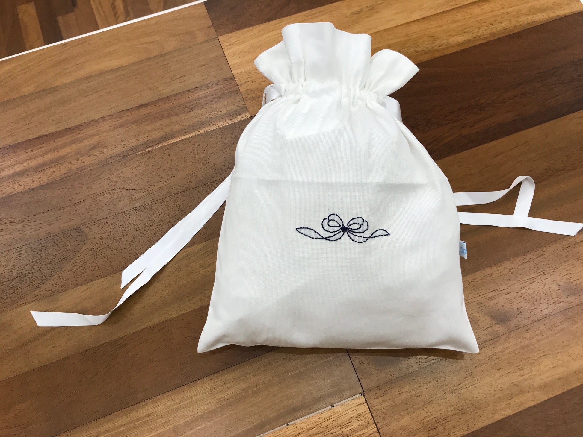 Questo sacco per il primo cambio, realizzato in un elegante colore panna, è impreziosito da un nastro in tonalità panna che arricchisce il design con sobrietà. Sul davanti, un raffinato fiocchetto ricamato in blu dona un tocco di delicatezza, rendendo questo accessorio funzionale ed esteticamente curato per ogni momento dedicato al neonato.