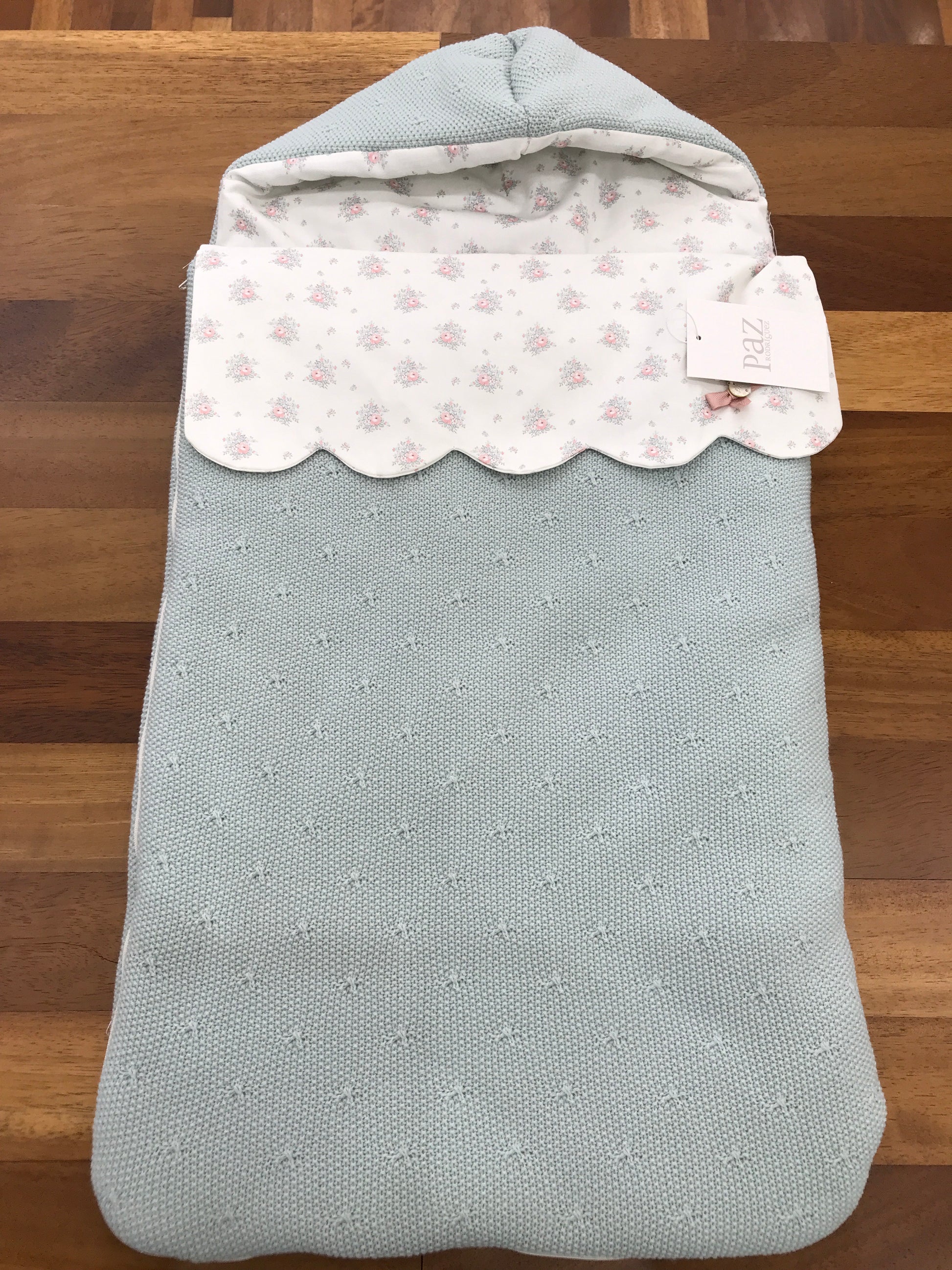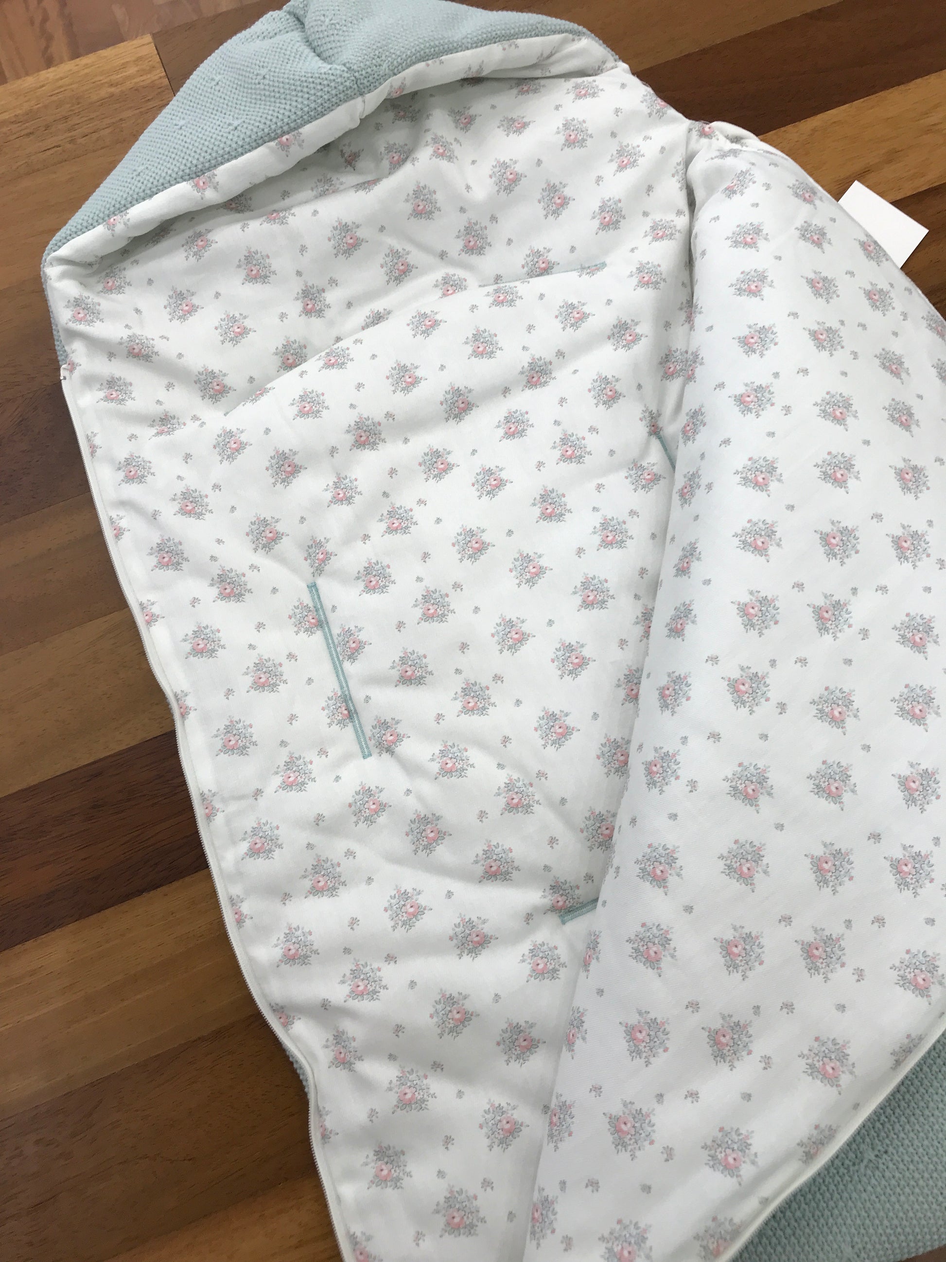 Il sacco nanna di colore verde presenta un motivo interno con fiorellini rosa, aggiungendo un tocco delicato e raffinato. È dotato di un cappuccio integrato che offre ulteriore protezione e comfort, ideale per mantenere il bambino avvolto e al caldo durante il riposo. Questo design combina funzionalità ed estetica, garantendo un ambiente accogliente e sicuro per il sonno.