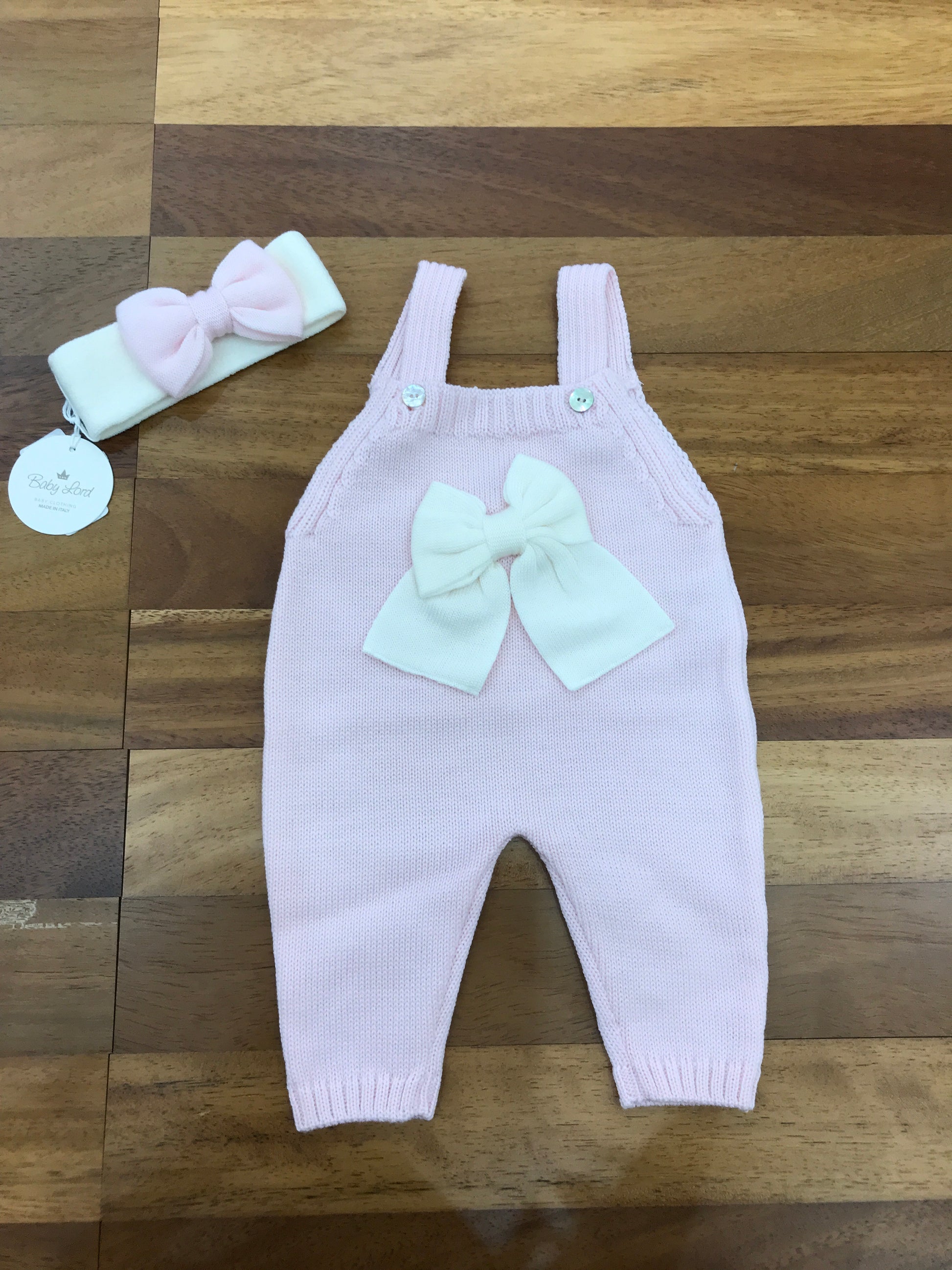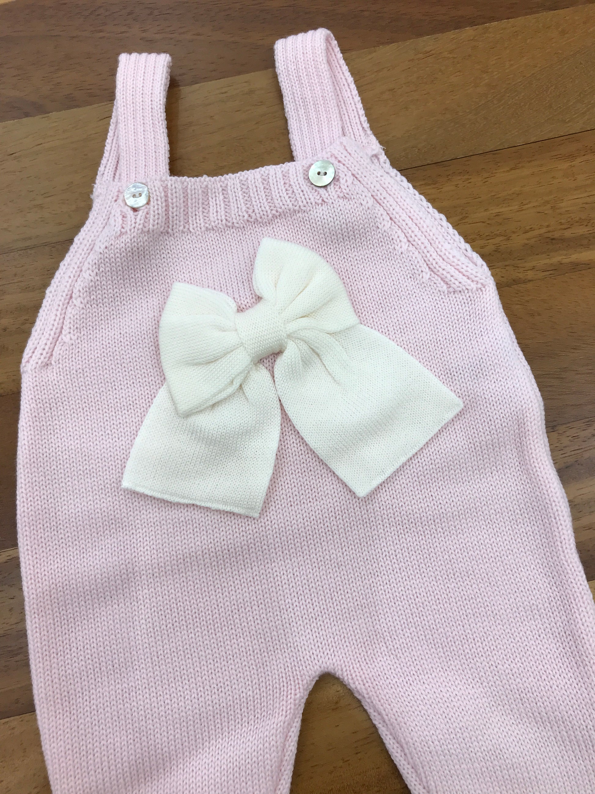 Salopette Baby Lord realizzata in lana, caratterizzata da un fiocco centrale e senza piedini.