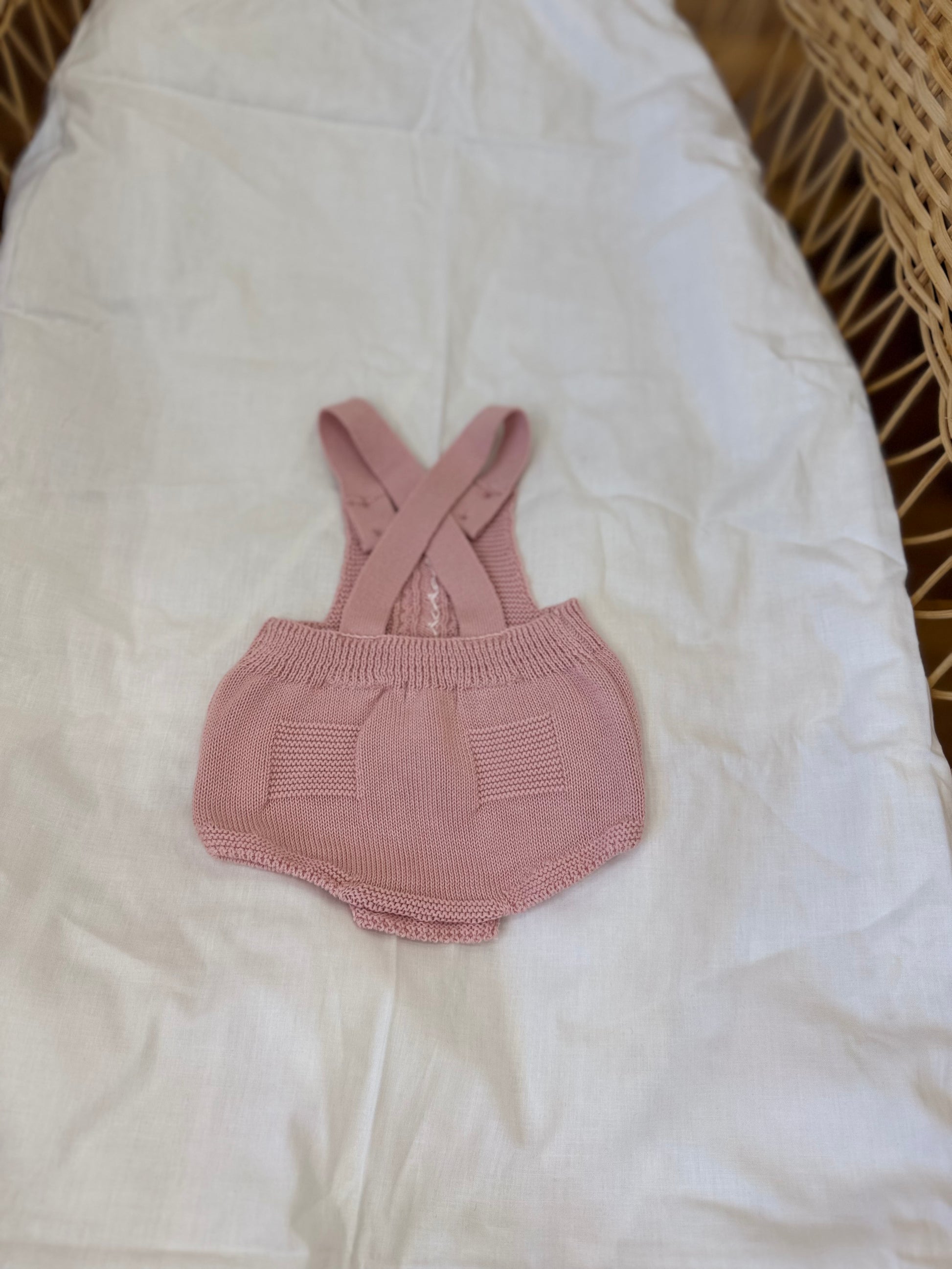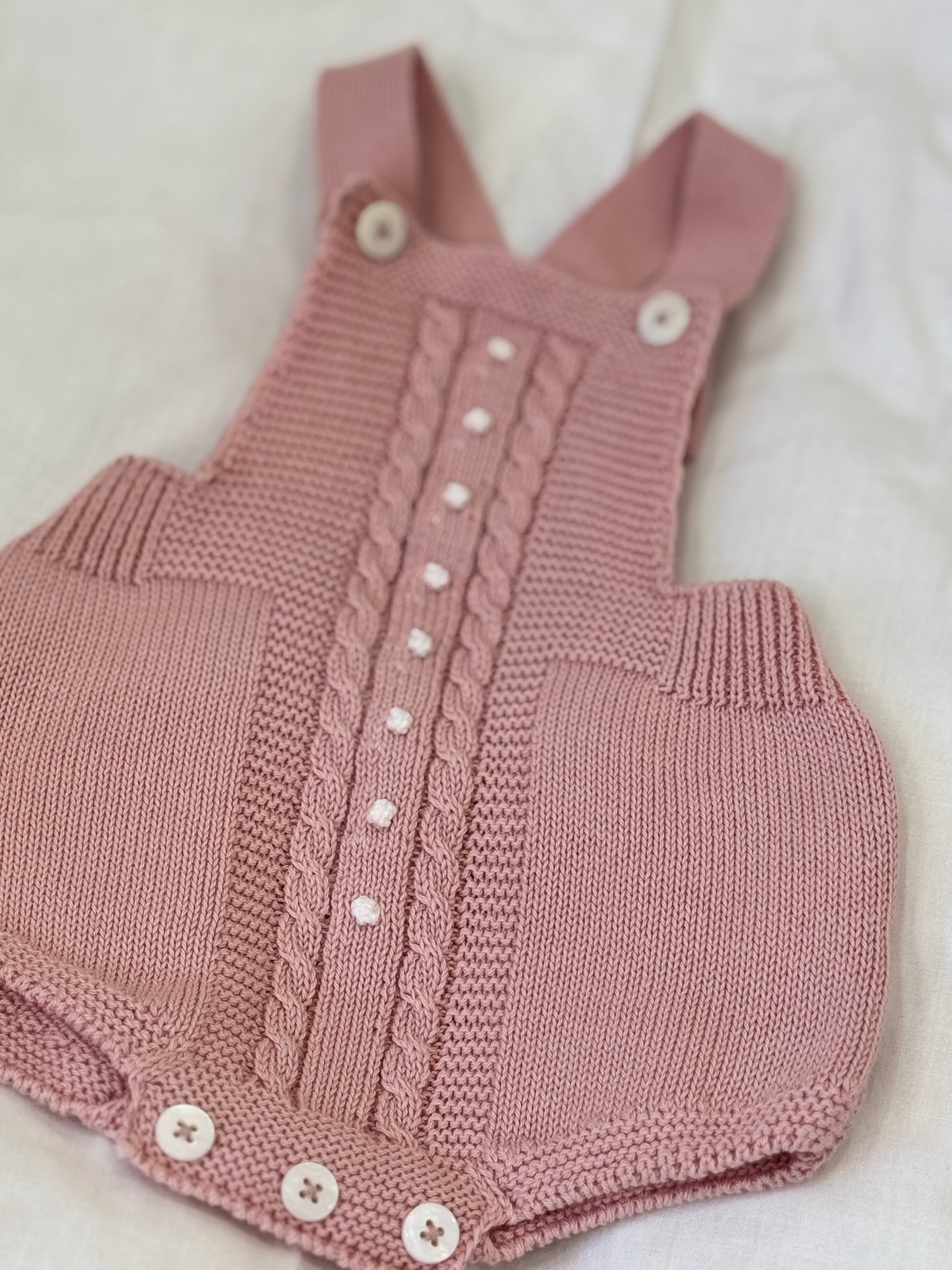 Salopette rosa antico in filo di cotone con puntini ricamati sul corpetto. Perfetta per un look dolce e delicato per la tua piccola .Indossabile anche con un body manica corta con colletto. Versatile e raffinata, ideale per ogni occasione.