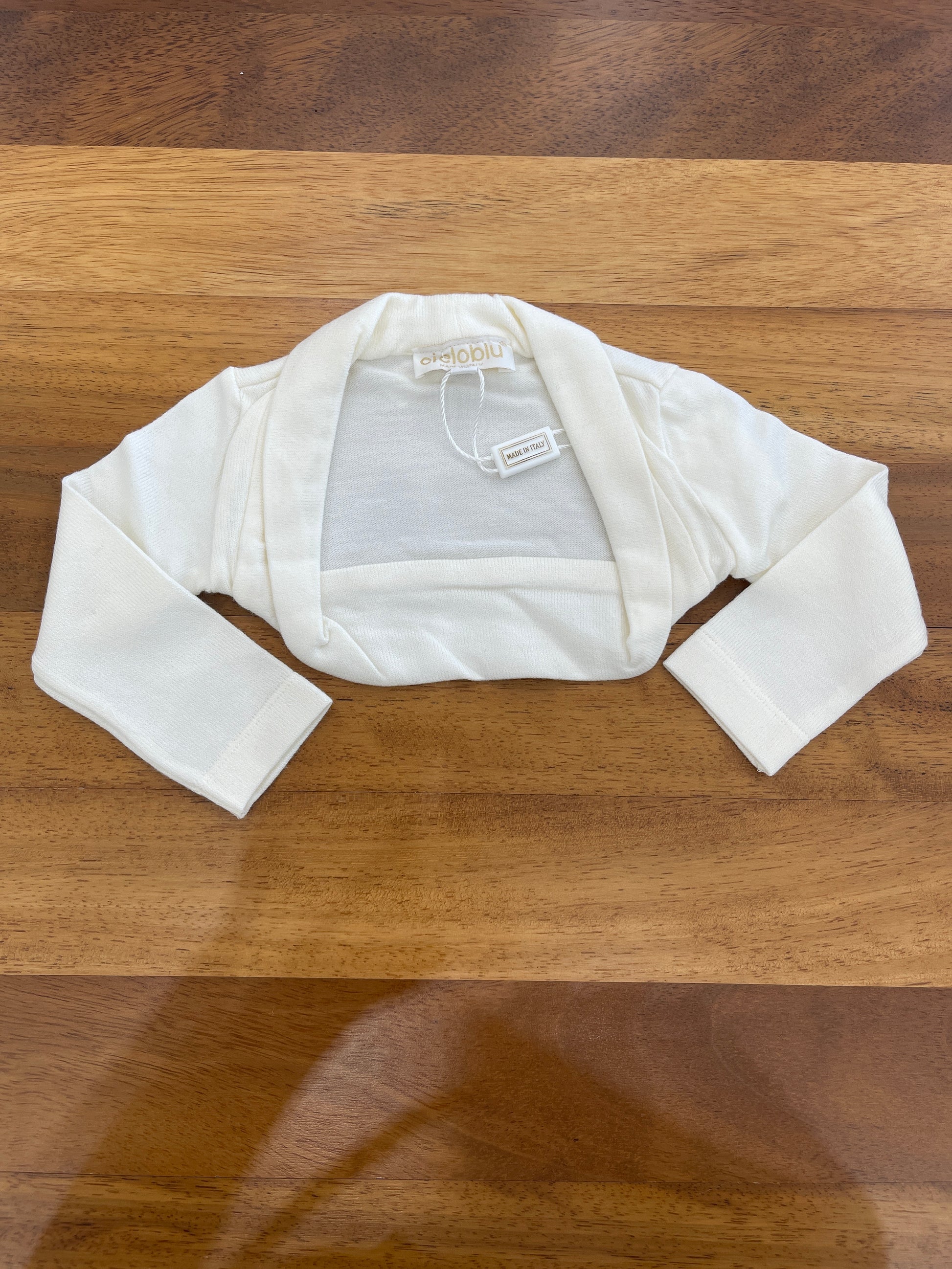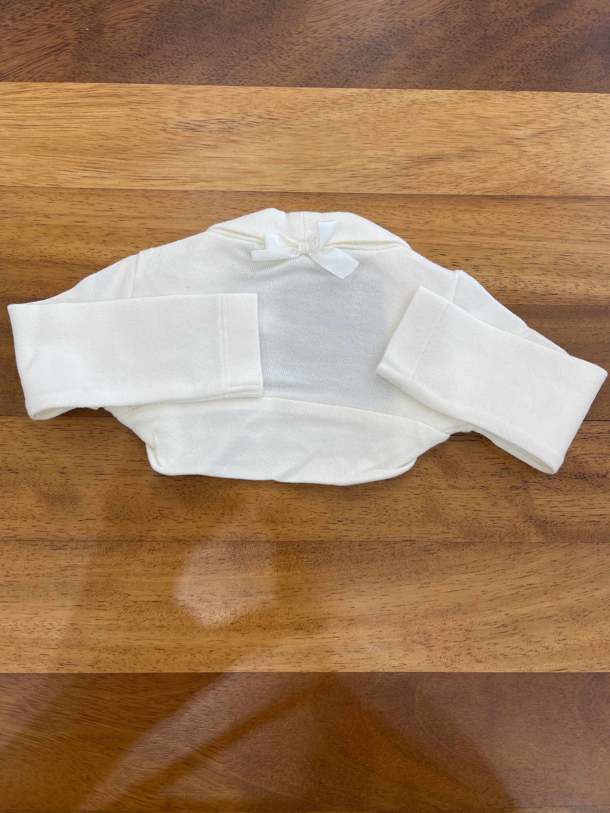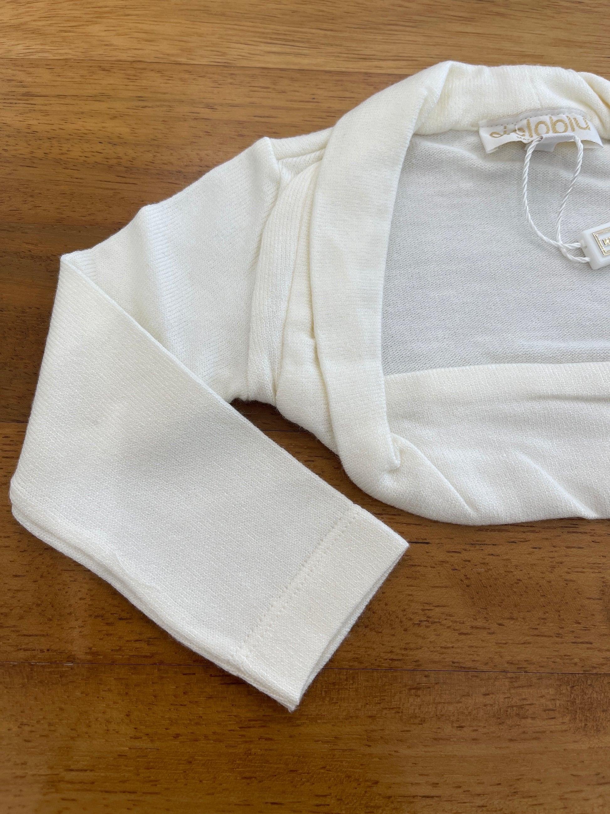 Il scaldacuore realizzato in morbida lana color panna presenta un design essenziale senza chiusure, garantendo comfort e semplicità d’uso ideale per ogni occasione.