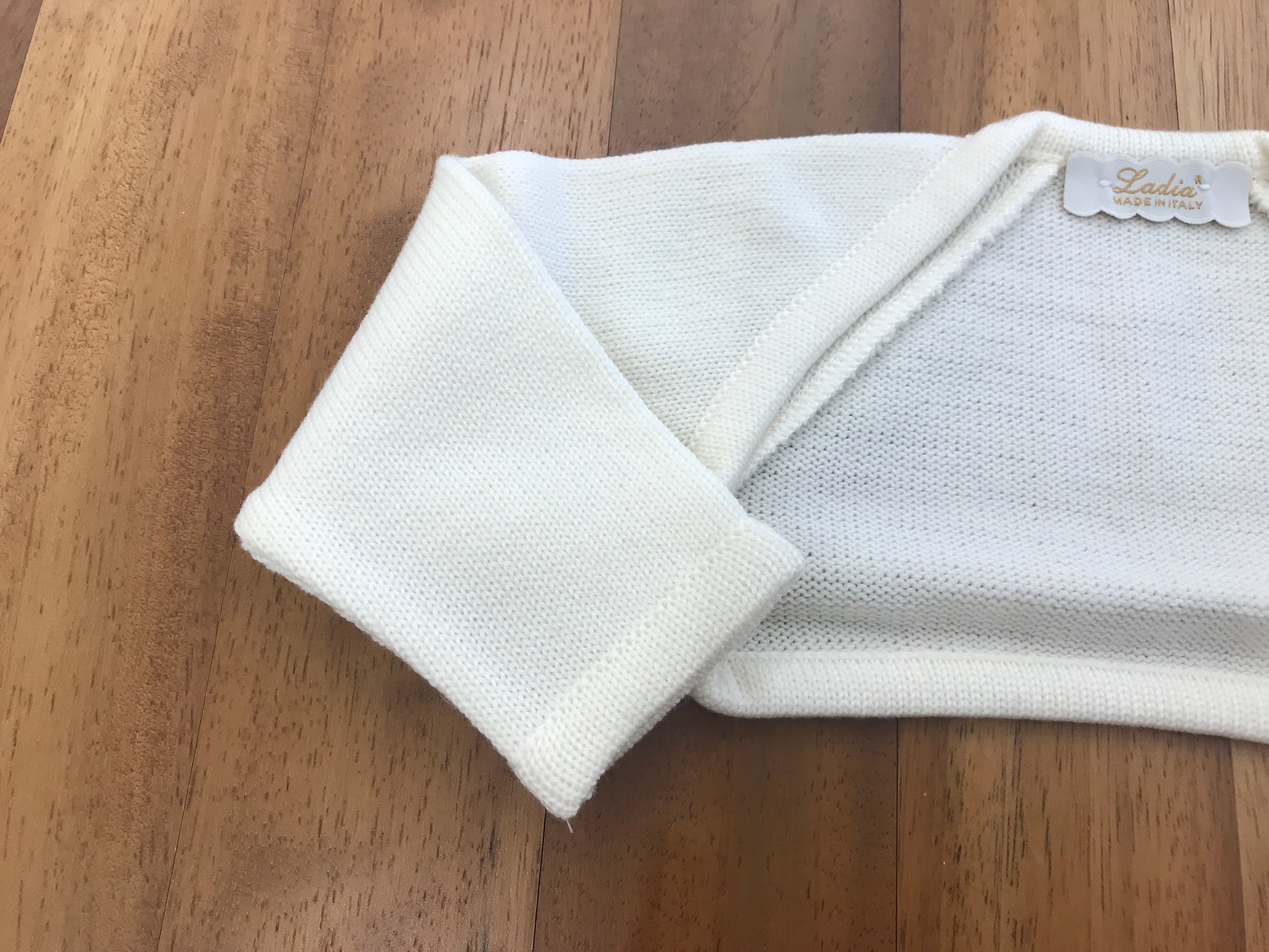 Questo cardigan in lana color panna presenta una linea essenziale senza chiusure, con una vestibilità comoda e una lunghezza leggermente allungata. Ideale per chi desidera un capo versatile e sobrio, si abbina facilmente a molteplici look. Sul retro è impreziosito da un logo con dettagli in brillantini.