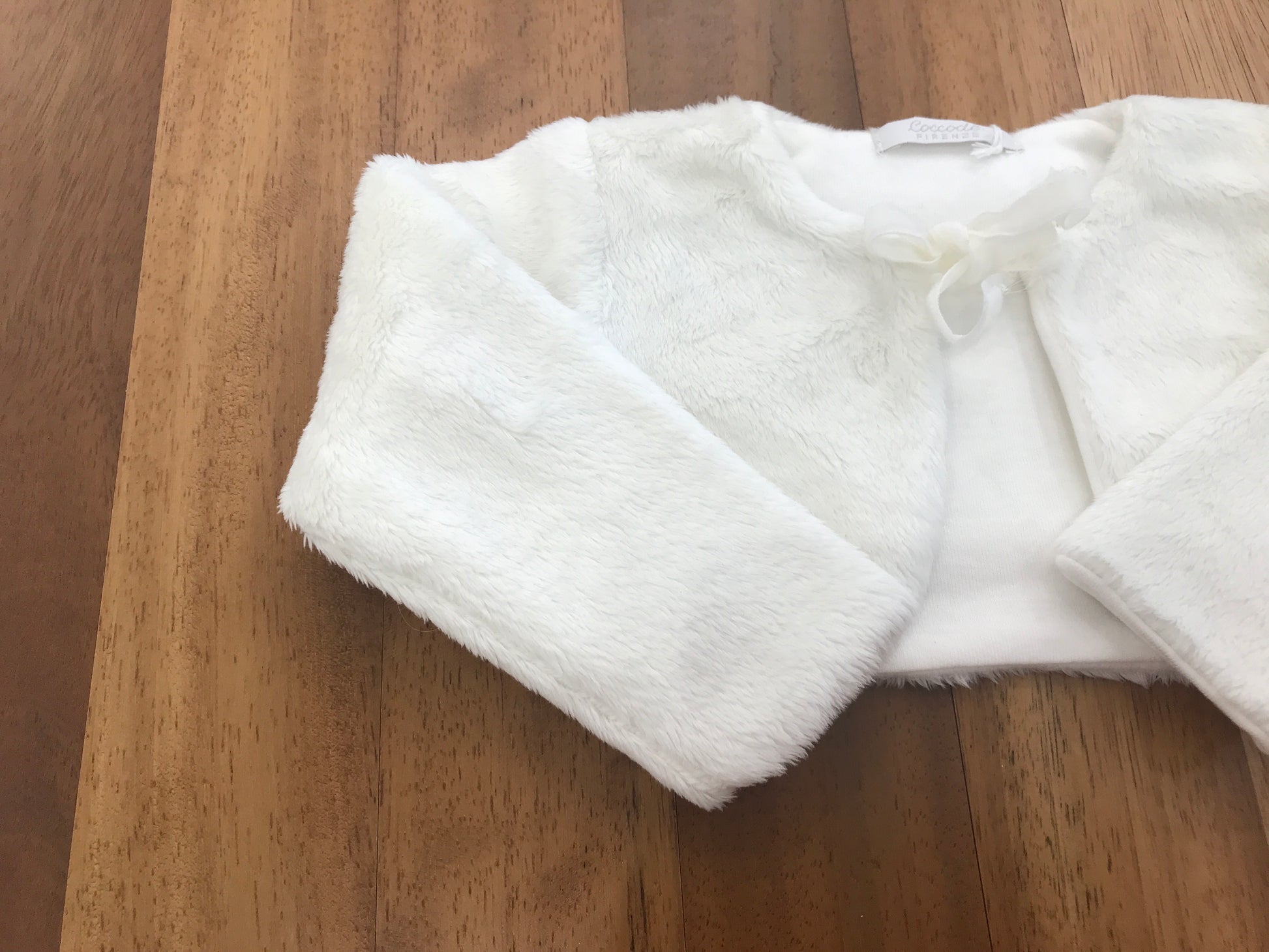 Scaldacuore realizzato in soffice pelliccia color panna, caratterizzato da una chiusura con fiocchetto che aggiunge un tocco raffinato e funzionale al design.