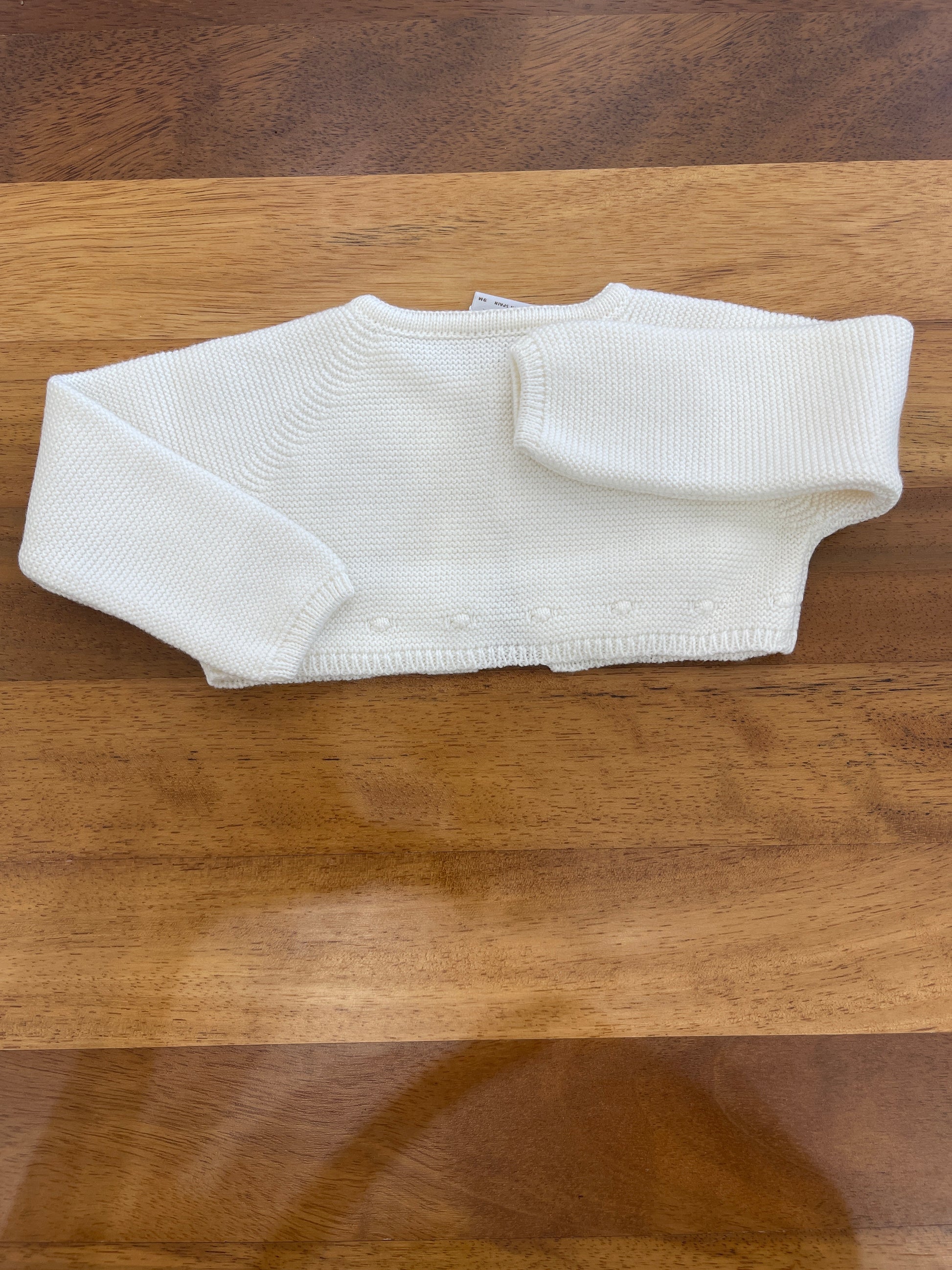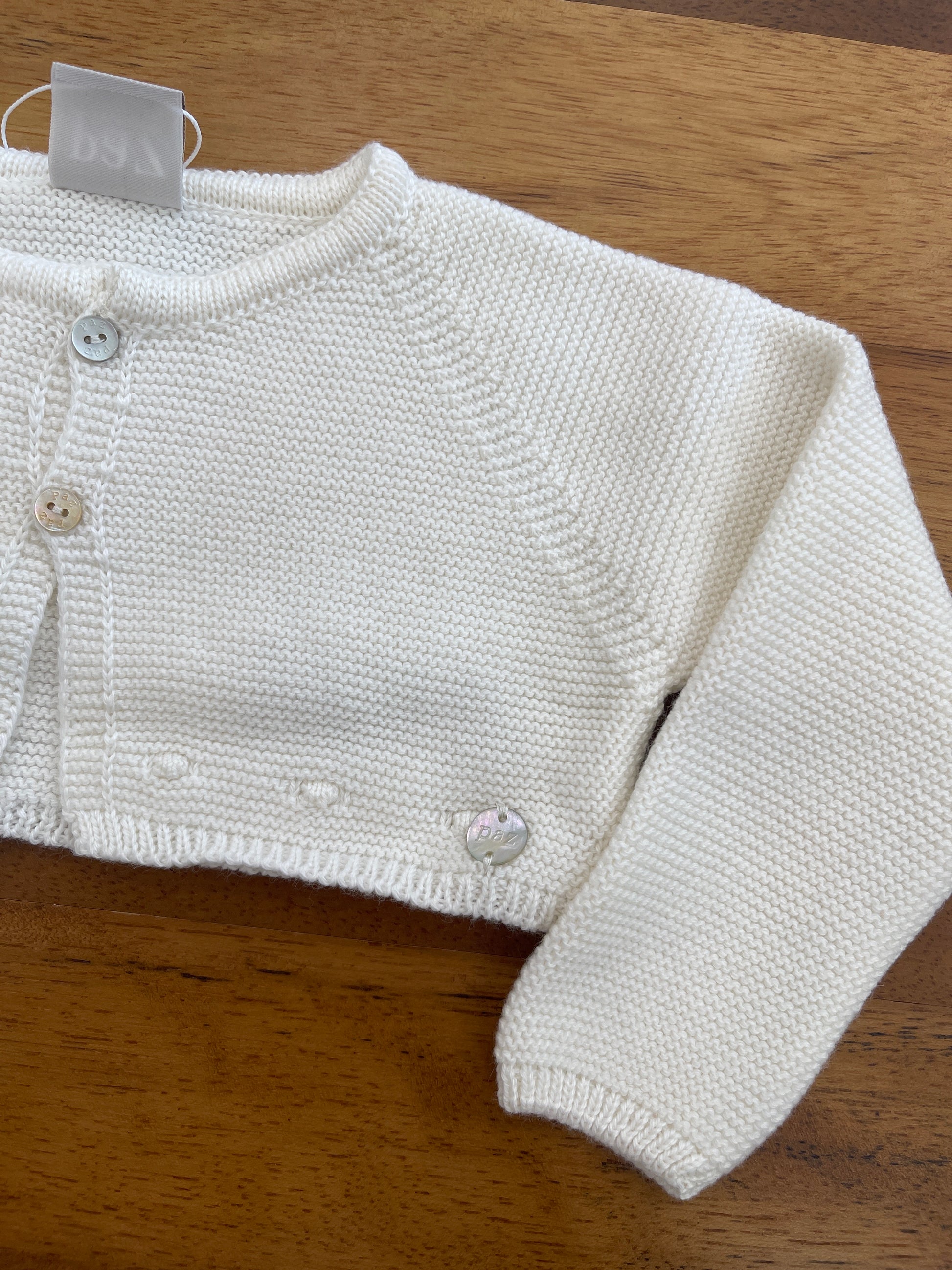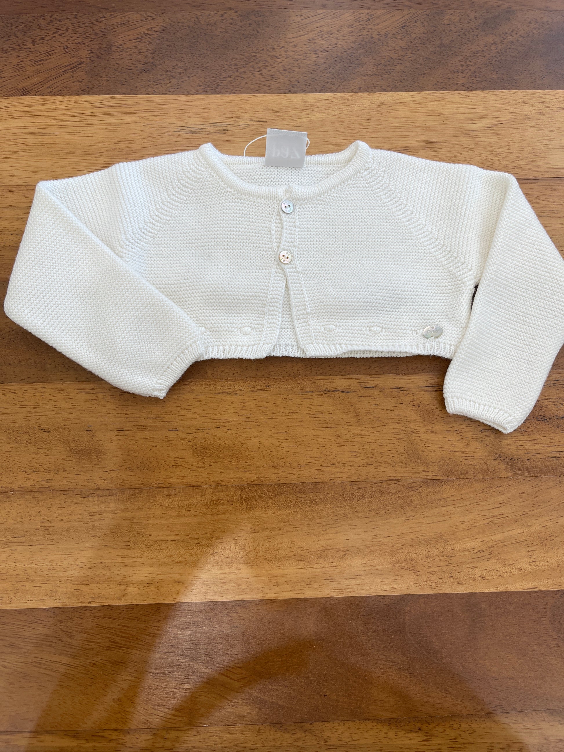 Cardigan realizzato in lana di tonalità neutra, caratterizzato da un design semplice e versatile. Presenta due piccoli bottoncini che ne permettono la chiusura, offrendo praticità senza rinunciare all'eleganza. Questo capo è ideale per chi cerca comfort e stile in un unico articolo, perfetto per ogni occasione.