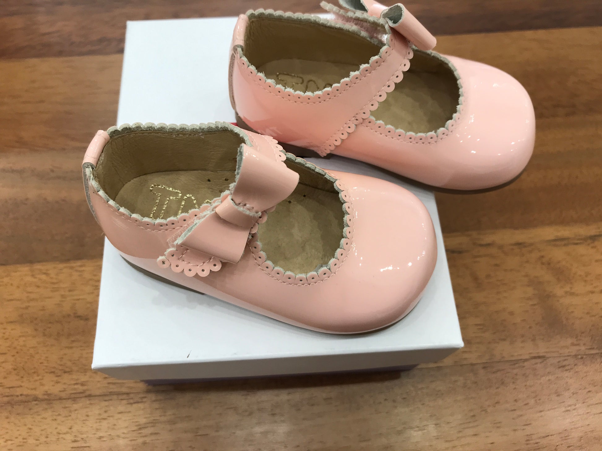 La scarpa primi passi, proposta in un elegante rosa, presenta un raffinato dettaglio posizionato sulla parte frontale. La chiusura a strappo garantisce una calzata sicura e facilita la messa e la rimozione della scarpa. Come elemento decorativo, un piccolo fiocchetto delicato aggiunge un tocco di dolcezza e stile, ideale per accompagnare i primi passi del bambino con comfort e cura.