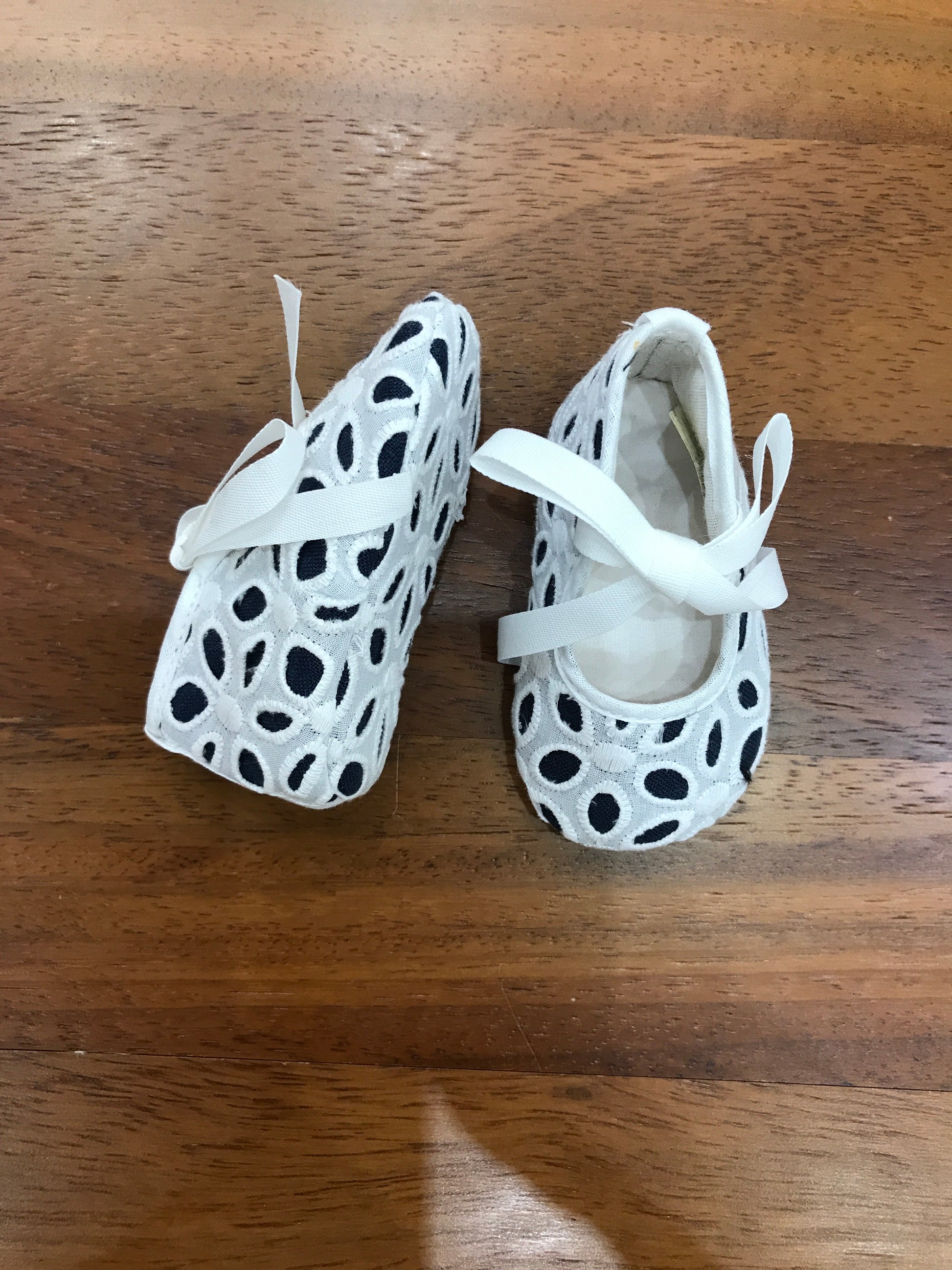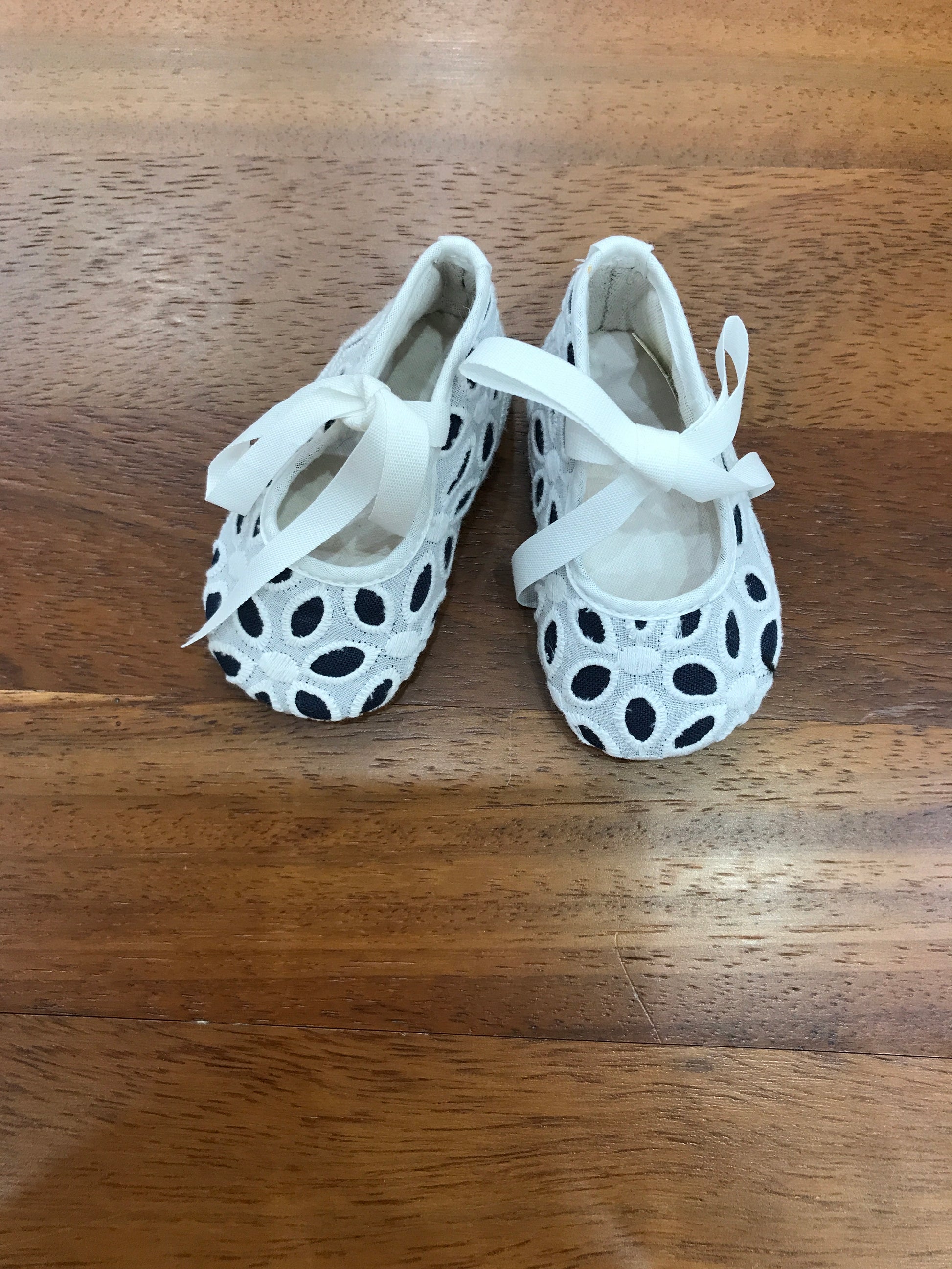 Delicata scarpina realizzata in cotone di qualità, caratterizzata da una tonalità blu profonda impreziosita da dettagli di san gallo bianco. La chiusura pratica con fiocchietto garantisce una vestibilità sicura e confortevole, ideale per i primi passi del vostro bambino. Un capo essenziale che unisce semplicità e eleganza.