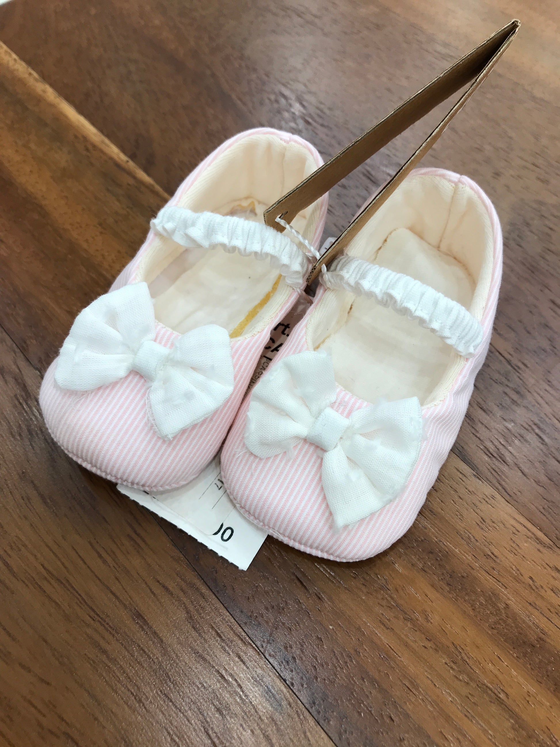 Delicata scarpina realizzata in cotone a trama leggera, caratterizzata da eleganti righe alternate in tonalità rosa e bianco. La pratica fascia elastica sulla parte anteriore assicura una vestibilità comoda e sicura, mentre il raffinato fiocchetto bianco aggiunge un tocco di grazia al design. Ideale per i primi passi dei più piccoli.