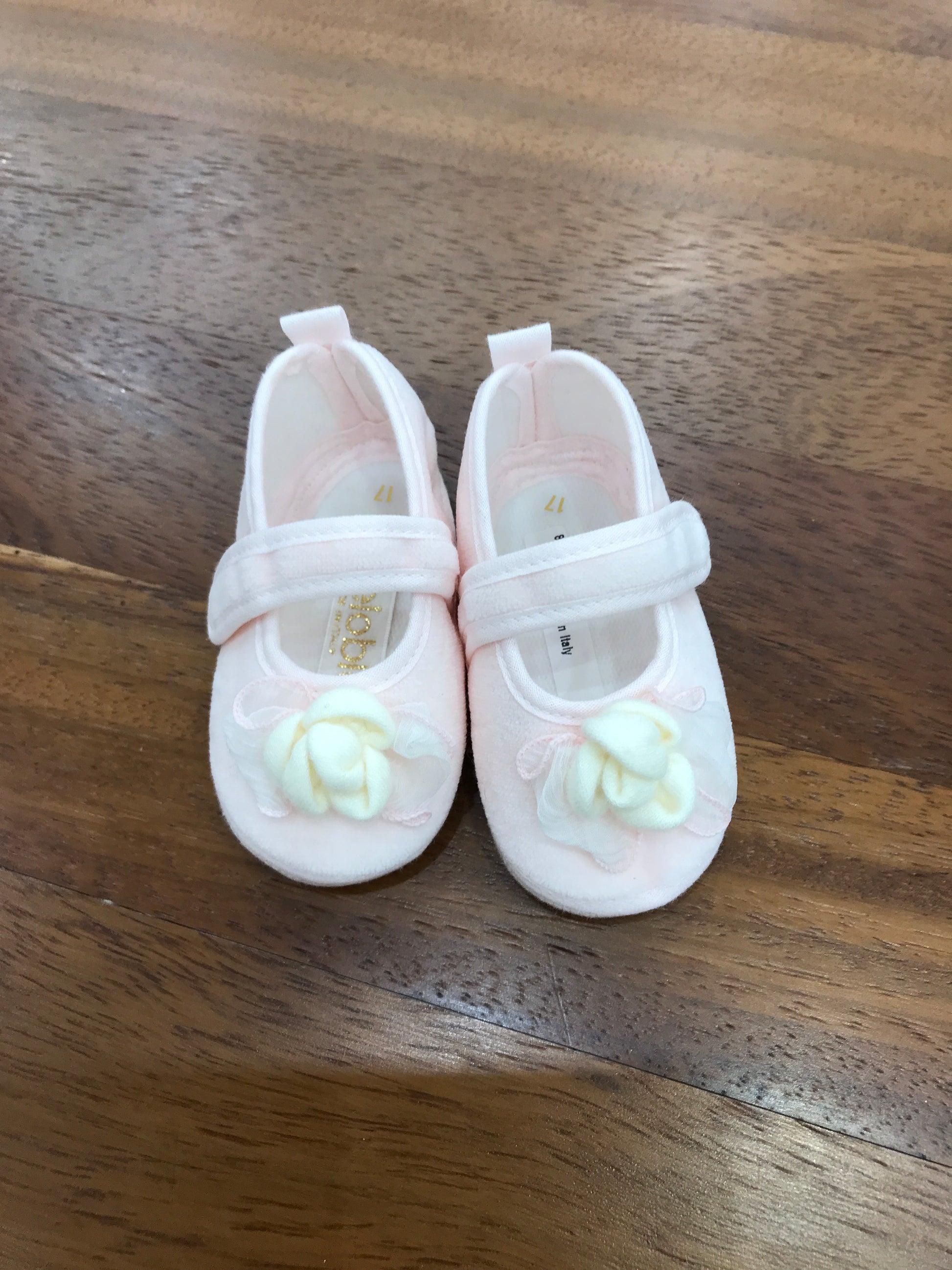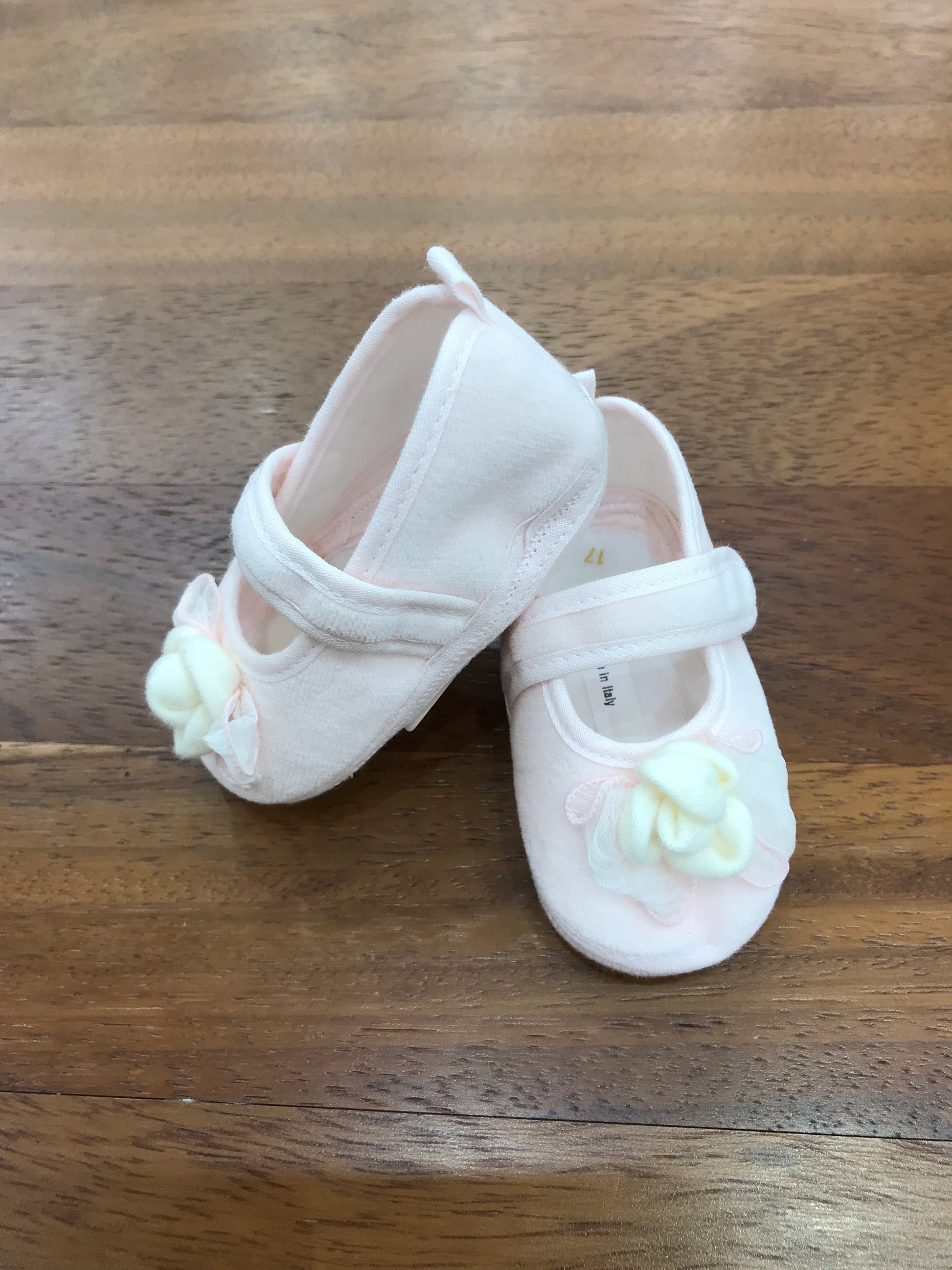 Delicata scarpina realizzata in morbida ciniglia, caratterizzata da una pratica chiusura a strappo per un'indossabilità semplice e veloce. Il fiore decorativo sul davanti aggiunge un tocco di eleganza e femminilità al design, rendendola perfetta per le piccole principesse che desiderano uno stile raffinato e confortevole.