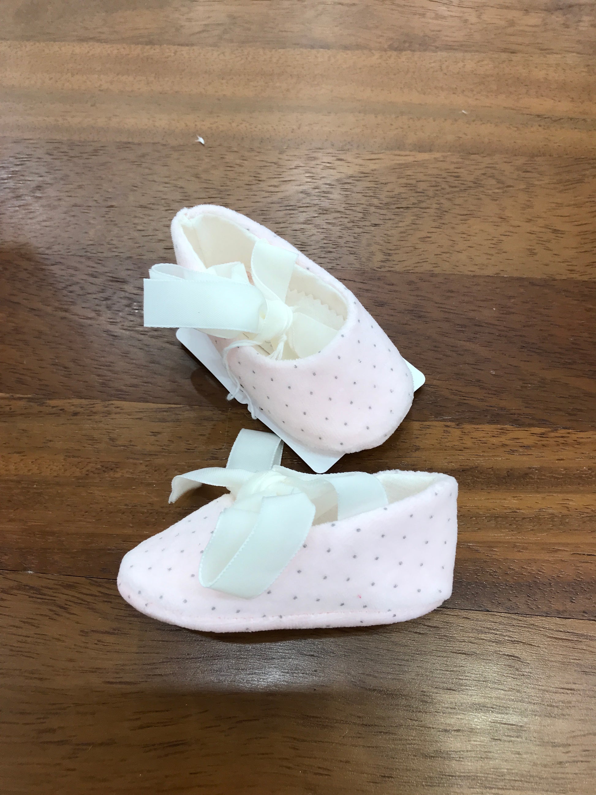 Delicata scarpina realizzata in morbida ciniglia rosa, impreziosita da eleganti pois grigi che ne caratterizzano il design. Pratico fiocco bianco sulla parte anteriore consente una chiusura sicura e confortevole. Un accessorio raffinato per i più piccoli, che combina stile e funzionalità con dettagli ricercati.