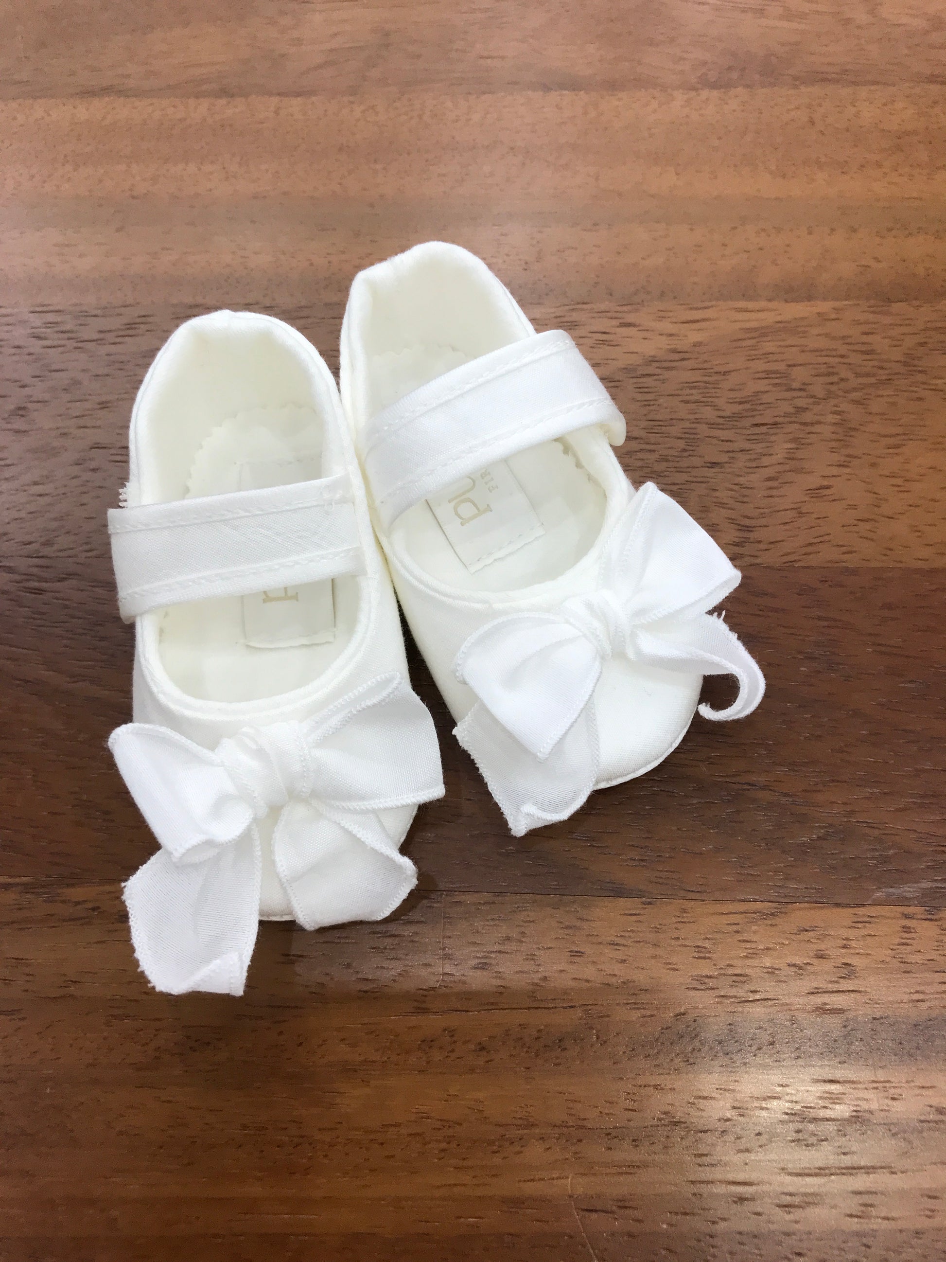 Elegante scarpina in bianco puro, caratterizzata da pratica chiusura a strappo per un indosso rapido e sicuro. Il delicato fiocco applicato sulla parte anteriore aggiunge un tocco di raffinatezza, rendendola la scelta ideale per occasioni speciali e uso quotidiano.