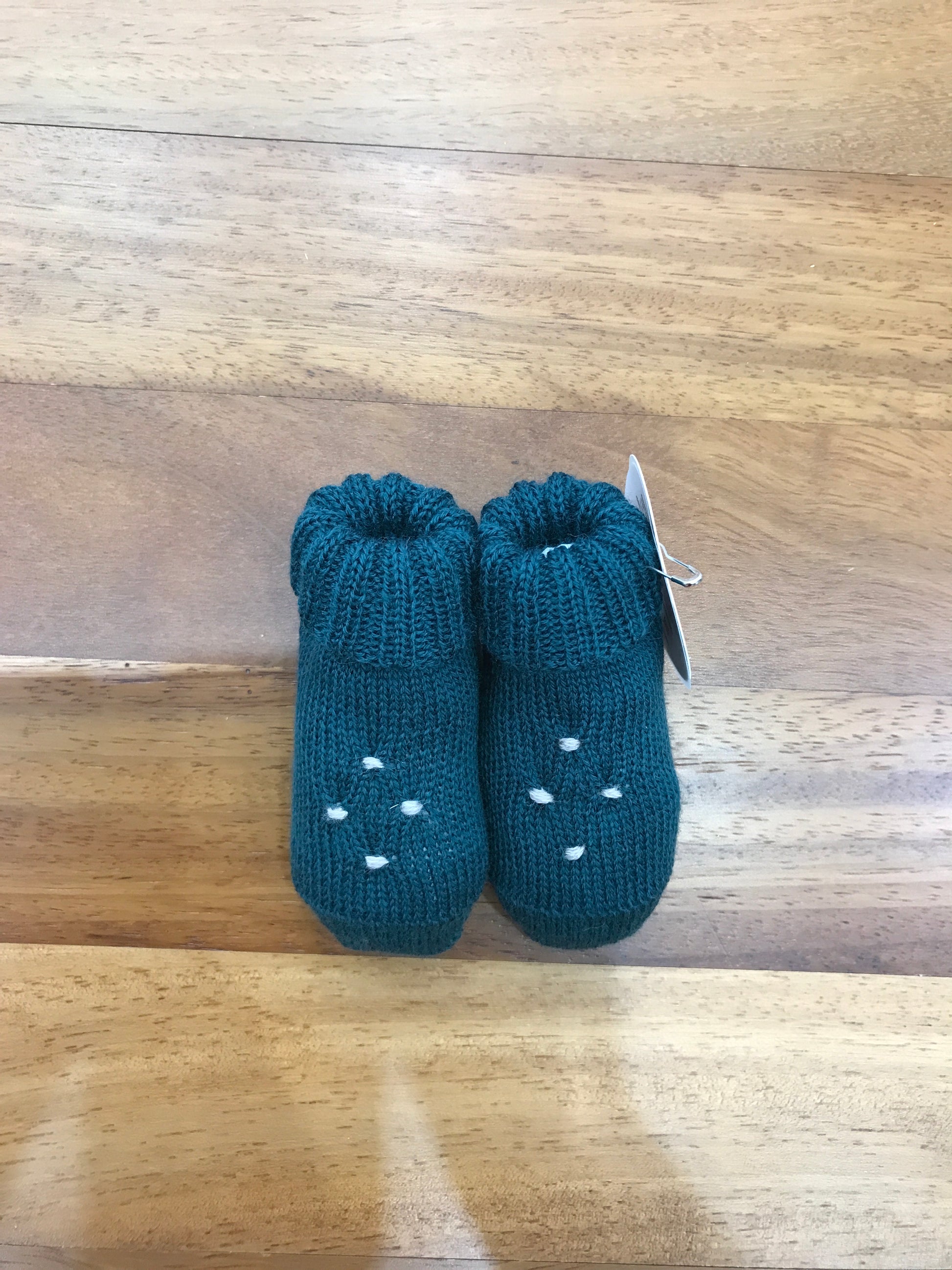 Queste scarpine per neonati presentano un elegante risvolto e una raffinata lavorazione a punto smok, ideali per garantire comfort e stile ai più piccoli.