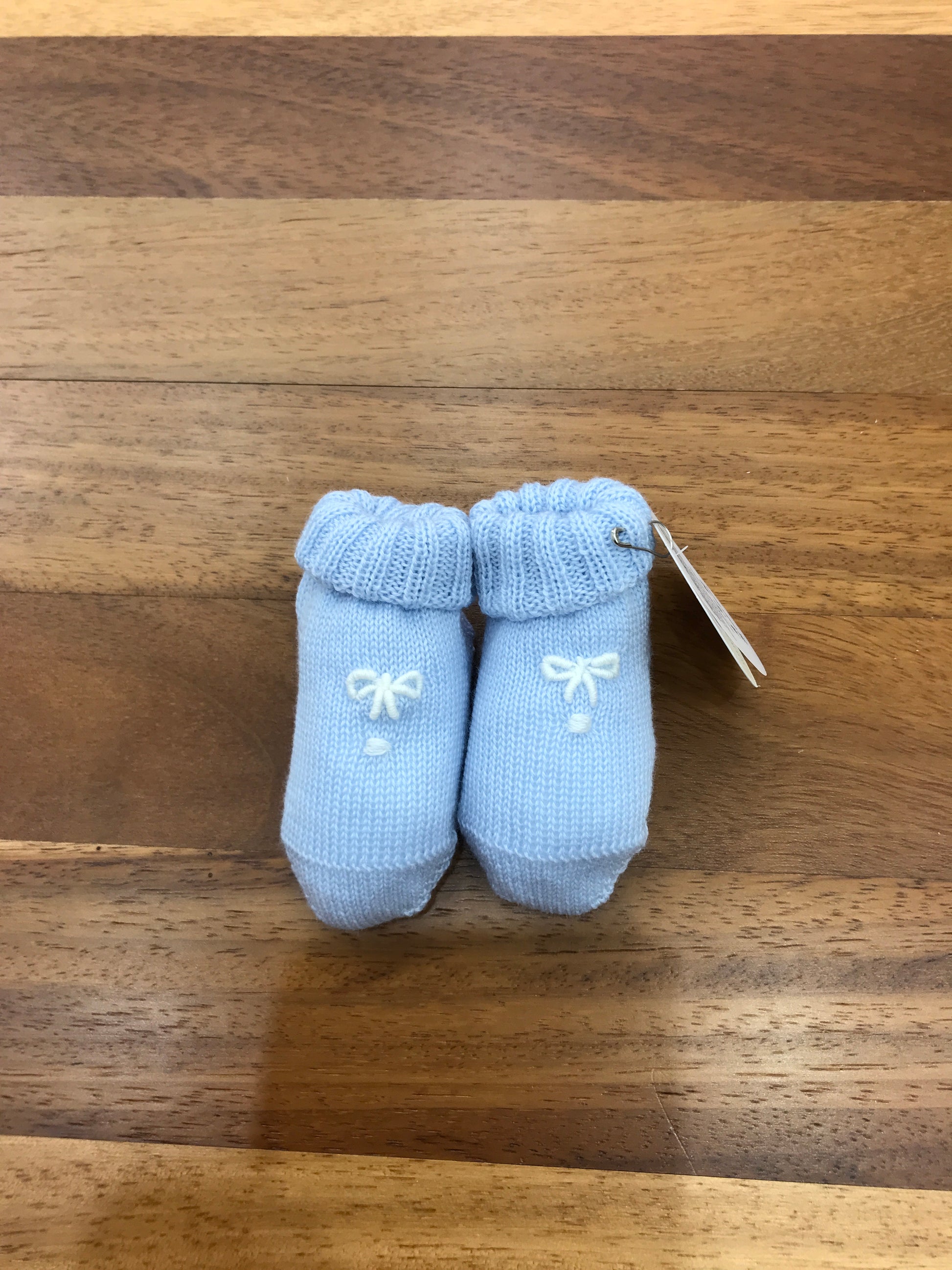 Queste soffici scarpine in lana sono impreziosite da eleganti fiocchetti ricamati in bianco, che donano un tocco raffinato e delicato, perfette per garantire comfort e stile ai primi passi del bambino.
