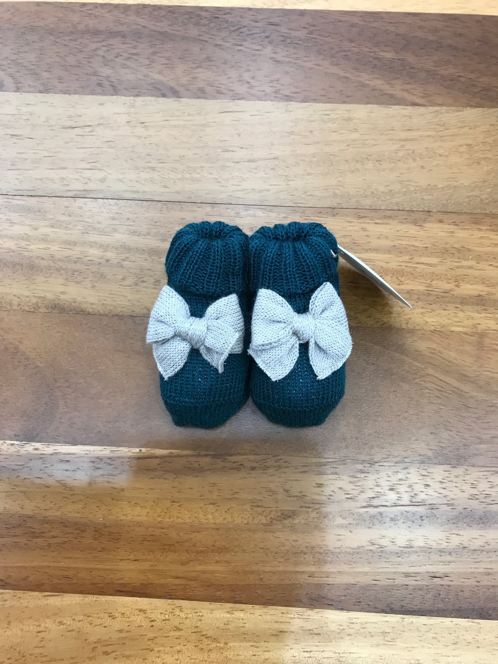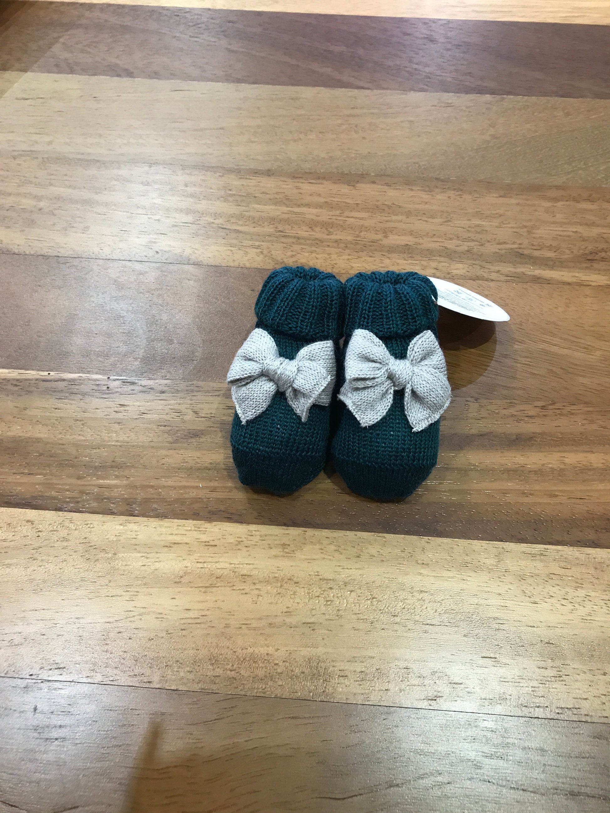 Queste morbide babbucce in lana sono caratterizzate da un elegante fiocchetto color tortora e da un risvolto verde che richiama la tonalità della scarpetta stessa, offrendo un design raffinato e confortevole ideale per i primi passi del bambino. La combinazione di materiali di alta qualità e dettagli curati garantisce calore e protezione, mantenendo allo stesso tempo uno stile sofisticato e adatto a ogni occasione.