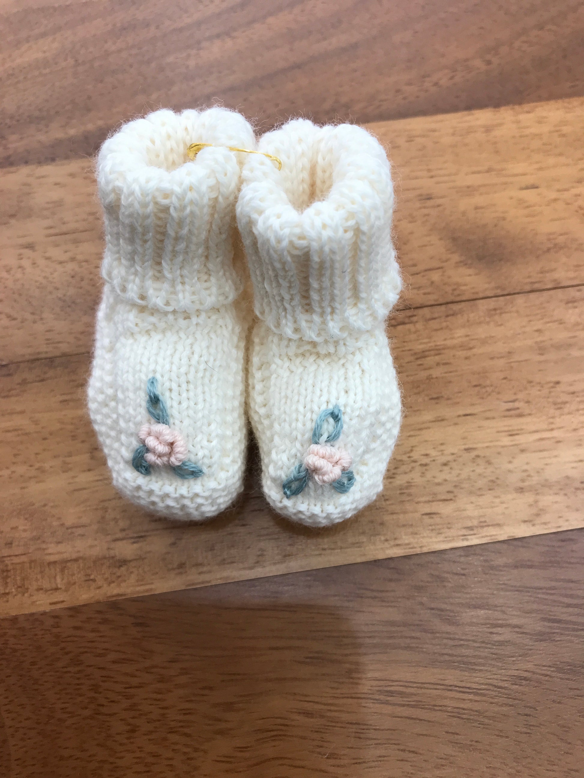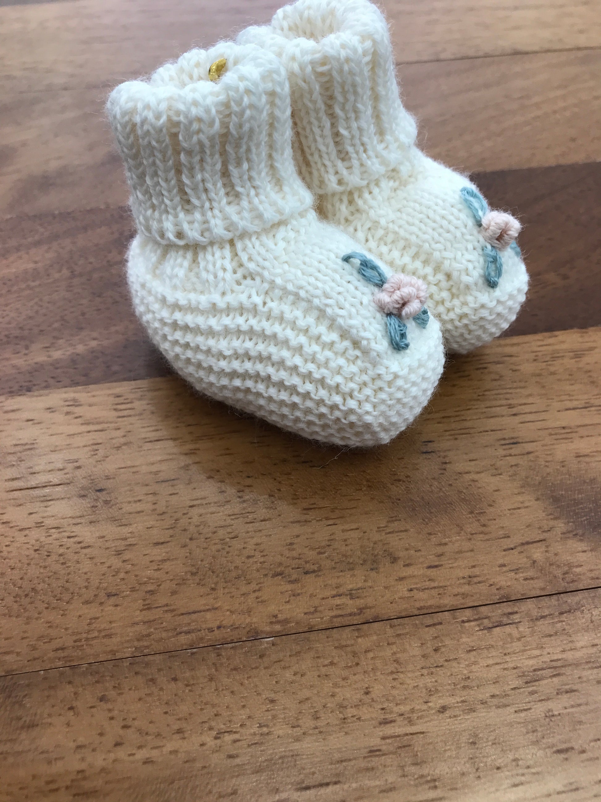 Babbucce realizzate in misto lana, caratterizzate da un delicato risvolto e impreziosite da una rosa ricamata sulla parte anteriore.