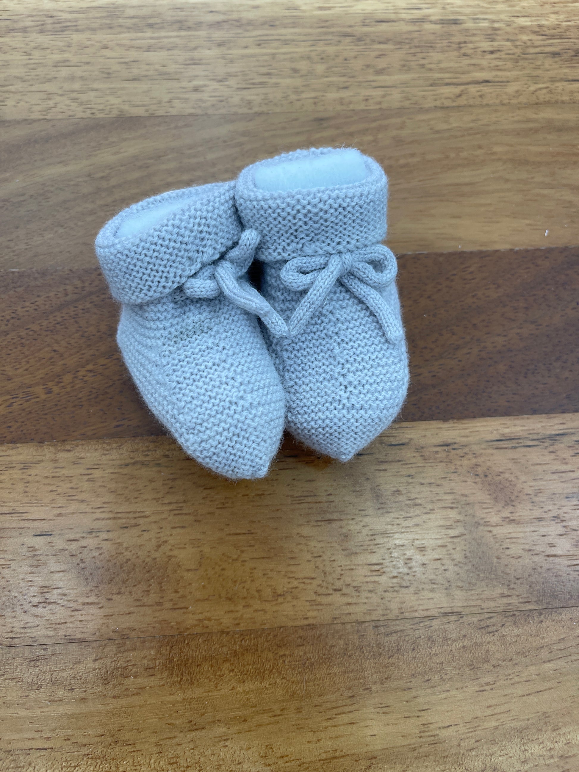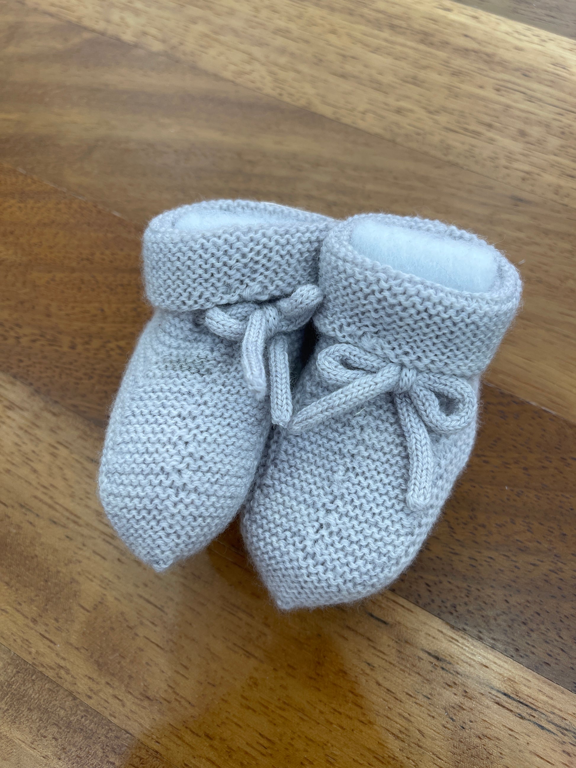 Morbide scarpine in lana dotate di risvolto e laccio a passanastro per una calzata sicura e confortevole.