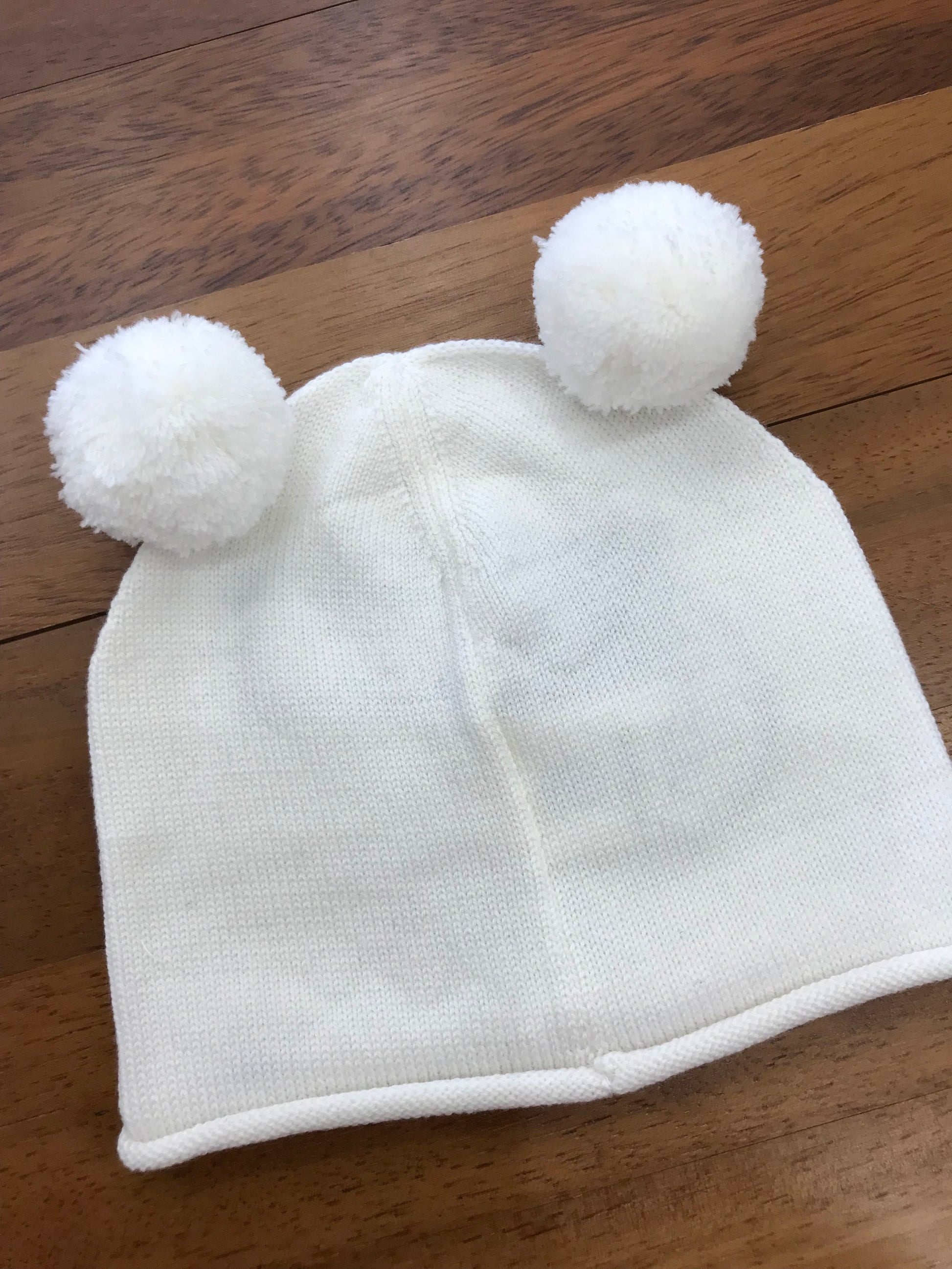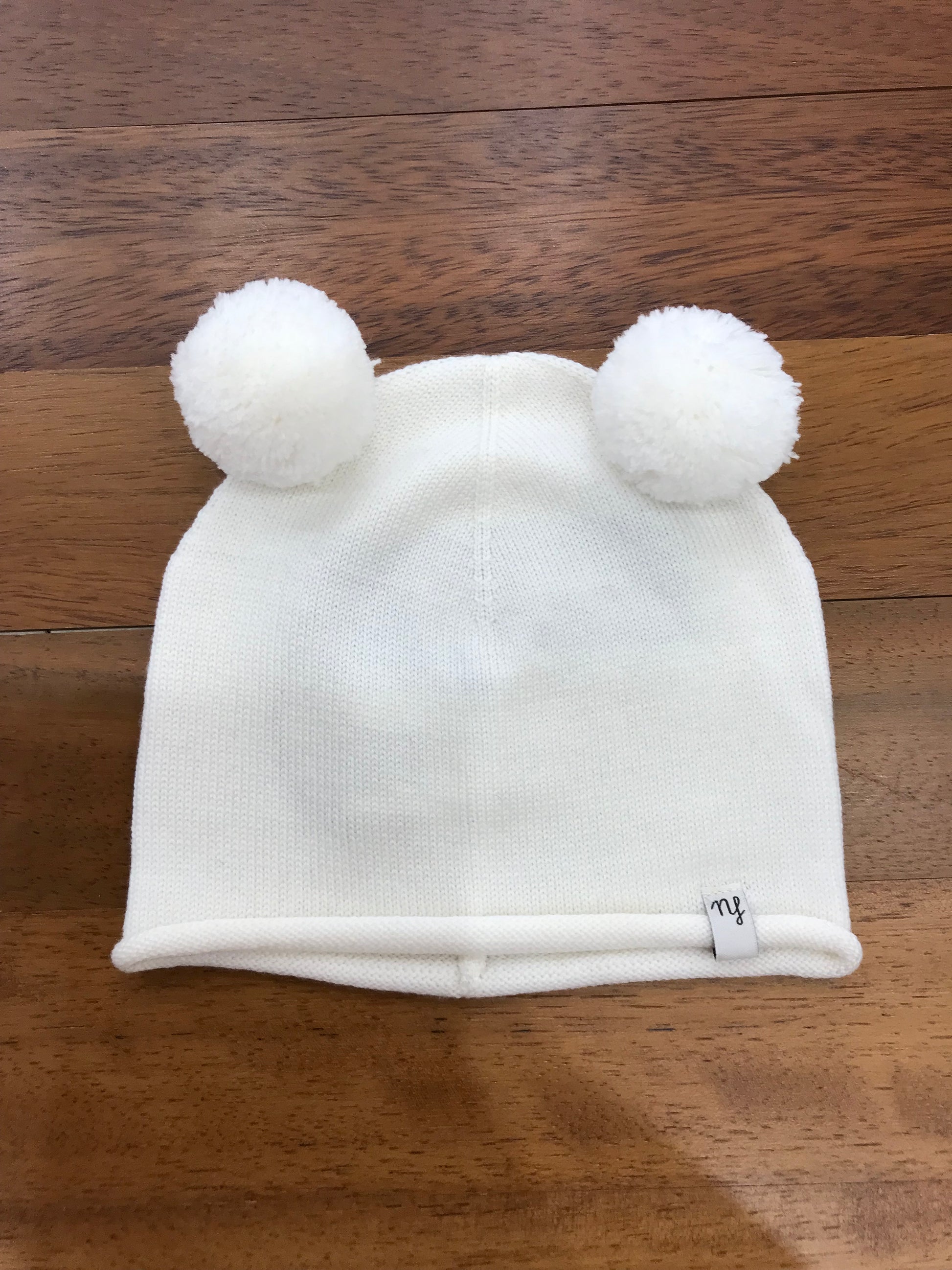 Cappellino in lana morbida caratterizzato da due pon pon posizionati sulla parte superiore, completa di un piccolo risvolto sottile che aggiunge un tocco di raffinatezza e cura ai dettagli del design.