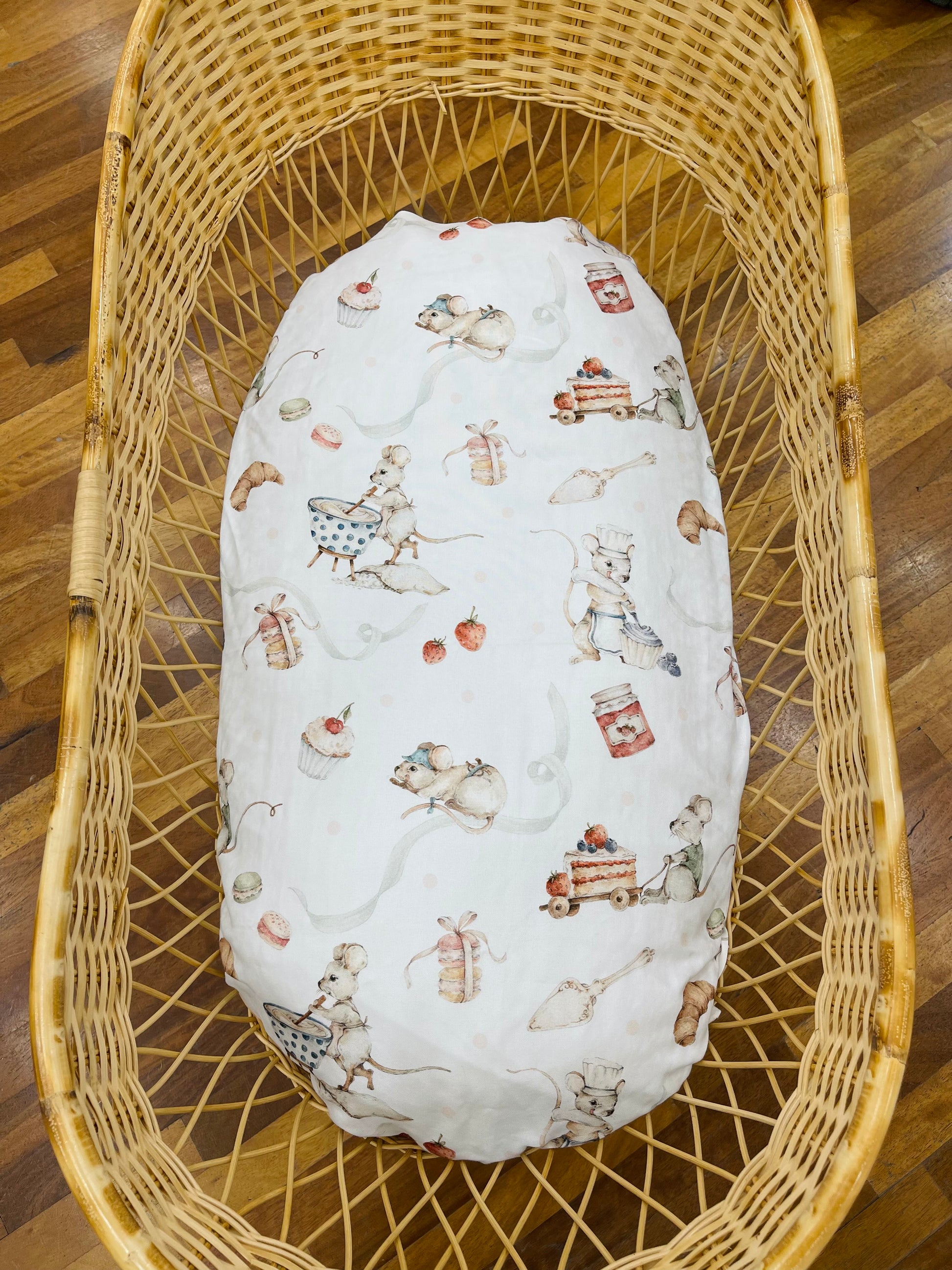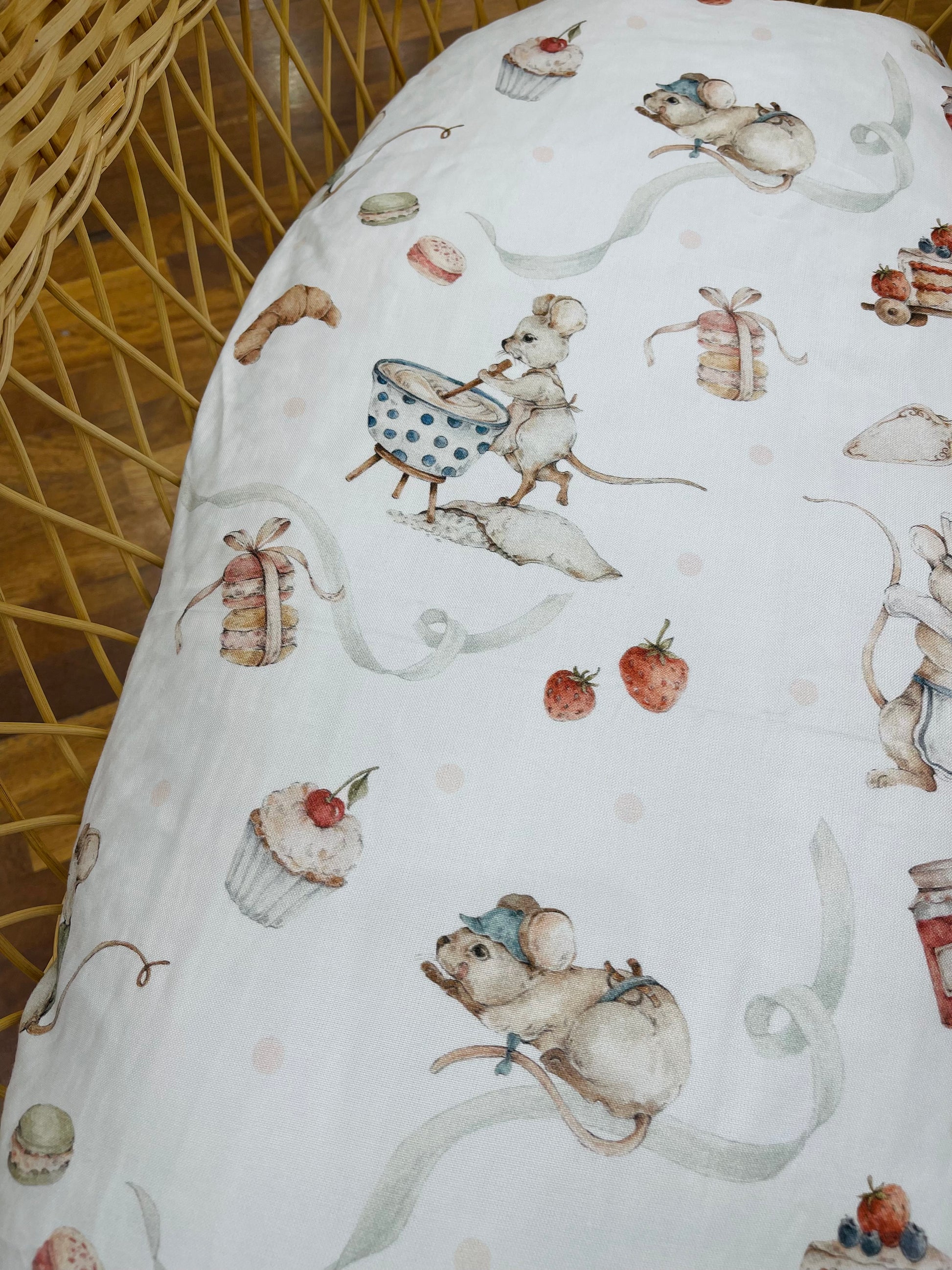 Semplice, morbido e sostenibile. Il mussola Nannafrufrù è realizzato con musso di cotone di bambù di altissima qualità. La base bianca è perfetta per qualsiasi camera da letto, mentre i topolini che fanno varie faccende di casa aggiungono un tocco di allegria e fantasia. Dormire non è mai stato così confortevole e divertente!