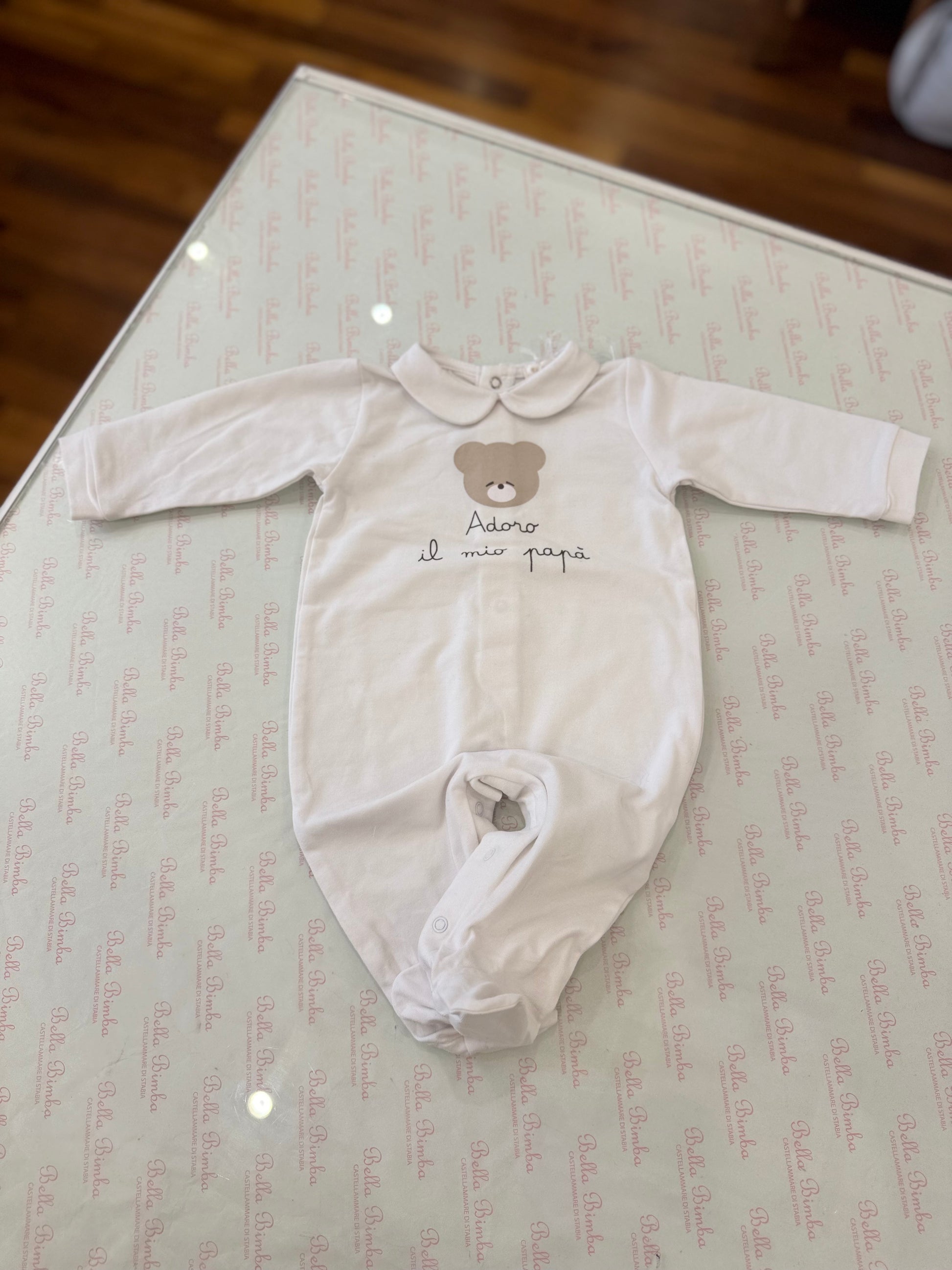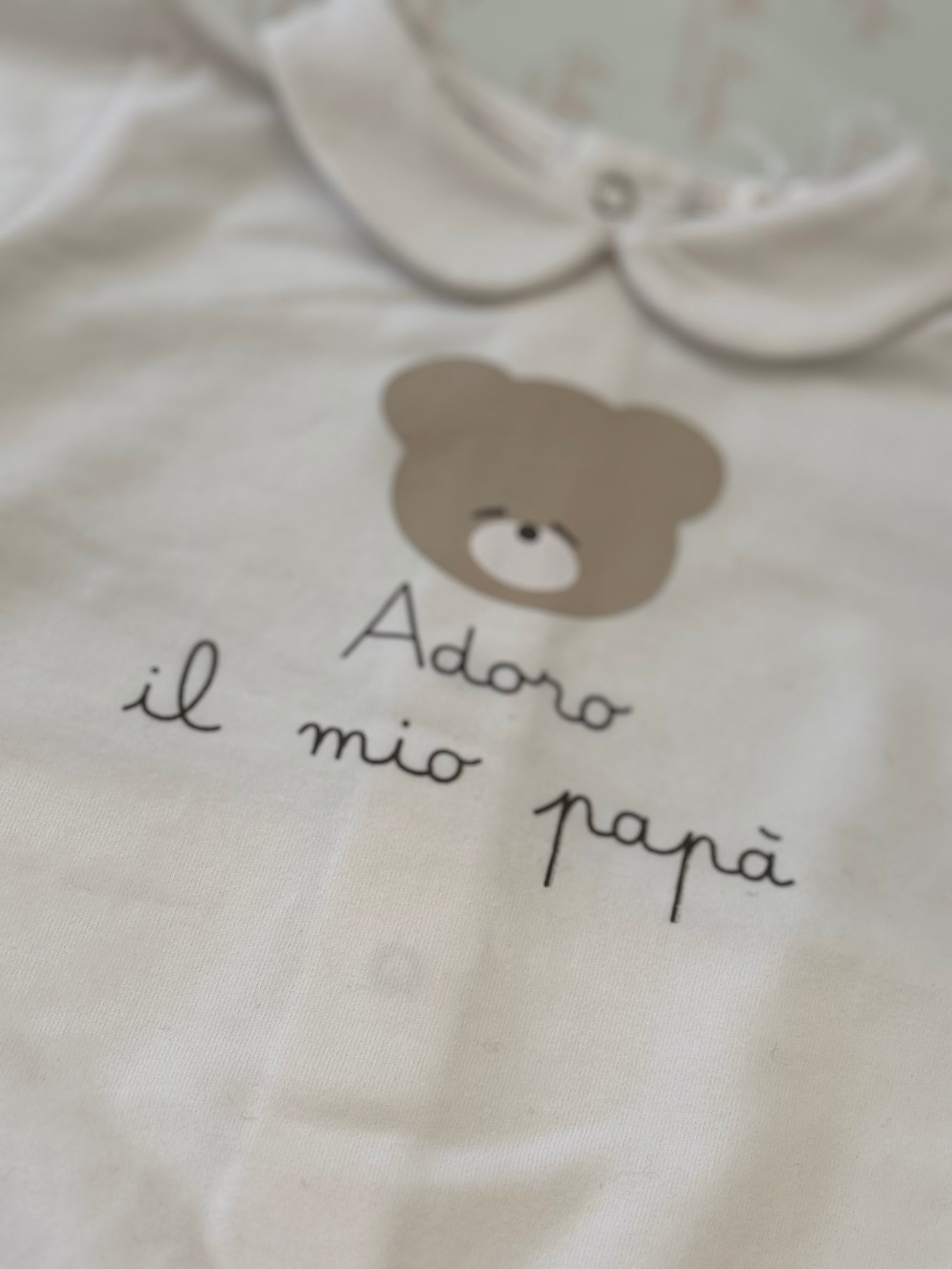 La tutina Nanan è perfetta per il tuo piccolo grazie al morbido cotone e ai piedini comodi. Realizzata in Italia, è un ottima idea regalo per il papà che vuole coccolare il suo piccolo in modo elegante e confortevole. Realizzata con materiali di alta qualità, è una scelta sicura e affidabile per il tuo bebè.