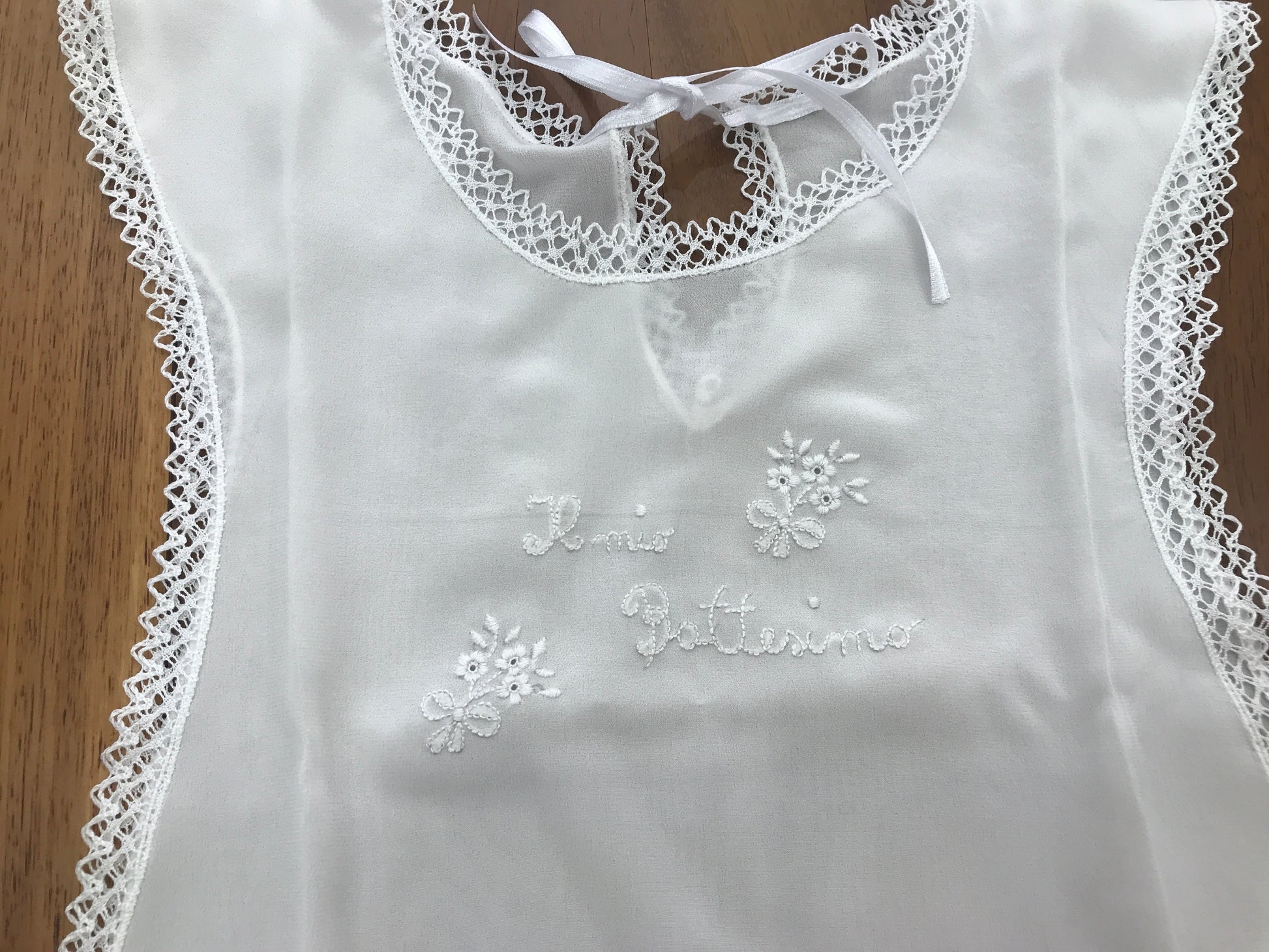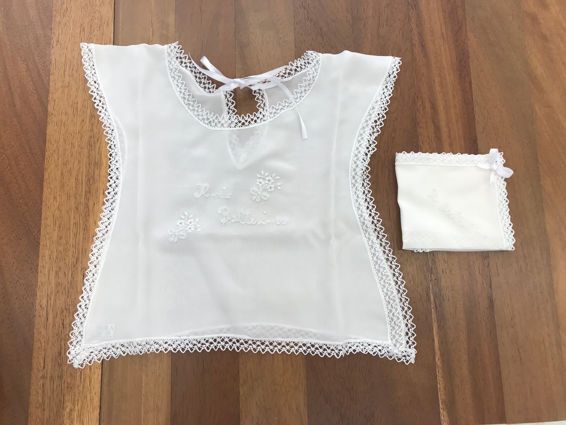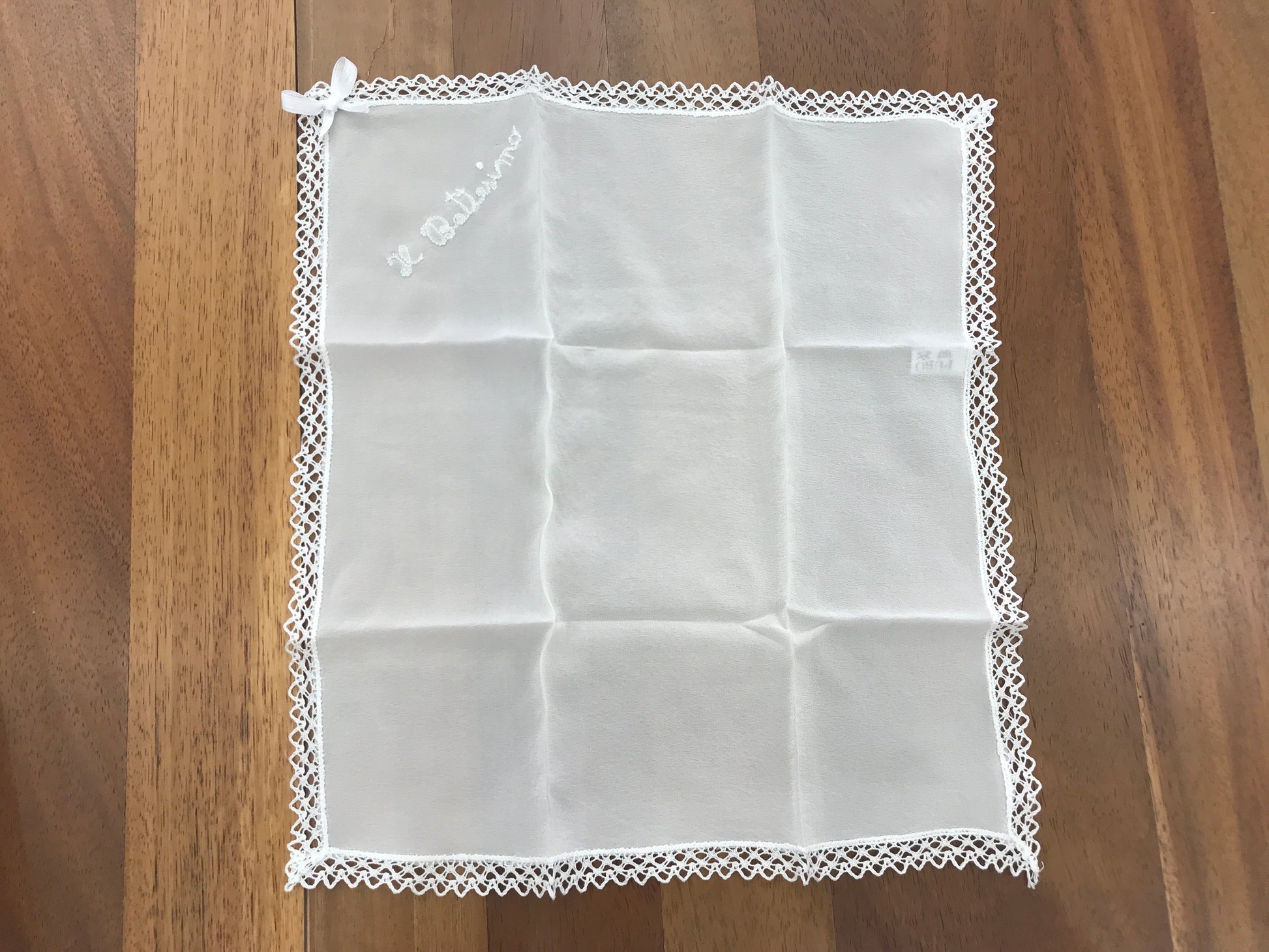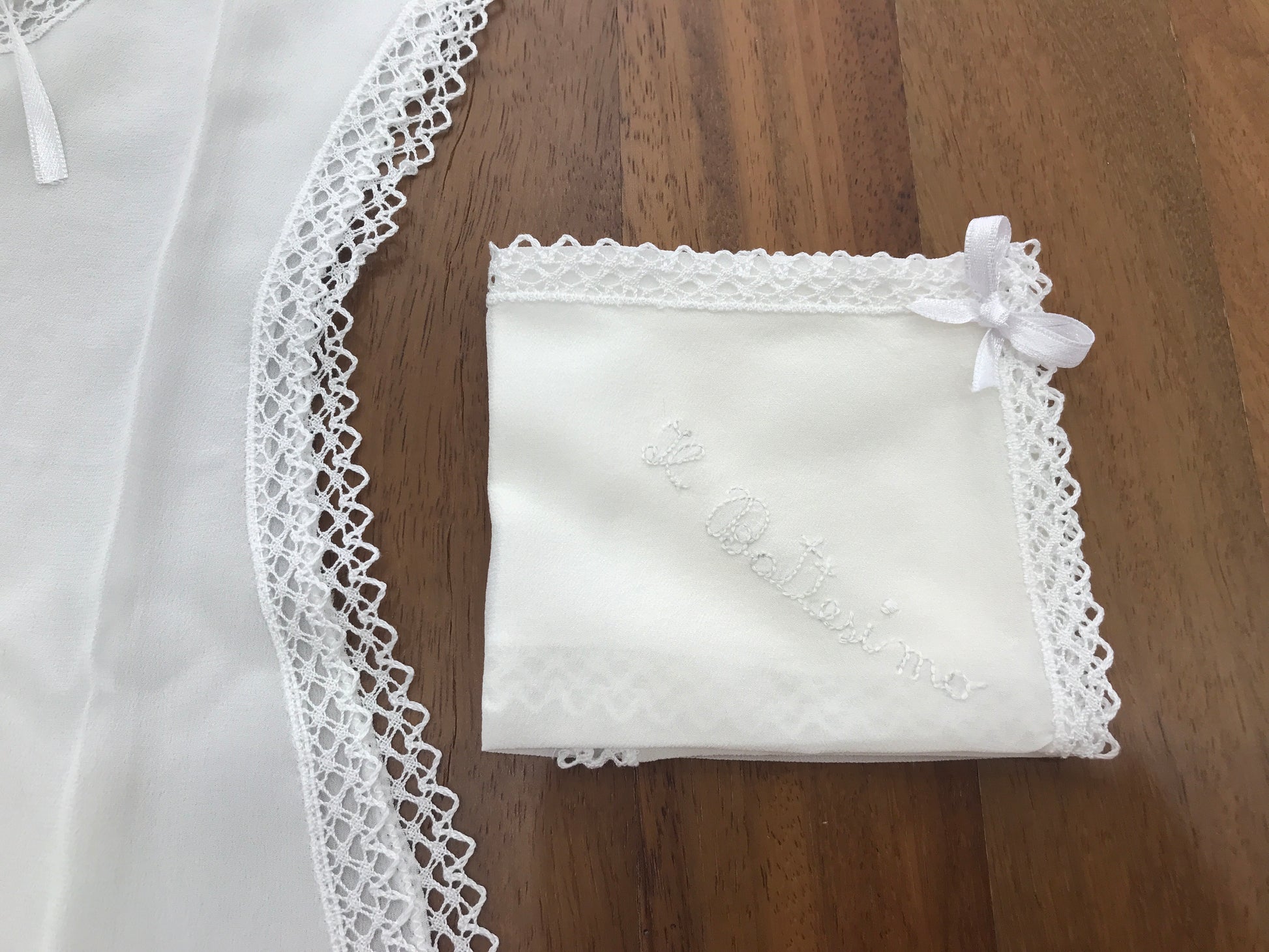 Questa stola battesimale è arricchita da raffinati ricami che decorano con cura i bordi, conferendo un tocco di eleganza senza tempo. Sul davanti è impreziosita dalla scritta “il mio battesimo” finemente ricamata, simbolo di un momento speciale. Include inoltre un fazzoletto abbinato, ideato per asciugare delicatamente la testa del bambino o della bambina durante la cerimonia, anch’esso ornato da dettagli ricamati e dalla dicitura “il battesimo”. Un accessorio pensato per accompagnare con stile e significato questo evento importante.
