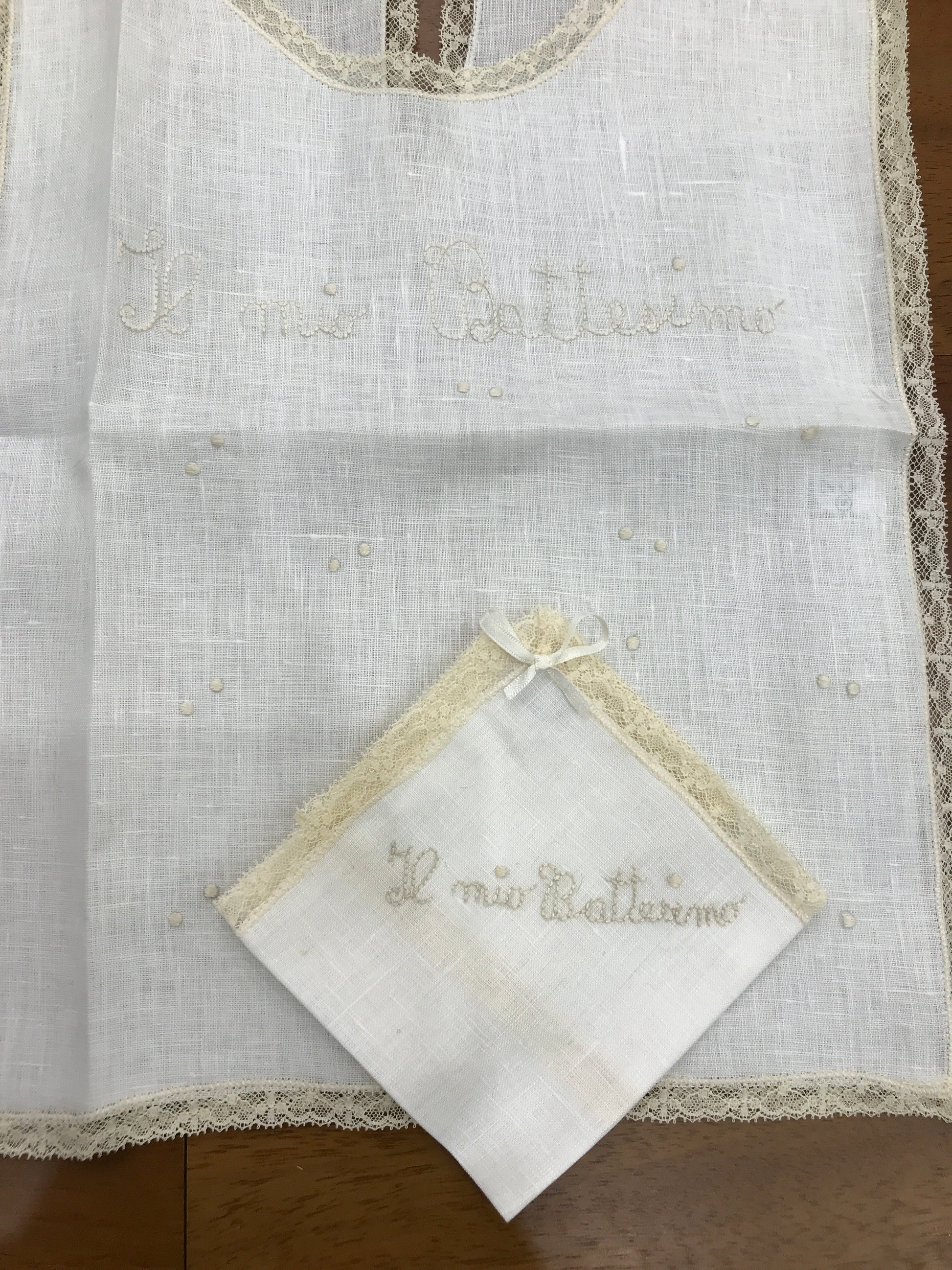 Questa stola battesimale è arricchita da raffinati ricami che decorano con cura i bordi, conferendo un tocco di eleganza senza tempo. Sul davanti è impreziosita dalla scritta “il mio battesimo” finemente ricamata, simbolo di un momento speciale. Include inoltre un fazzoletto abbinato, ideato per asciugare delicatamente la testa del bambino o della bambina durante la cerimonia, anch’esso ornato da dettagli ricamati e dalla dicitura “il mio battesimo”. Un accessorio pensato per accompagnare con stile e significato questo evento importante.