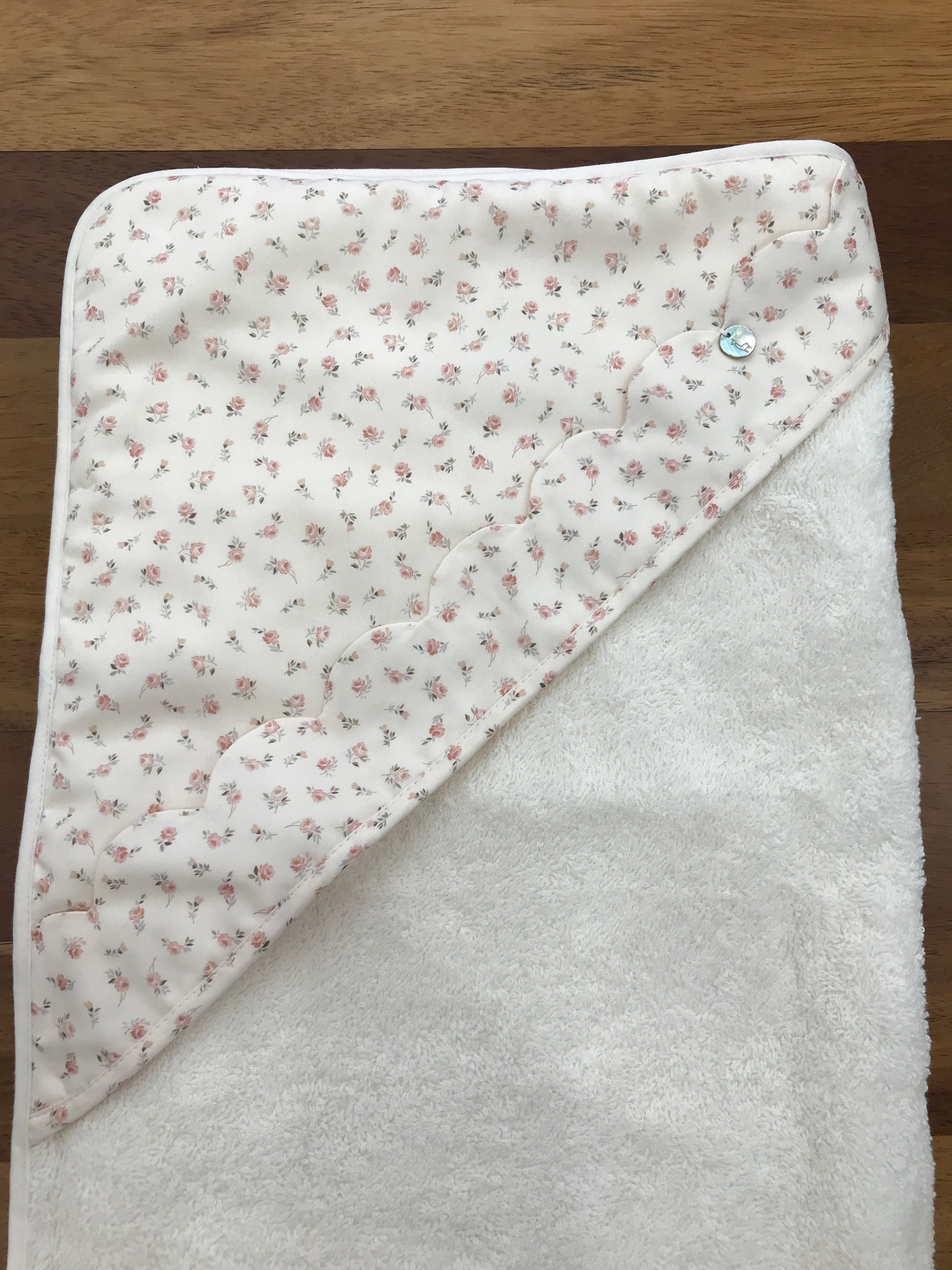 Il telo bagnetto baby gj è realizzato in morbida spugna di alta qualità, ideale per avvolgere delicatamente la pelle sensibile del neonato dopo il bagnetto. Presenta un angolo con fantasia floreale raffinata e uno smerlo decorativo coordinato, che aggiungono un tocco di eleganza e cura artigianale. Questo telo unisce funzionalità e stile, garantendo un’asciugatura efficace e confortevole, perfetto per i momenti di coccole post bagnetto. La scelta ideale per chi cerca un prodotto pratico e dal design curato per il benessere del proprio bambino.