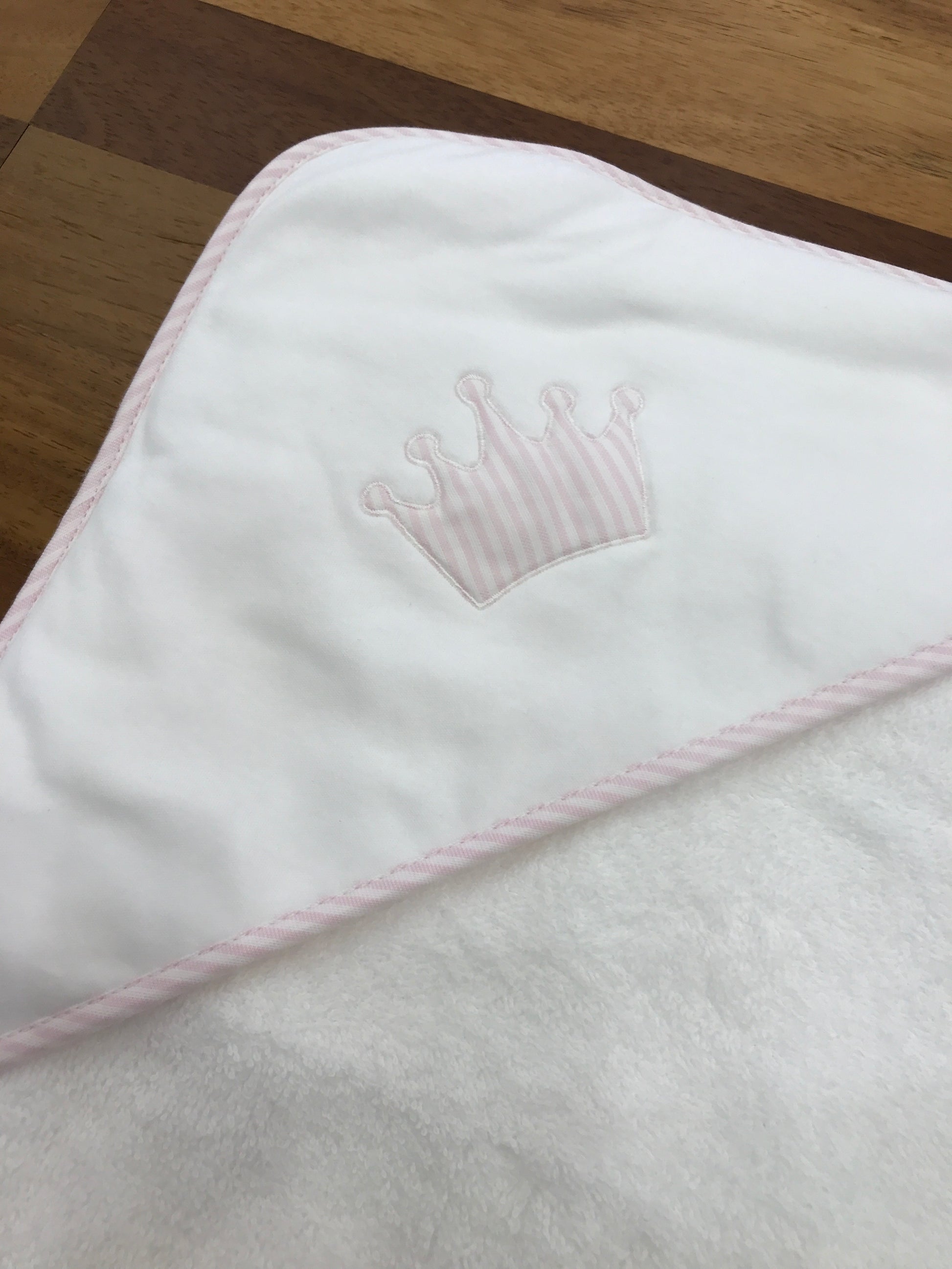 Il telo bagnetto baby gj è realizzato in morbida spugna di alta qualità, ideale per avvolgere delicatamente la pelle sensibile del neonato dopo il bagnetto. Il design include un angolo in cotone tinta unita, che aggiunge un tocco di eleganza e comfort. Al centro dell’angolo è applicata una raffinata corona, simbolo di cura e attenzione ai dettagli. Questo telo unisce funzionalità e stile, garantendo un’asciugatura efficace e un’esperienza piacevole per il bambino e i genitori. Perfetto per l’uso quotidiano o come regalo premuroso.