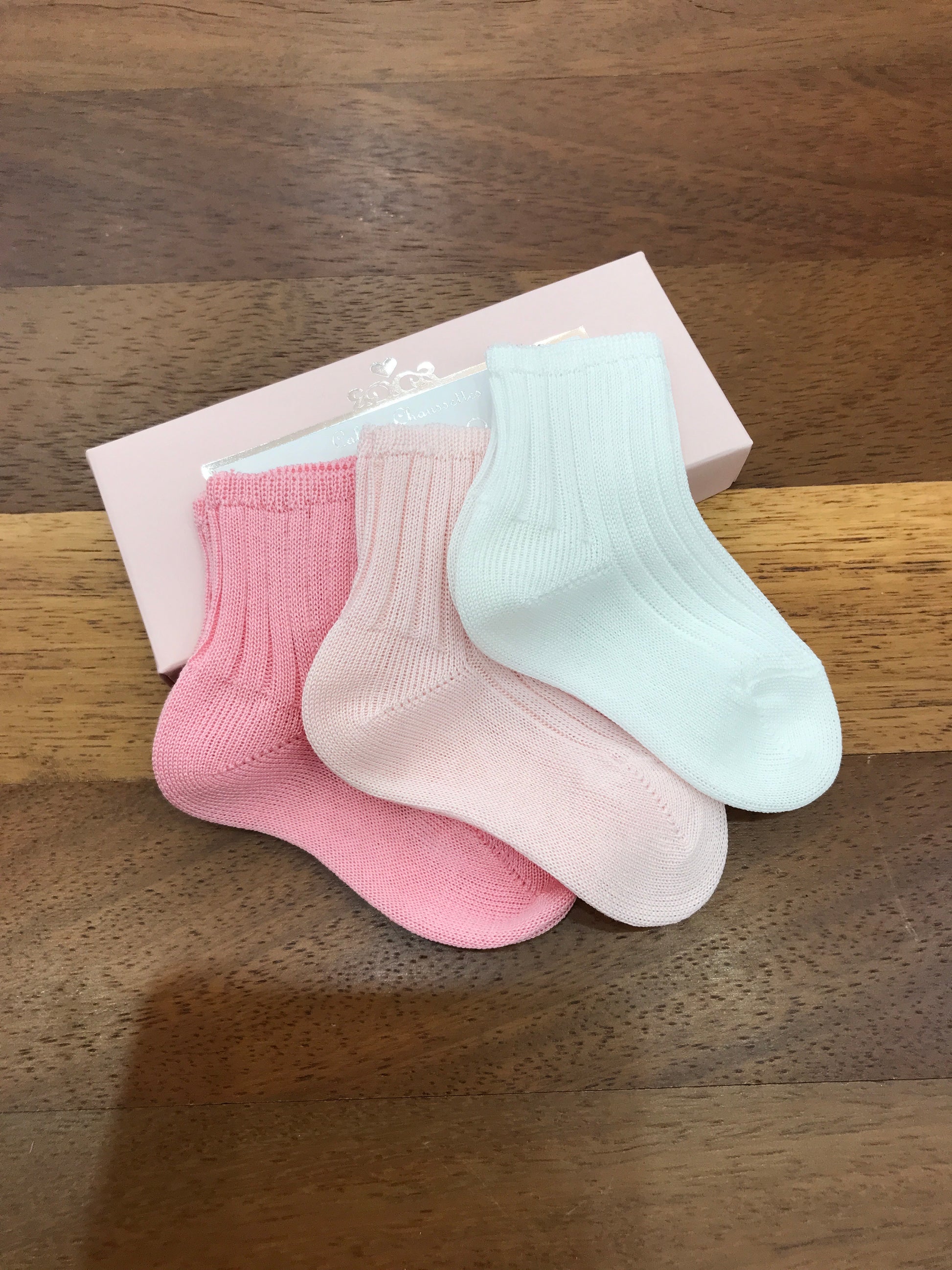 Elegante collezione di tre paia di calzini nelle tonalità bianco, rosa e fucsia. Perfetti per aggiungere un tocco di colore al guardaroba quotidiano, questi calzini combinano comfort e stile con una palette cromatica versatile e moderna. Ideali per chi apprezza i dettagli raffinati e desidera coordinare facilmente con diversi outfit.