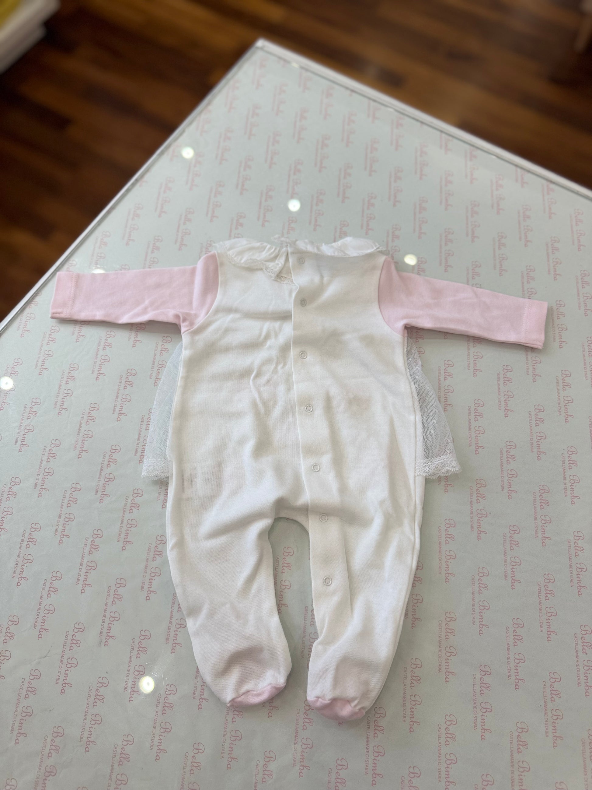 La Tutina Aletta è la scelta perfetta per il suo primo outfit elegante. Con una balza lunga in tulle e fiocchi ricamati, questa tutina è pensata per rendere indimenticabile il giorno più bello della tua vita. Regalerà alla tua bambina un tocco di classe, oltre a un ricordo indelebile di un momento importante.