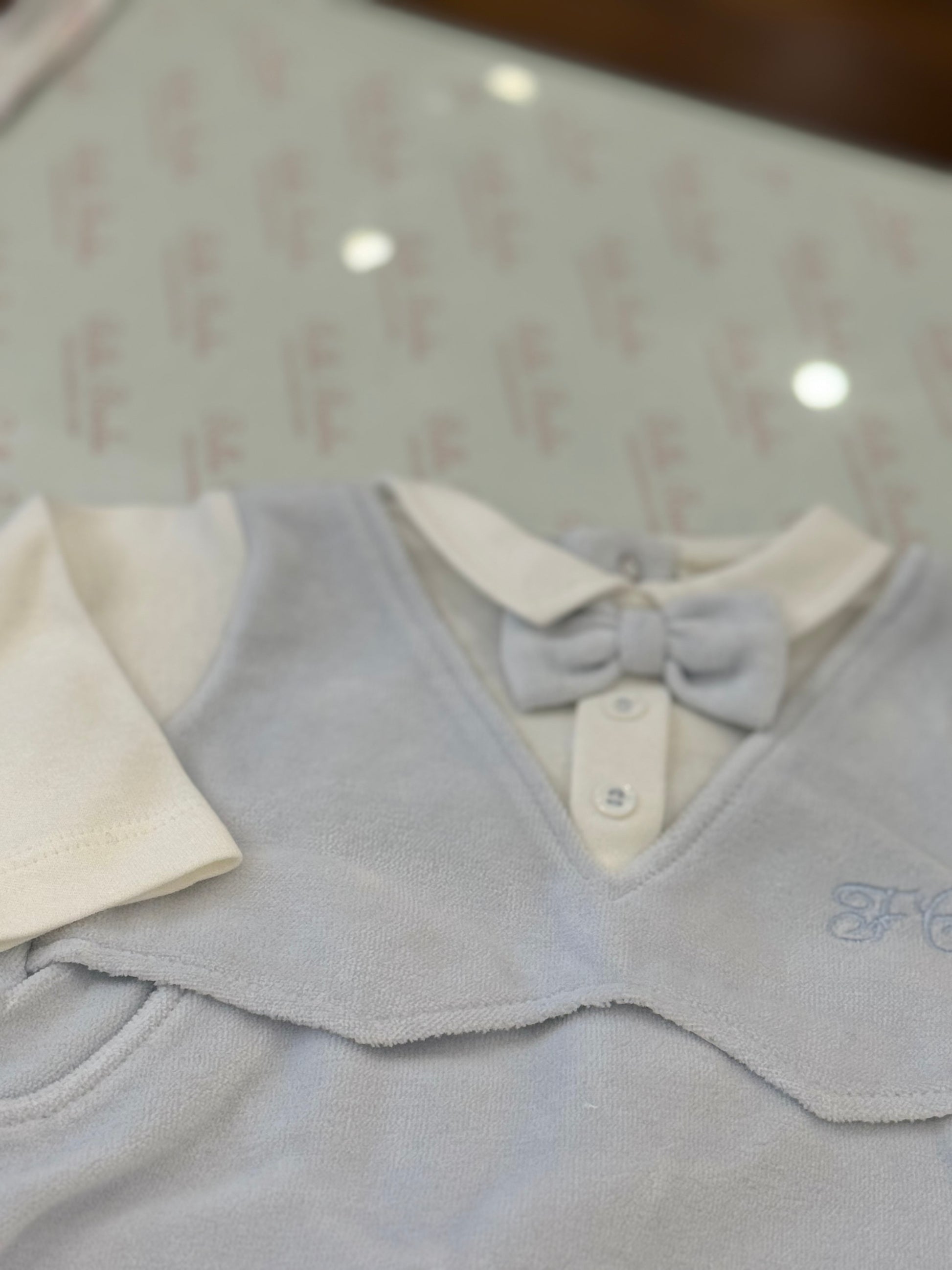 Le tutine in ciniglia Aletta sono eleganti e confortevoli, perfette per il tuo piccolo. Grazie al finto gilè e all'applicazione di papillon, il tuo bambino sarà sempre al centro dell'attenzione. Realizzate con tessuti di alta qualità, garantiscono un comfort che dura tutto il giorno.