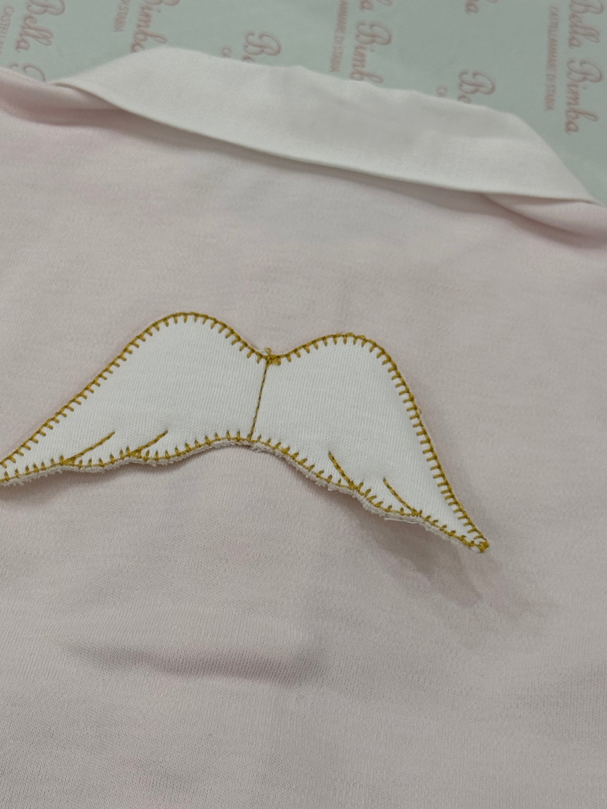 Questa tutina in cotone con piedini è un must-have per ogni neonato! Realizzata con materiali di alta qualità, offre comfort e praticità per il tuo piccolo. Le ali appoggiate sulle spalle la rendono unica e particolare