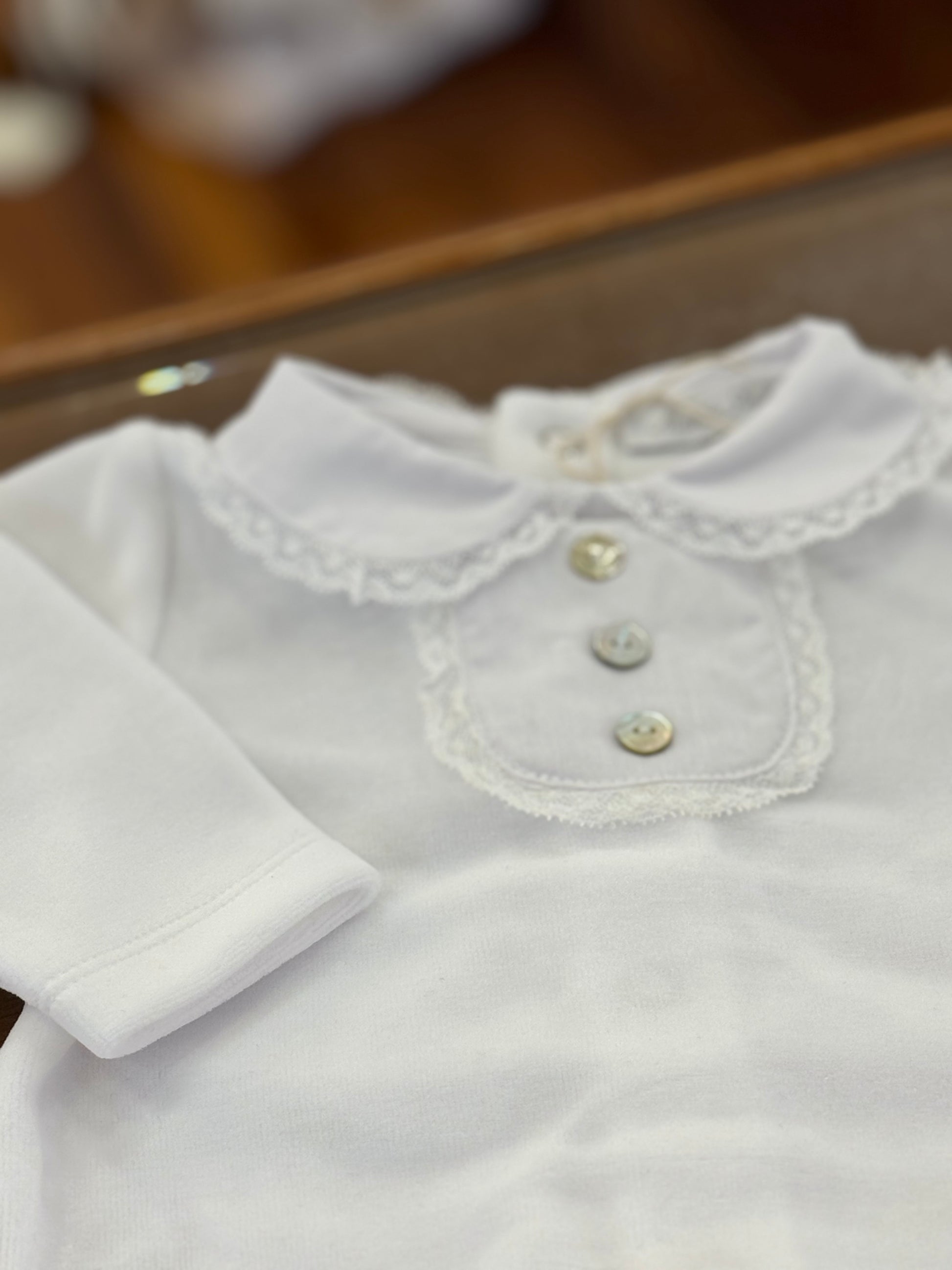 Questa tutina di martina aranda è realizzata in morbida ciniglia e presenta un design unico con decorazioni a valanghe. Perfetta per mantenere il tuo bambino caldo e comodo durante le fredde giornate invernali. Confortevole e alla moda, sarà un'aggiunta versatile al guardaroba del tuo bambino.