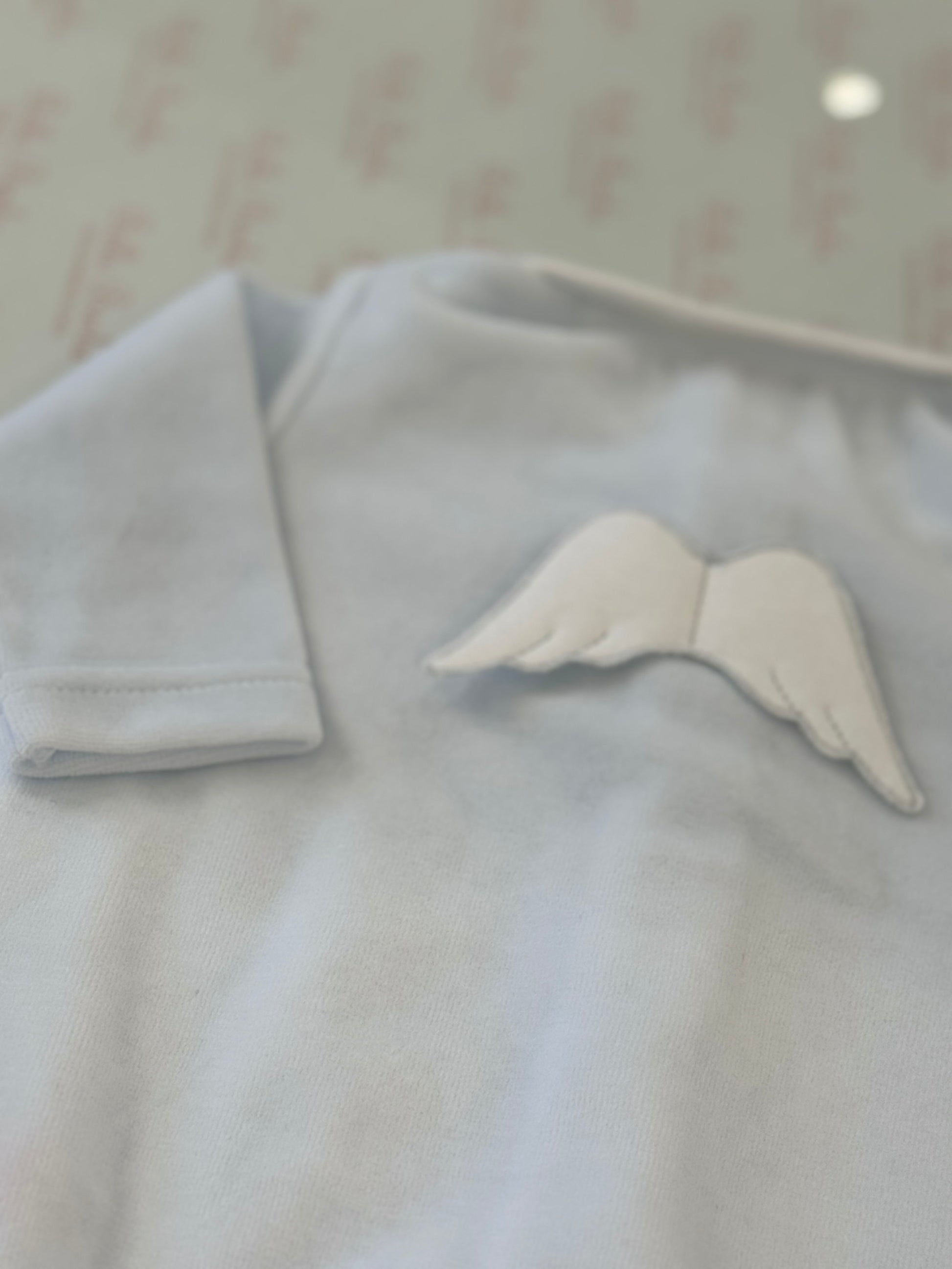 Una tutina ciniglia con copertura anteriore e collettino in piquet sul retro, dotata di un'incantevole applicazione di ali. La vestibilità è comoda e versatile, perfetta per mantenere il tuo piccolo/a comodo/a e alla moda. Progettata con cura per garantire il massimo comfort e stile.