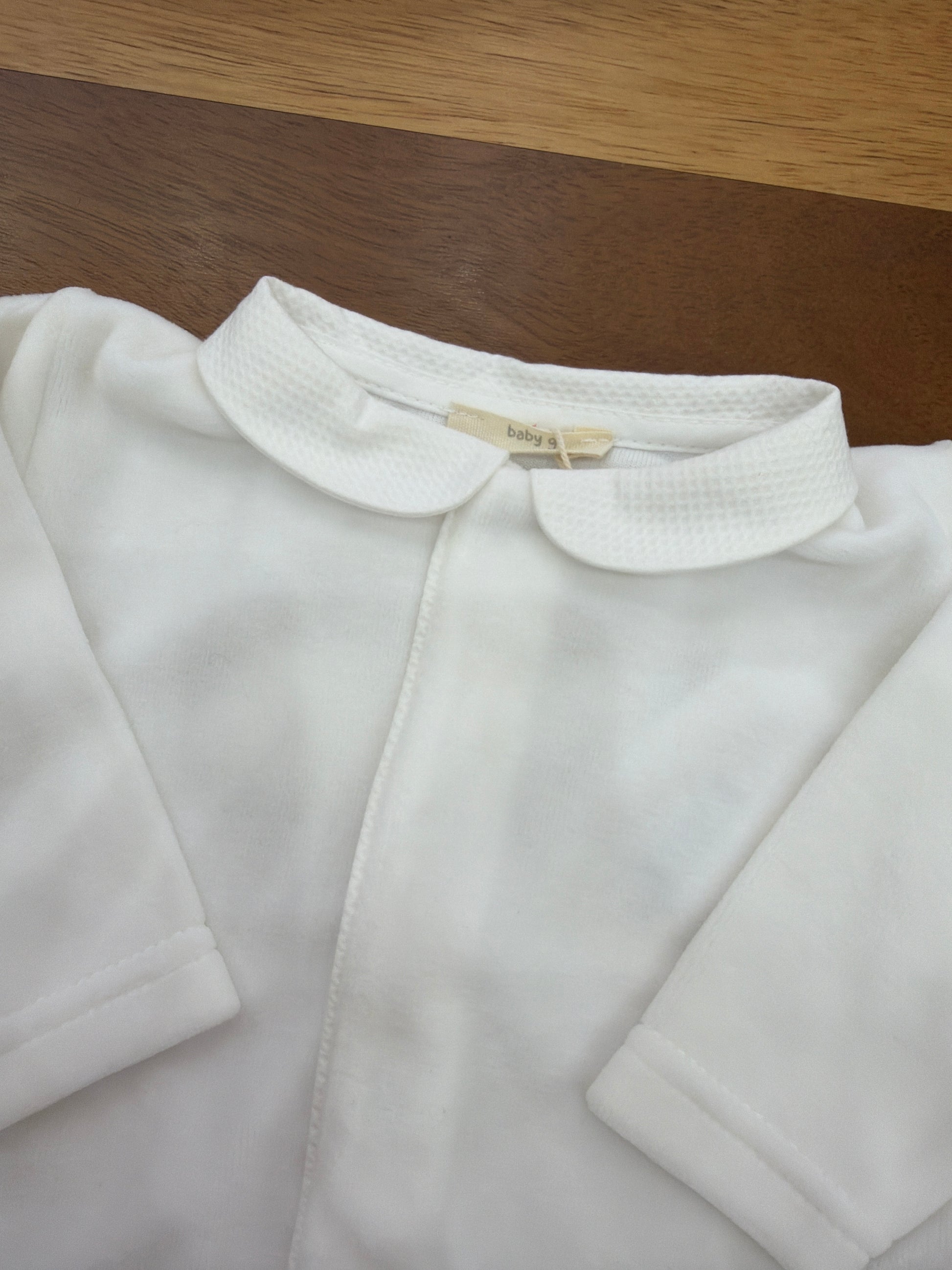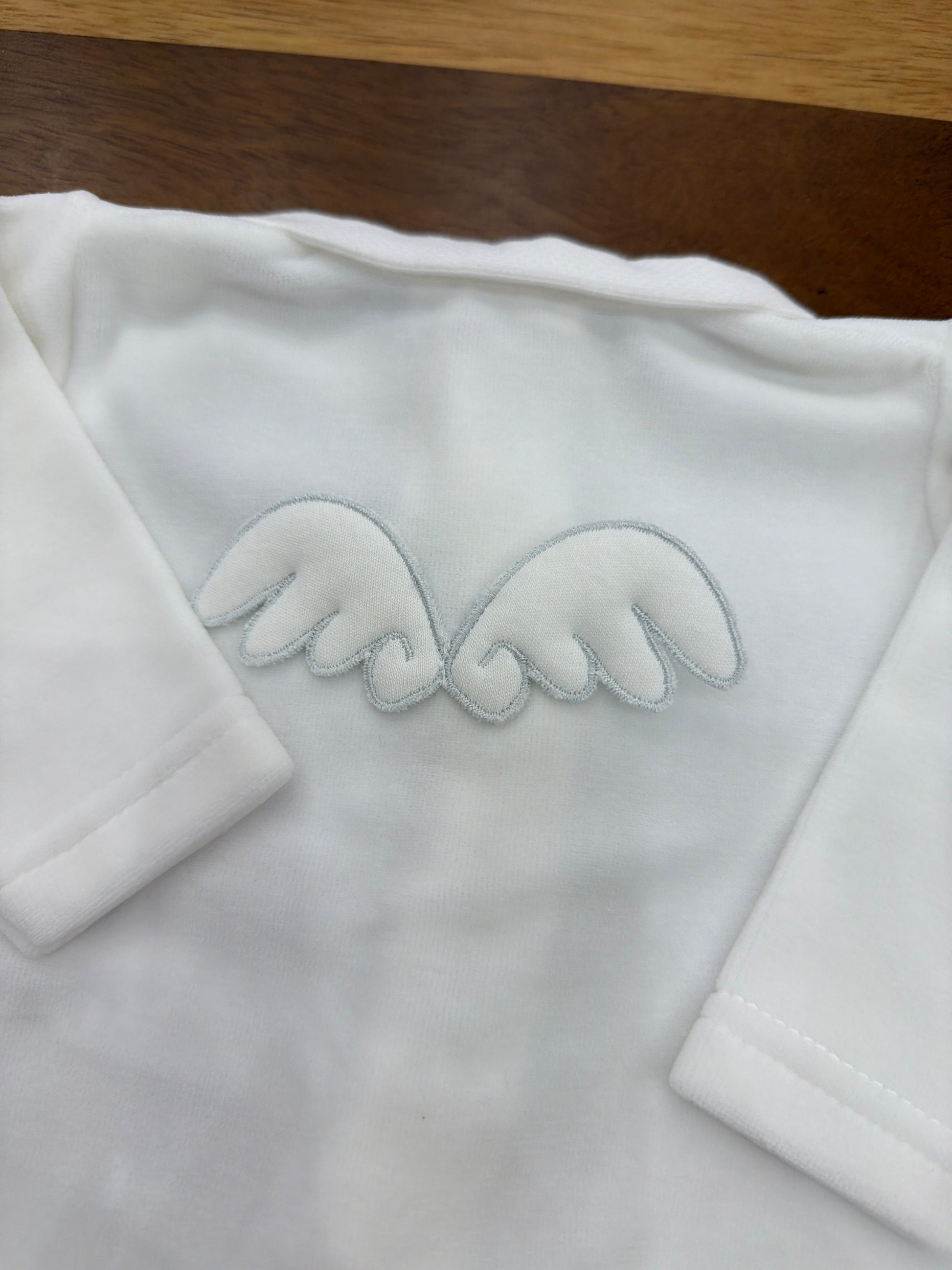 Questa tutina intera in ciniglia per neonati è dotata di piedini e colletto, con ali decorative sul retro per un tocco distintivo.
