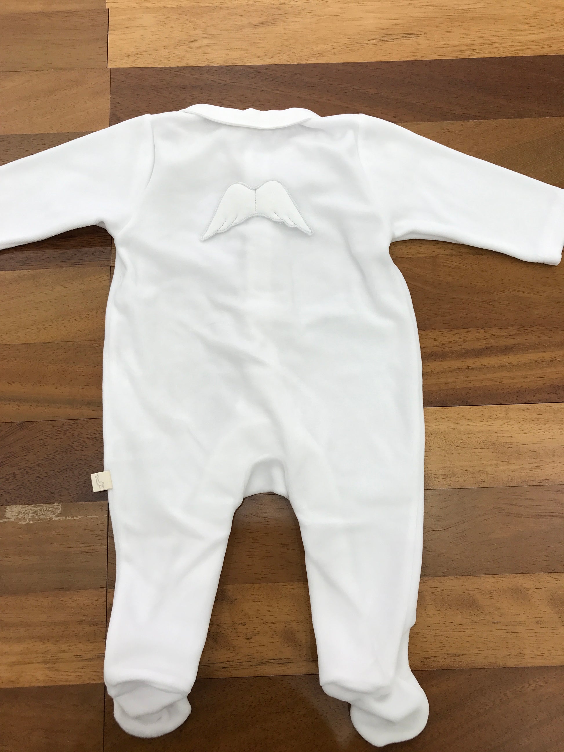 Questa tutina intera in ciniglia per neonati è dotata di piedini e colletto, con ali decorative sul retro per un tocco distintivo.