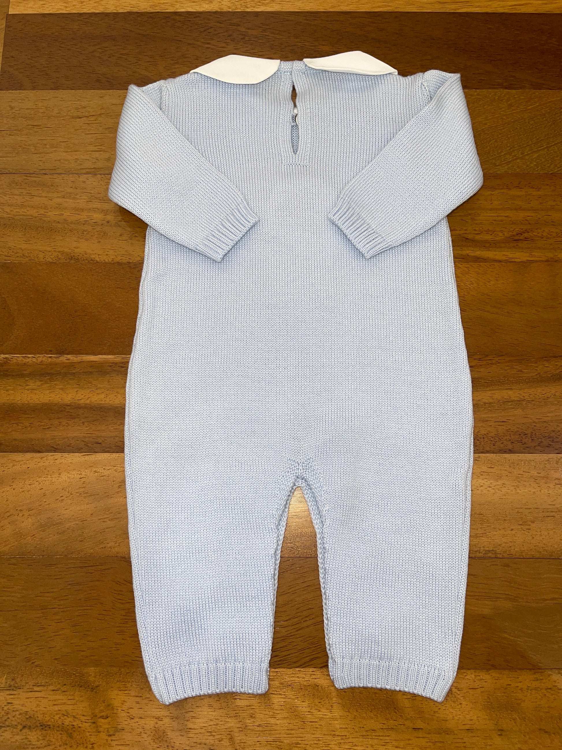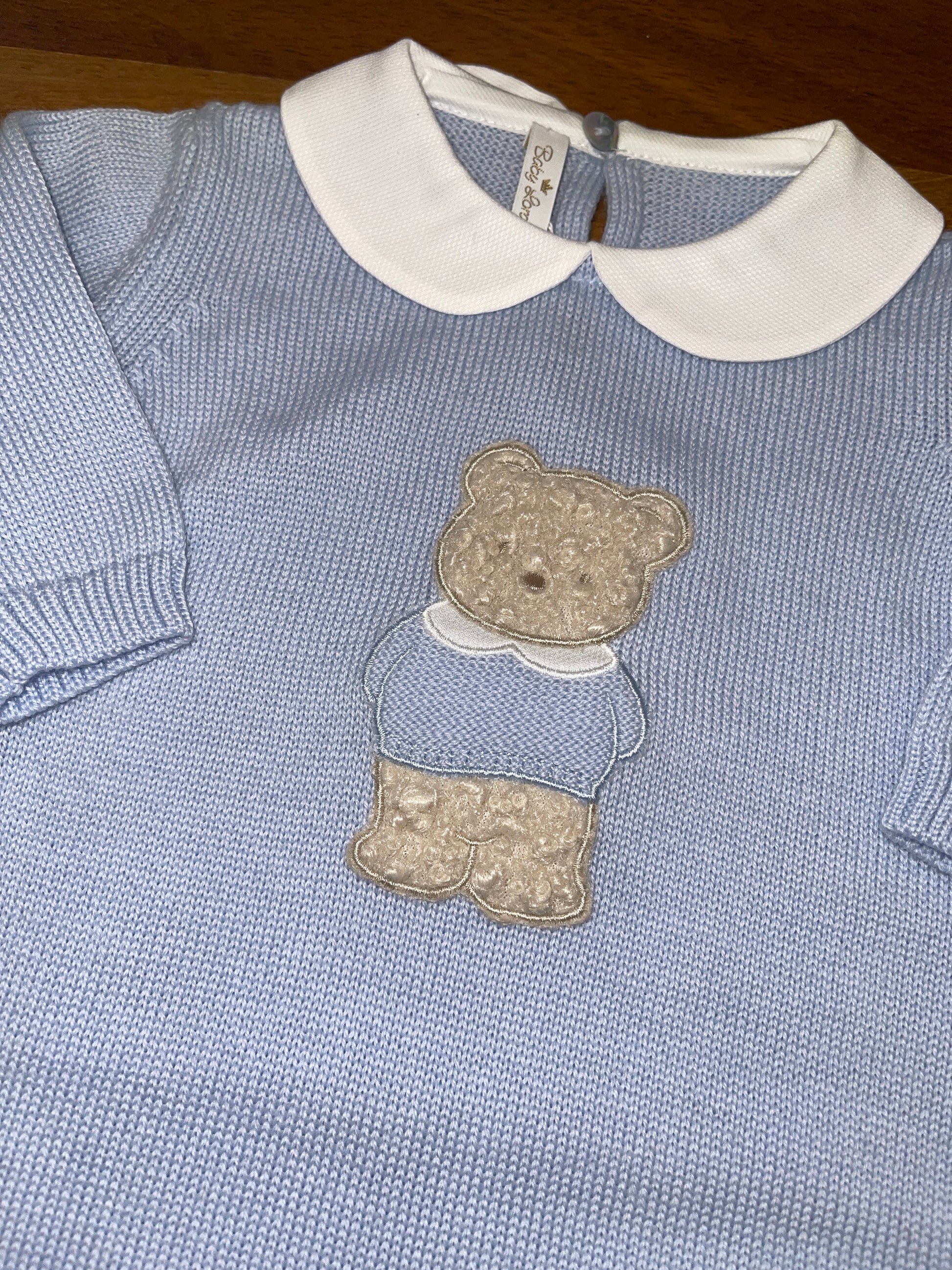Tutina in lana con orsetto applicato sul davanti e collo tondo, ideale per garantire comfort e calore al tuo bambino.