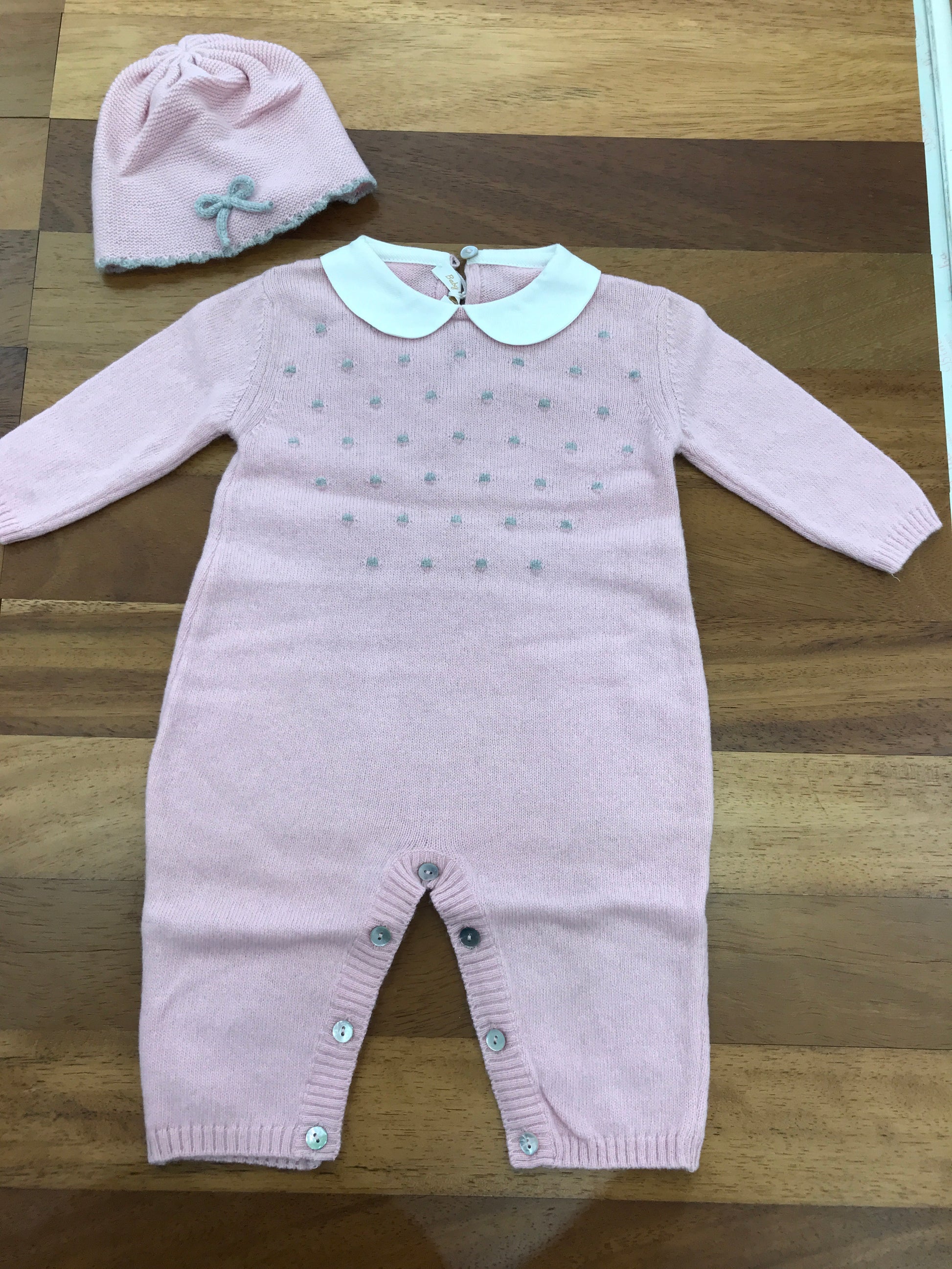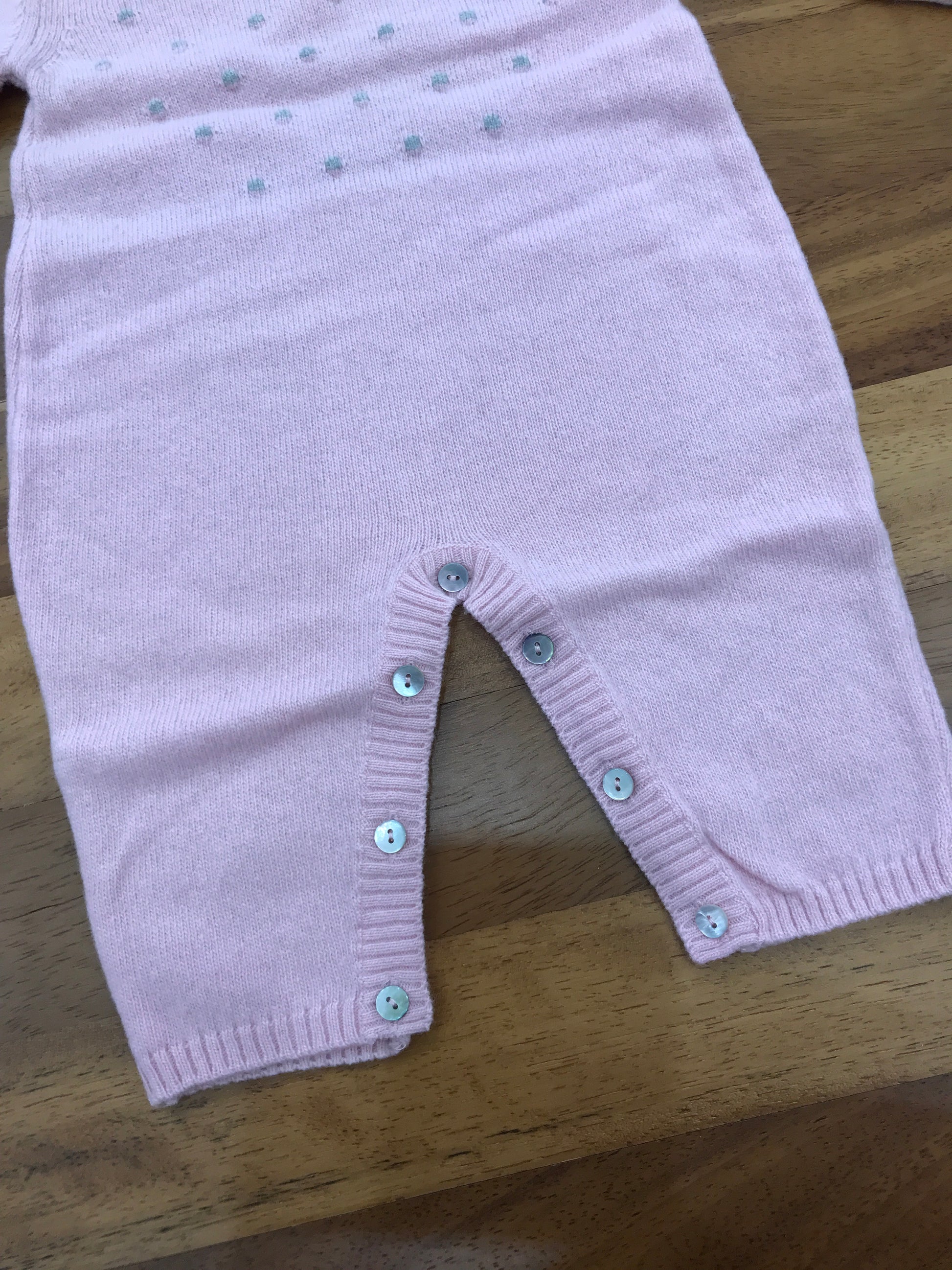 Questa tutina completa senza piedini presenta un collo rotondo e un motivo a pois che decora l'intero corpetto.